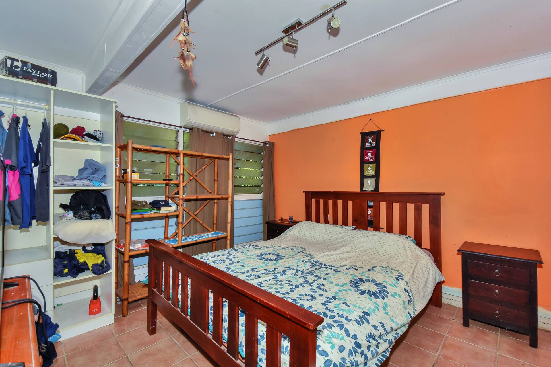 The home is an elevated property with 3 large bedrooms upstairs along with a modernised main bathroom with feature tiles and a timber topped vanity with storage within. The living areas are sweeping and open plan with timber flooring underfoot and bays of louvered windows to capture the cool breezes.