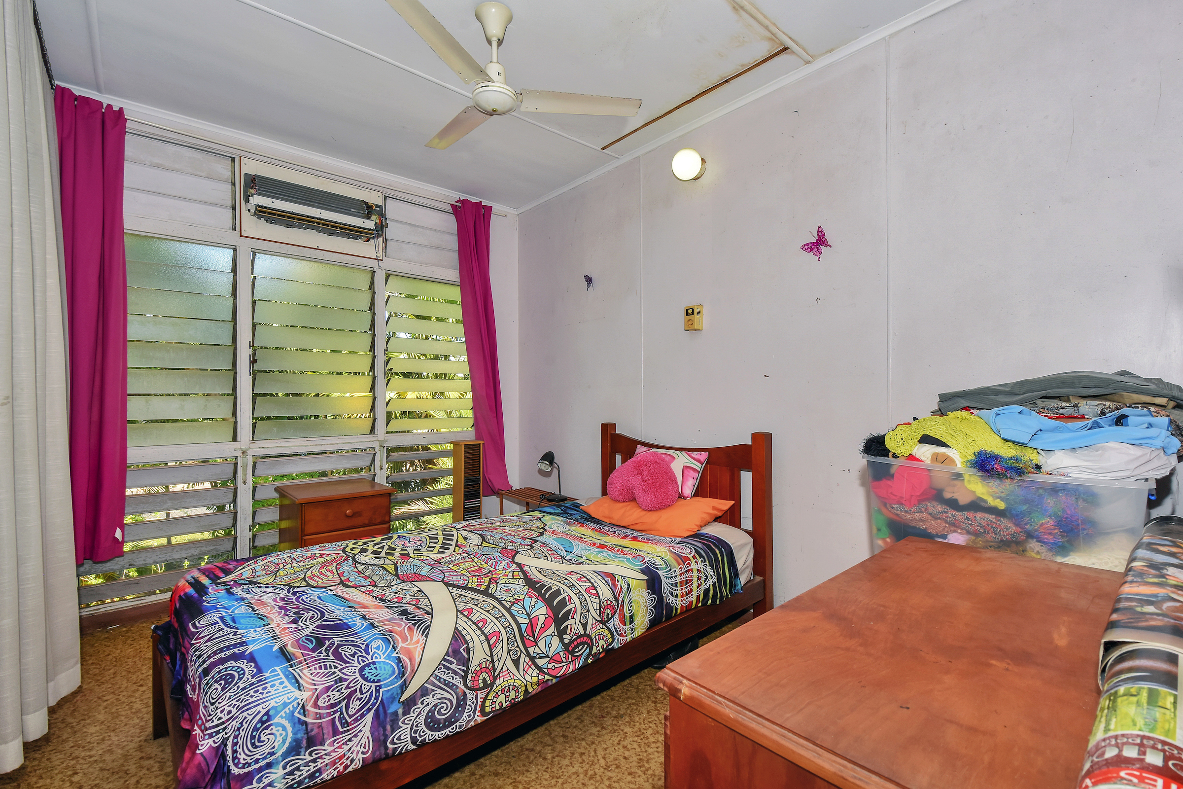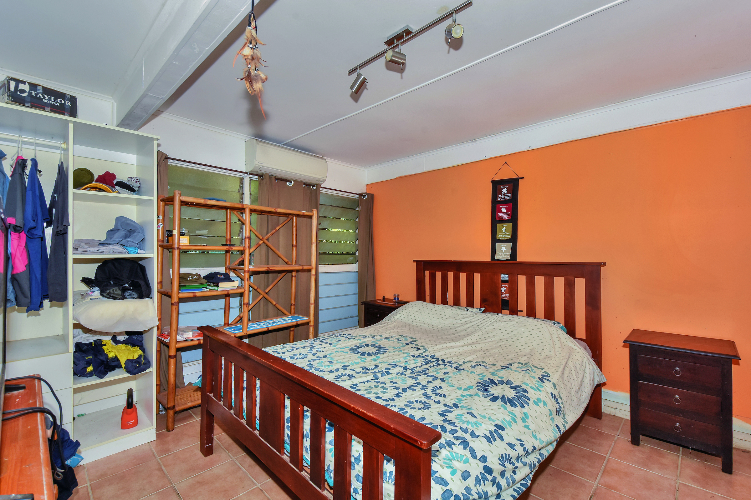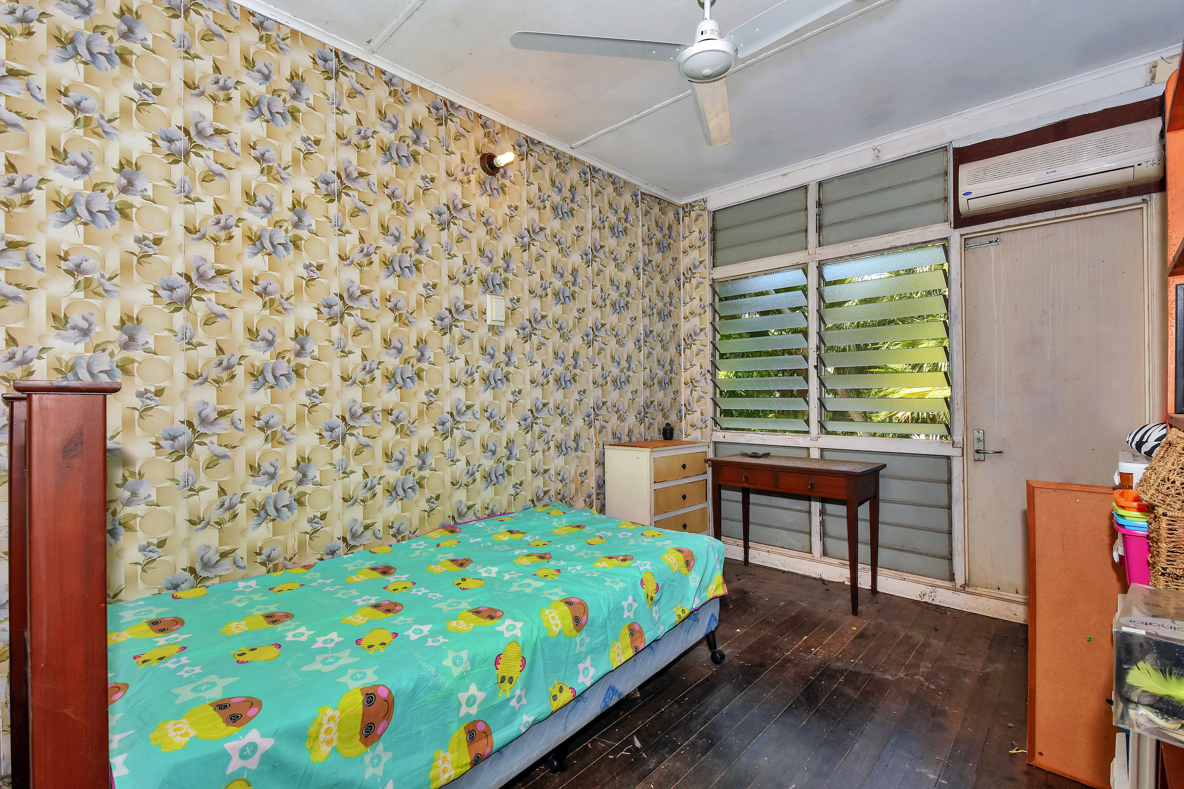 -Upstairs are three bedrooms, 2 with timber flooring and a wall of louvered windows