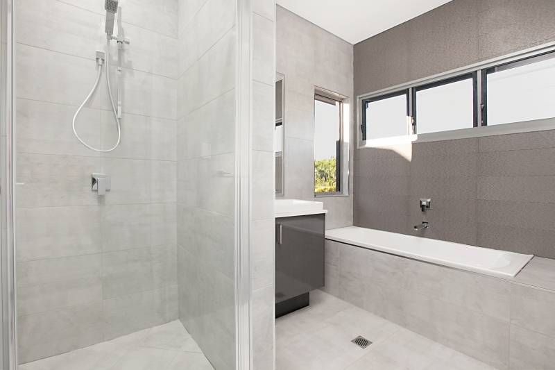 -Main bathroom is sleek & modern with a relaxing bath tub plus sep shower & sep W/C