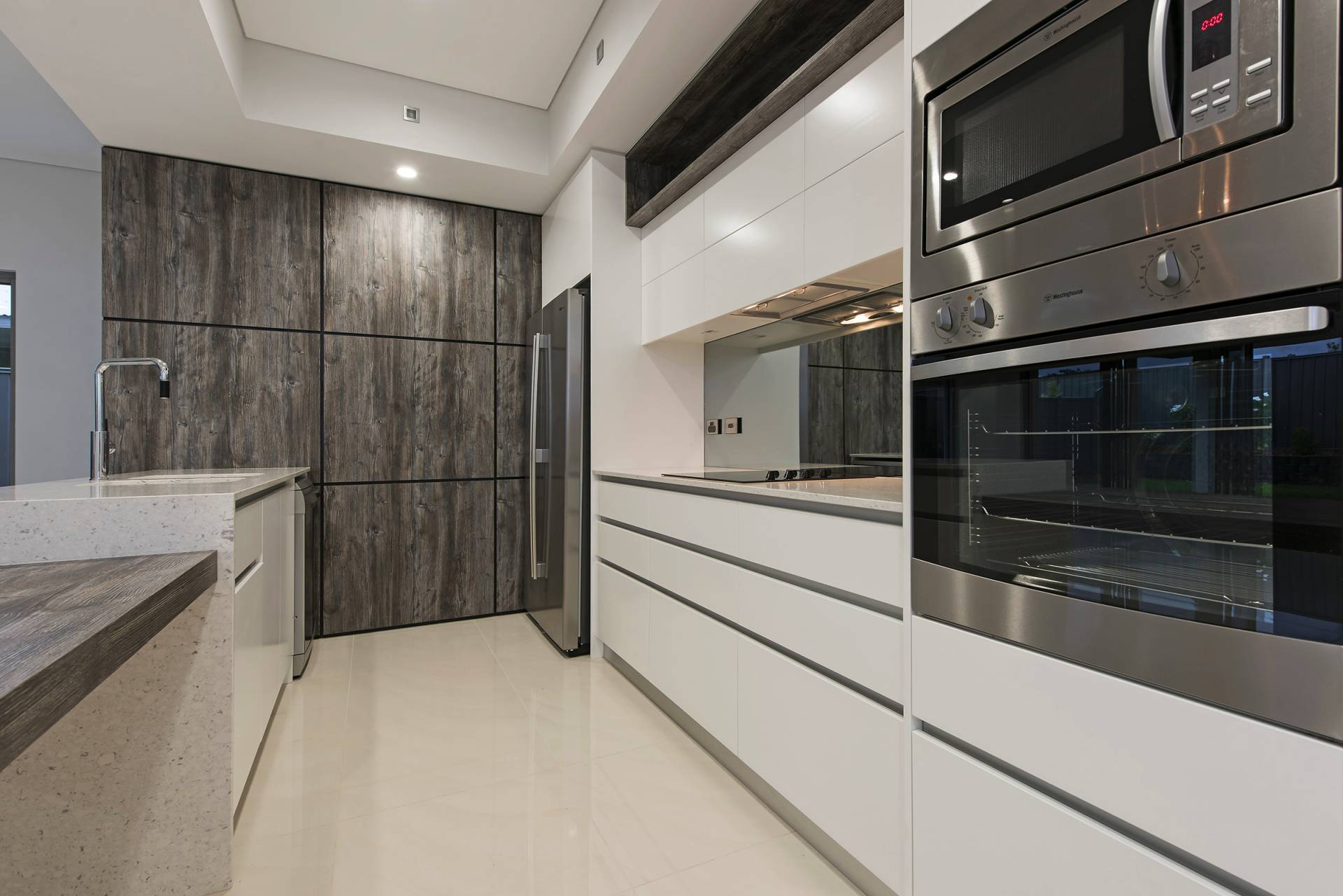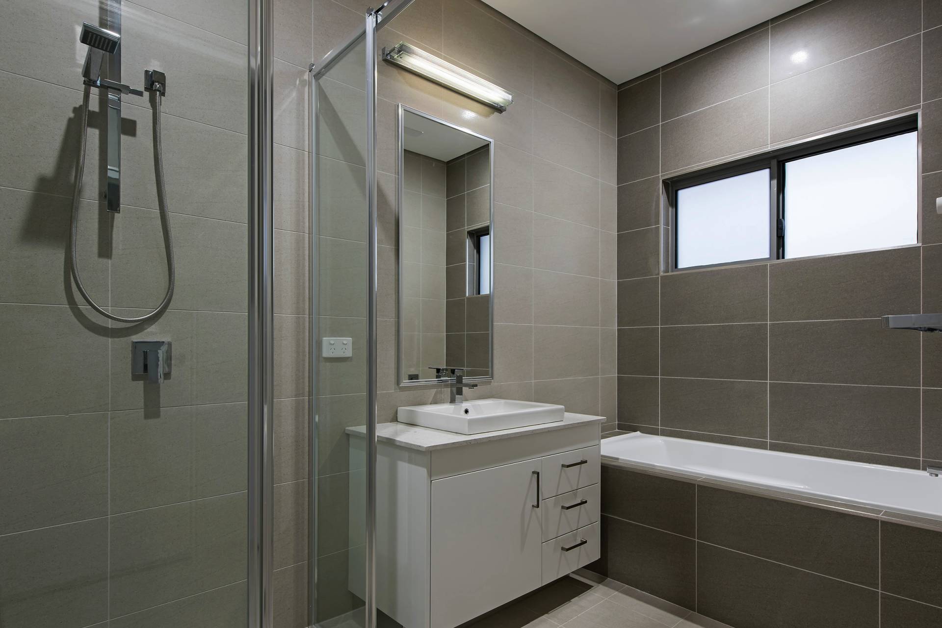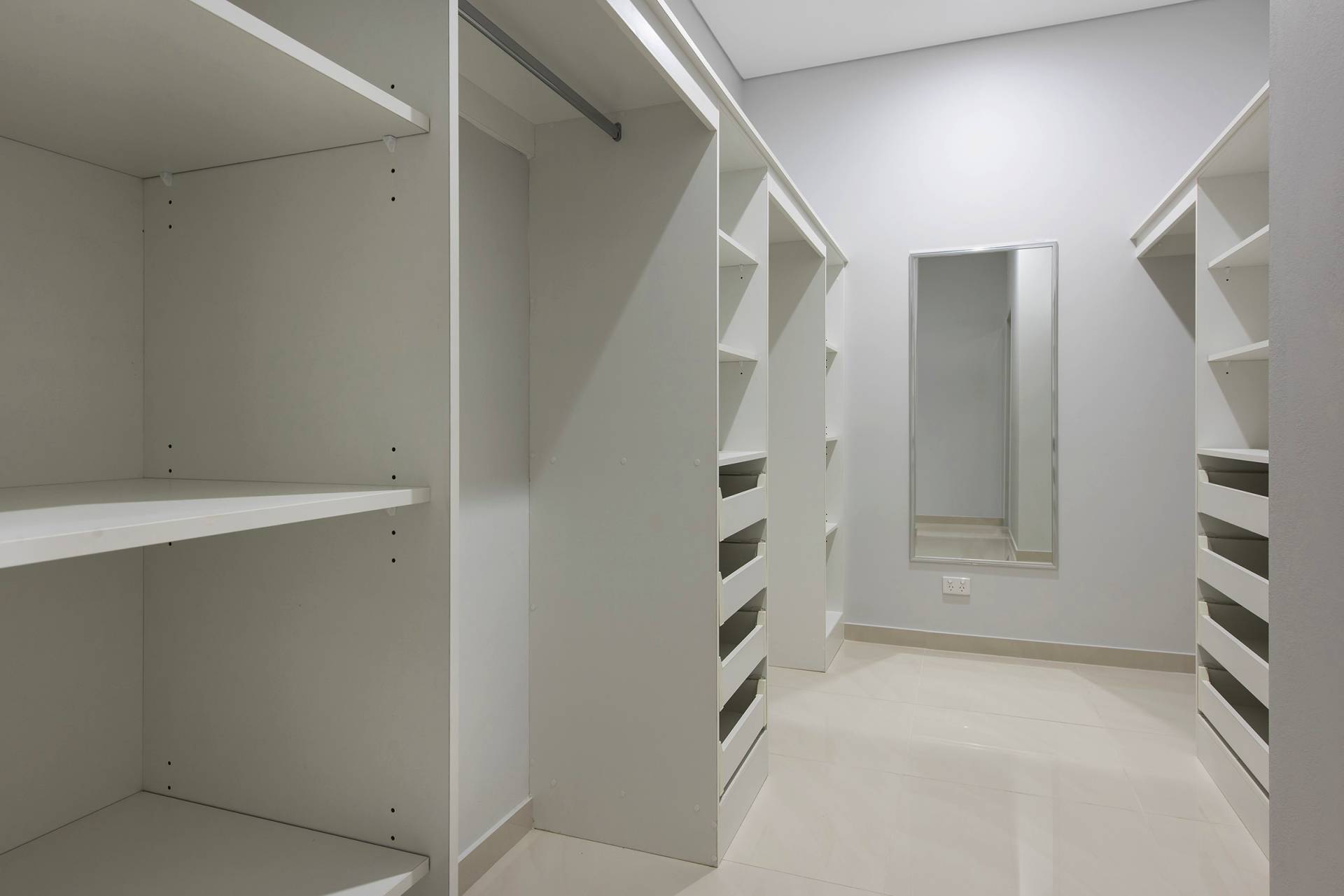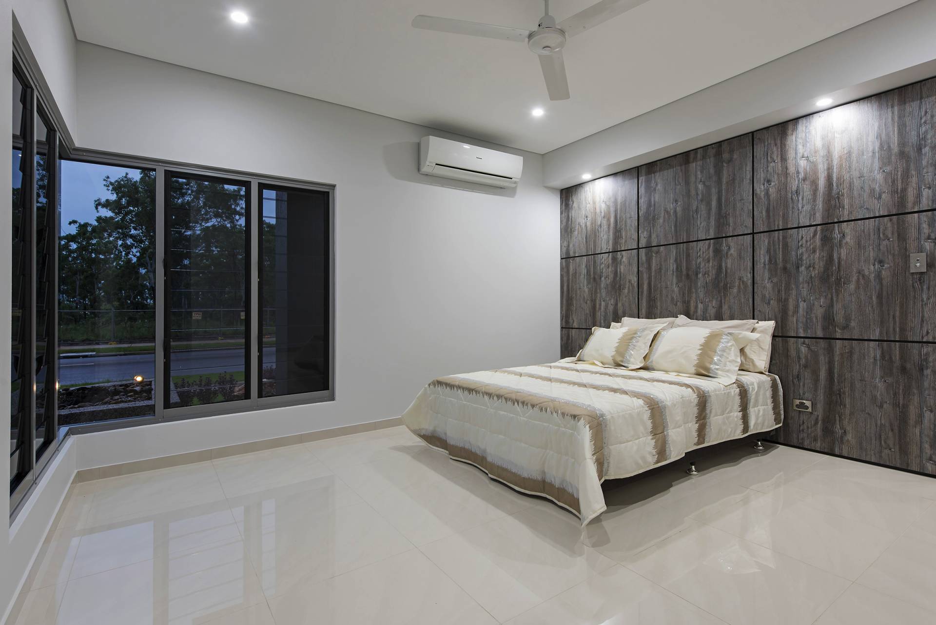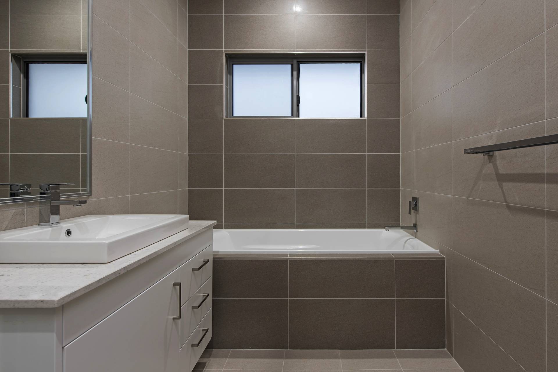 The master bedroom has a feature wall that is a replica of the kitchen wall and adds to the continuity throughout the home. This enormous master suite also includes an ensuite bathroom with feature LED lighting in the shower and twin basin plus a large walk in robe as well.