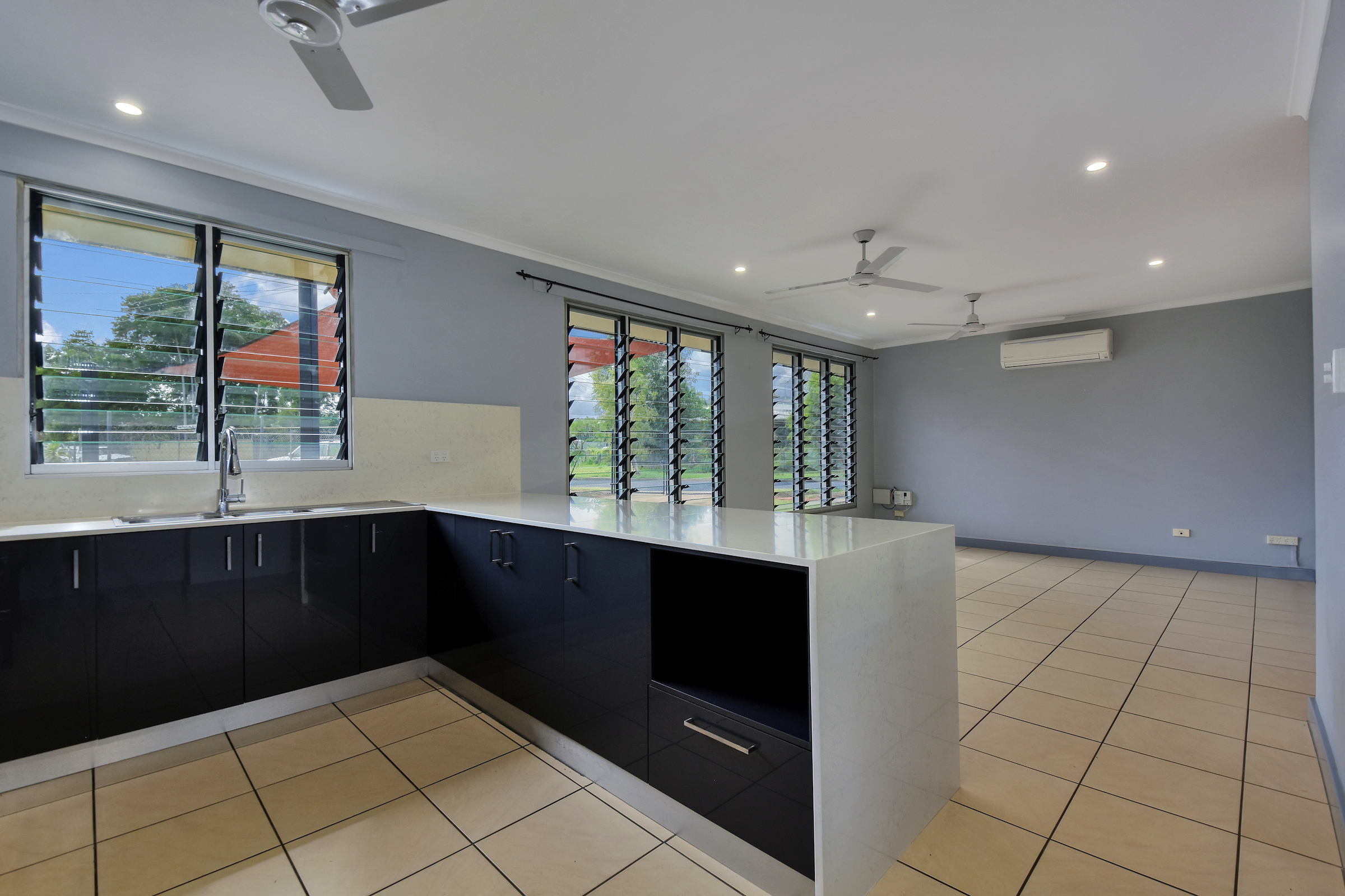 Inside the home a spacious kitchen with ample cupboard storage, large stone benchtops and near new appliances looks over the large living and dining area which is surrounded by floor to ceiling louvers that fill the space with natural light and cool breezes.