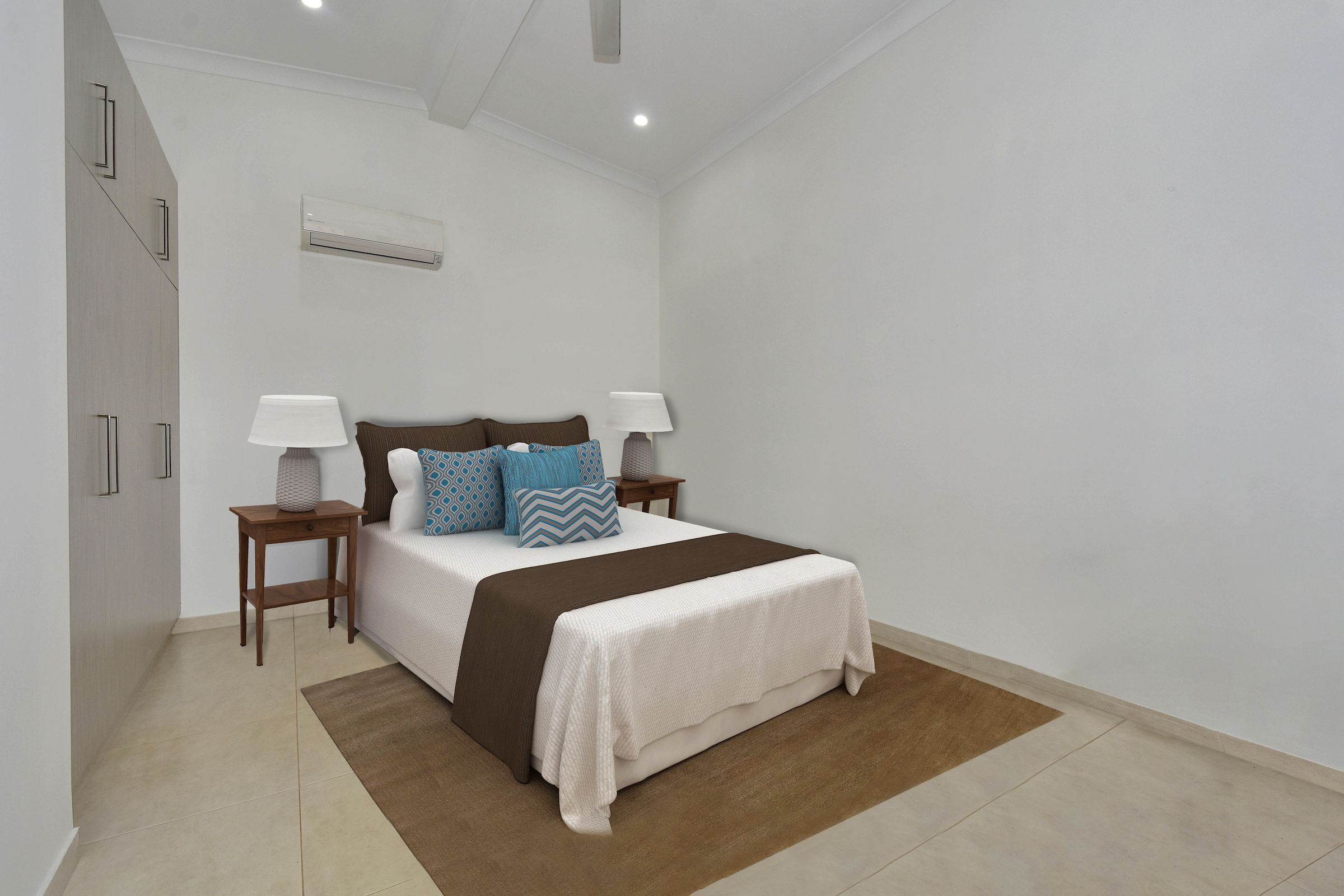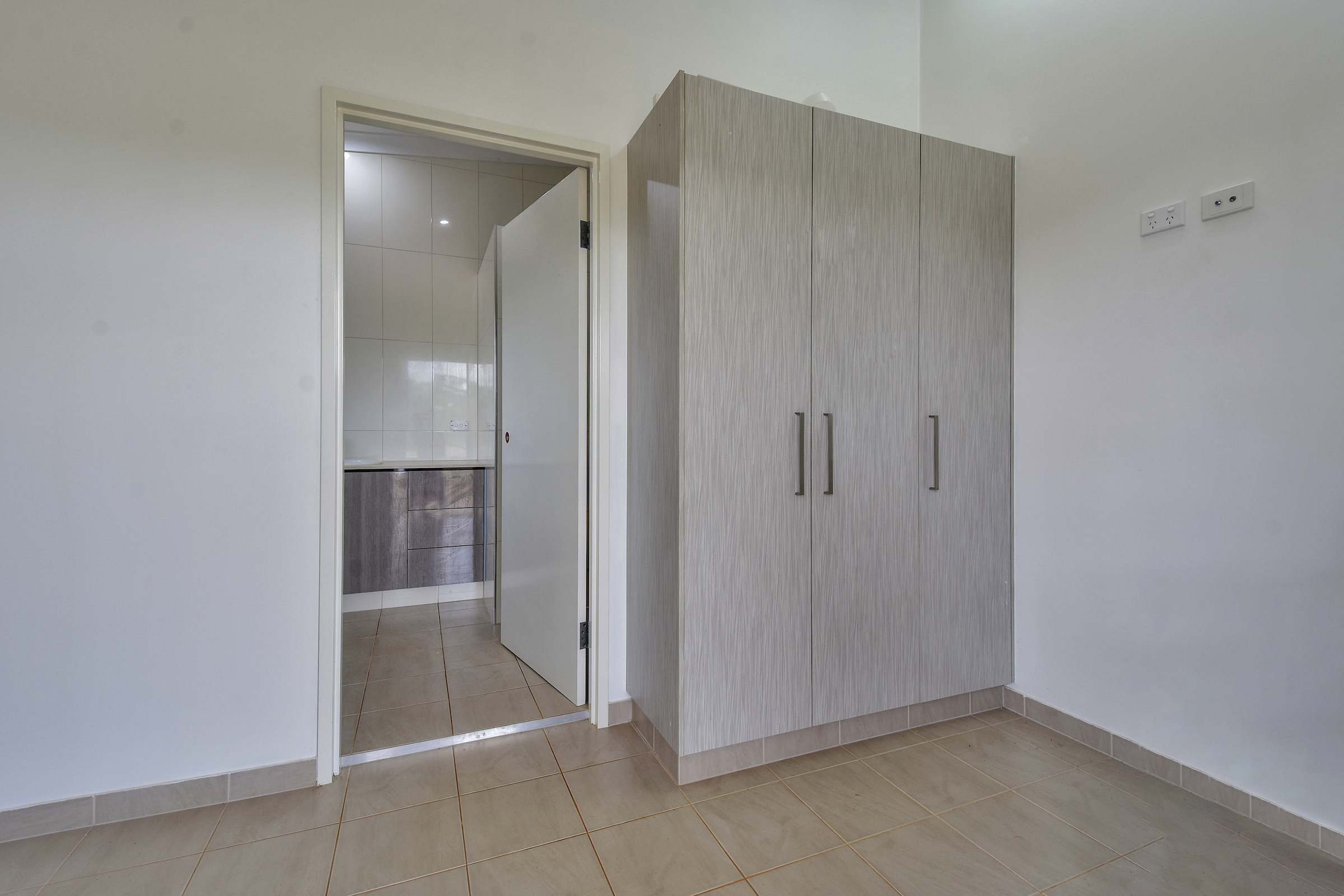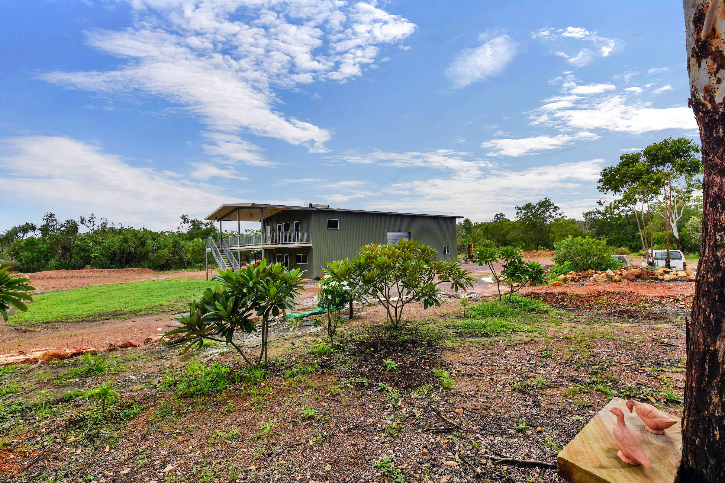 At the front of the structure, the two story house includes two bedrooms, a study, a bathroom and a huge outside entertaining area upstairs.