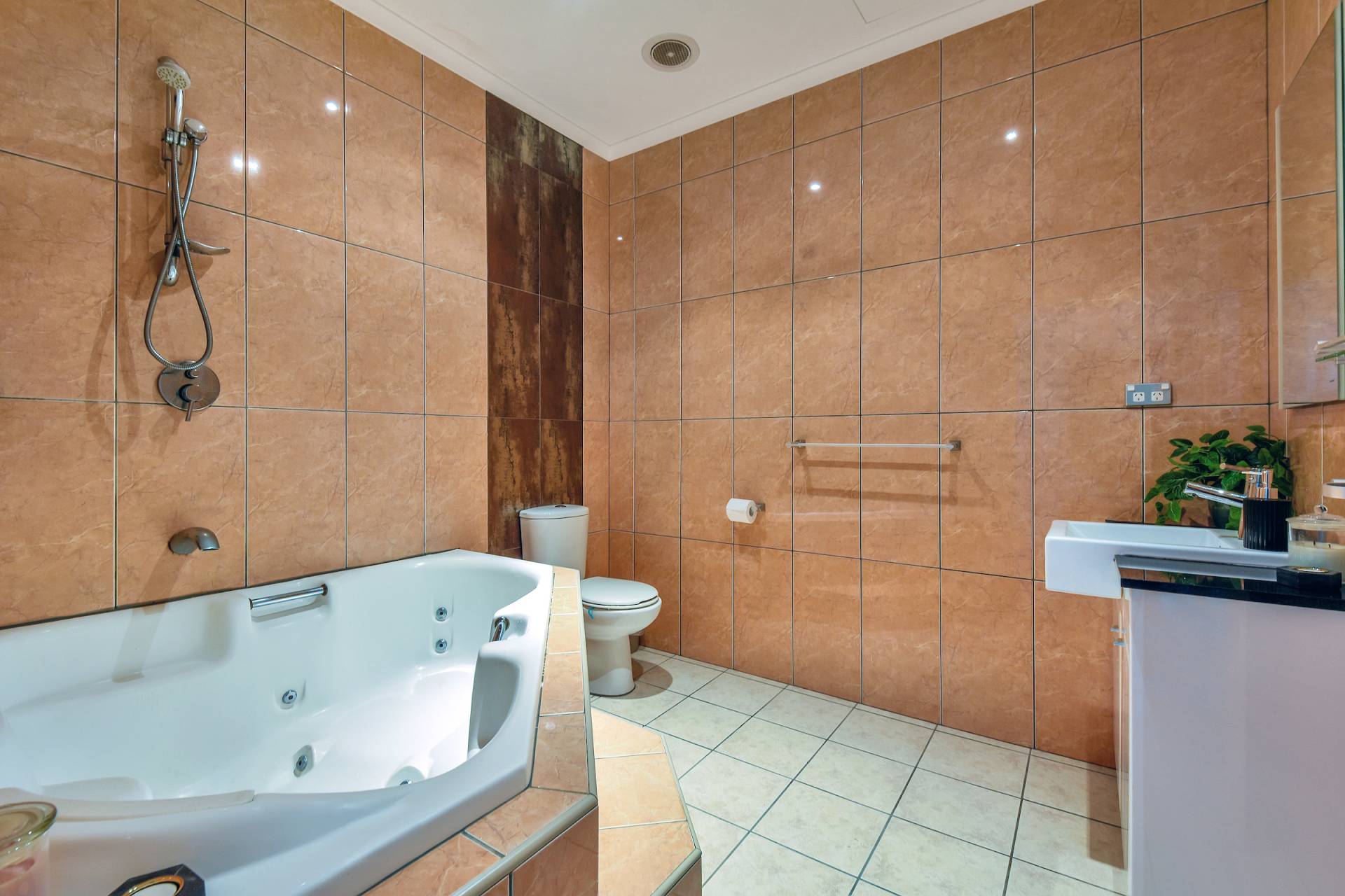 • Bathroom includes luxurious corner spa bath