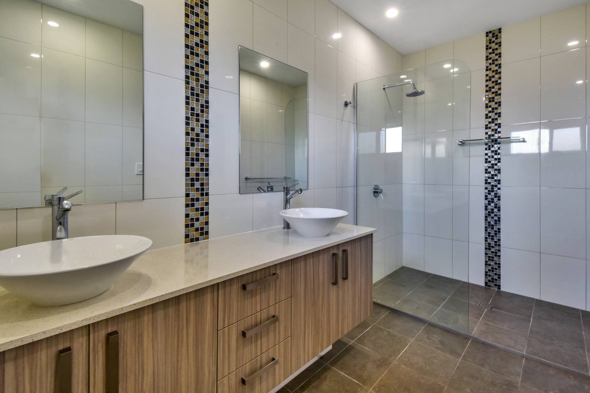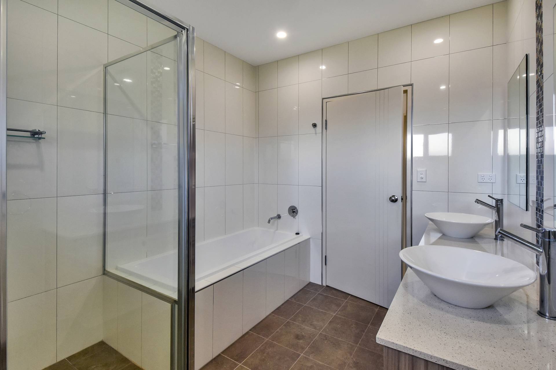 The main bathroom is well appointed again with his and her's vanity plus a shower and a relaxing bath tub as well. There is also an internal laundry room with built in pantry and workbench space too.
