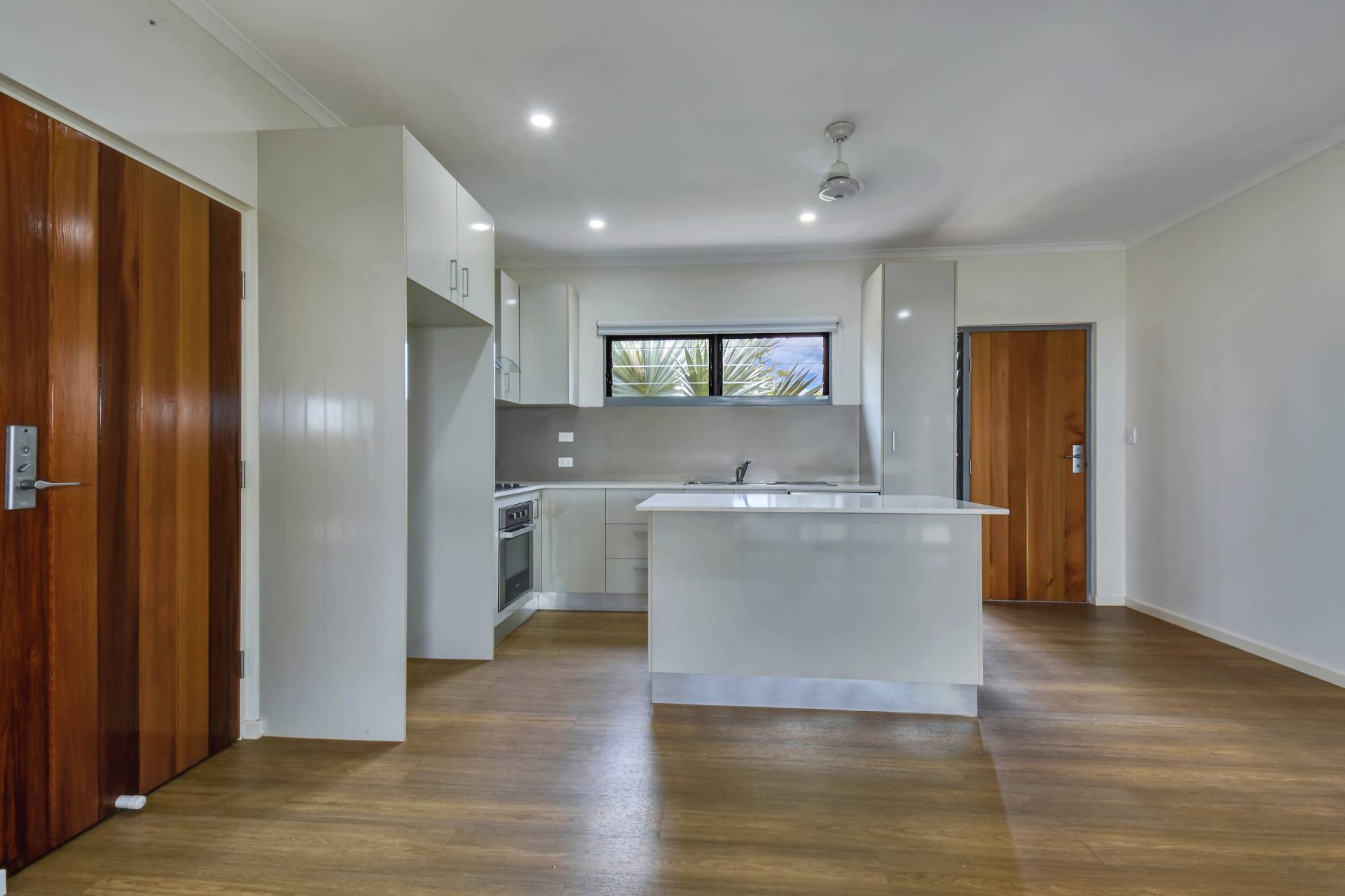 -The kitchen offers an island prep bench / breakfast bar along with overhead storage