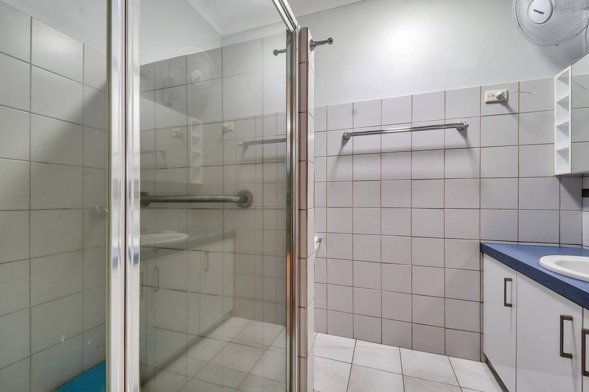 Each of the two bedrooms are spacious in design and include both a built in robe and A/C as well. The bathroom resides centrally between them and has a modern presentation with plenty of built in storage in the vanity.