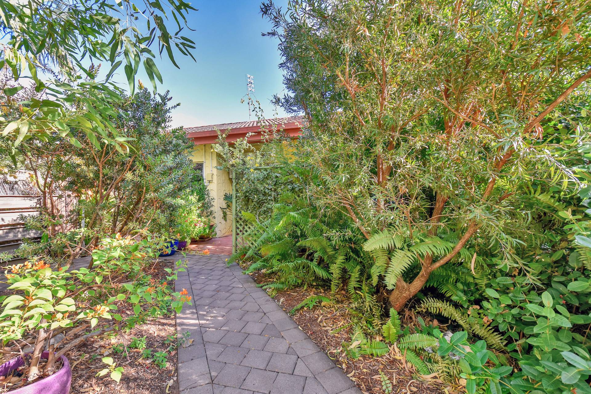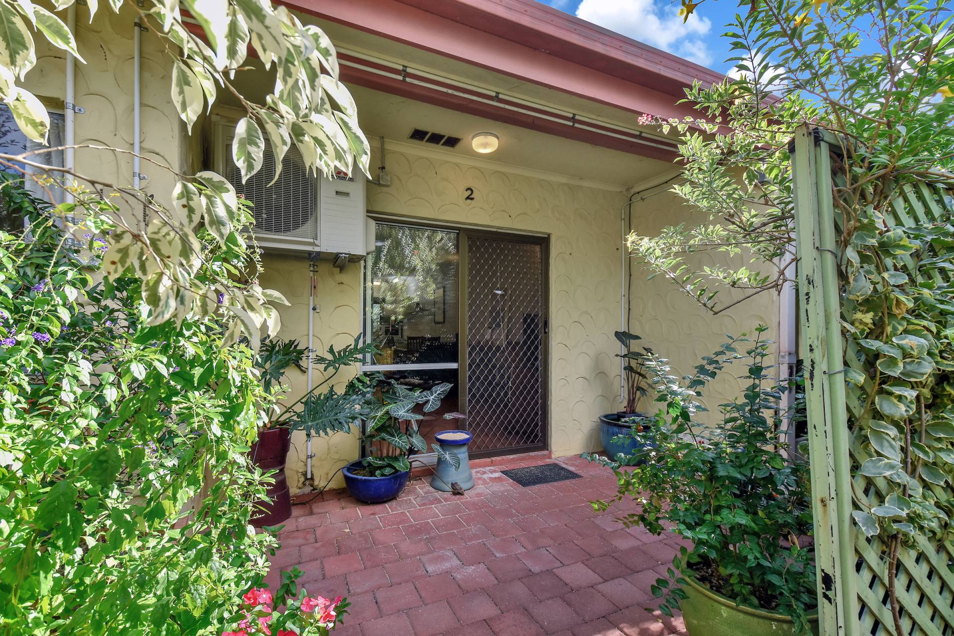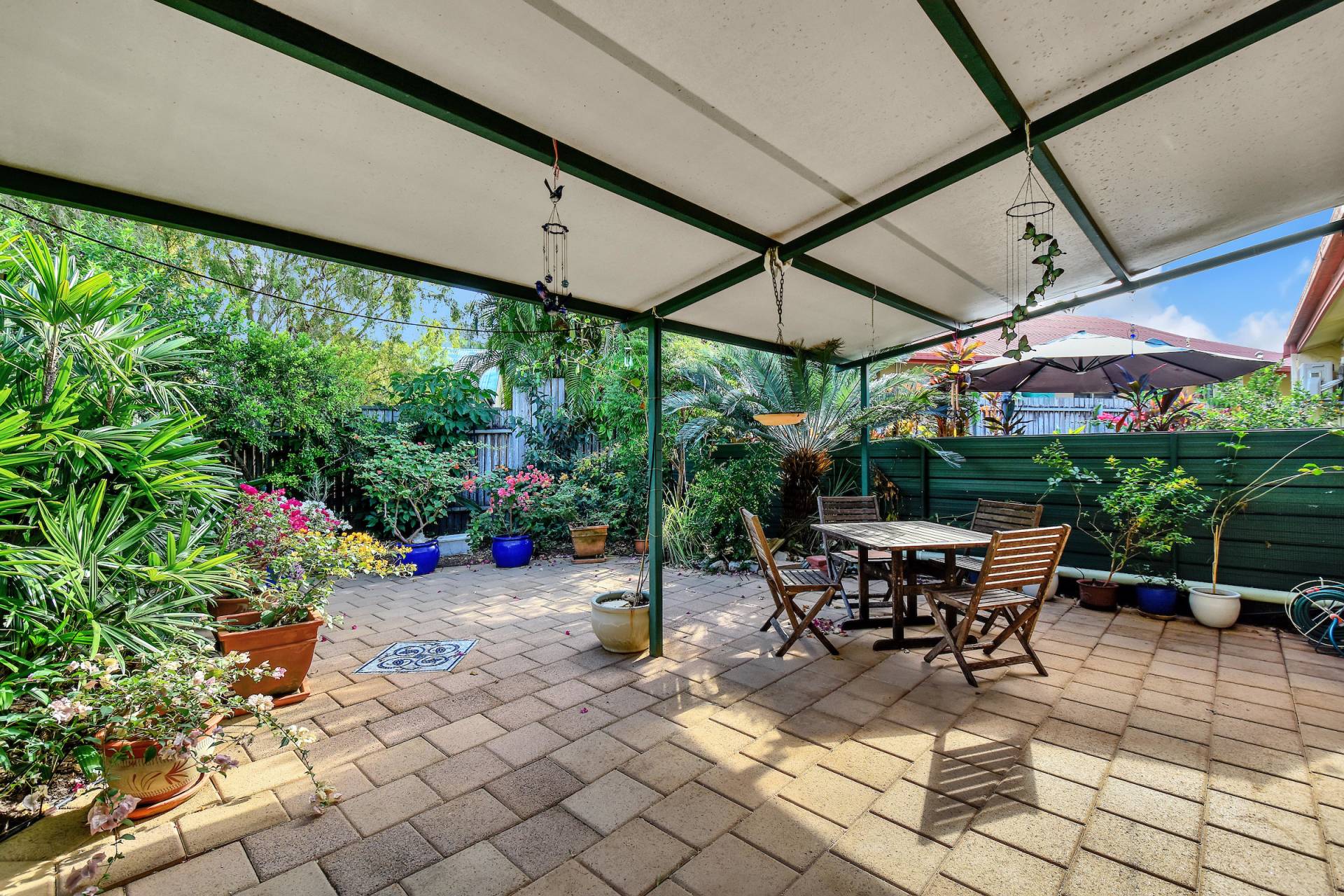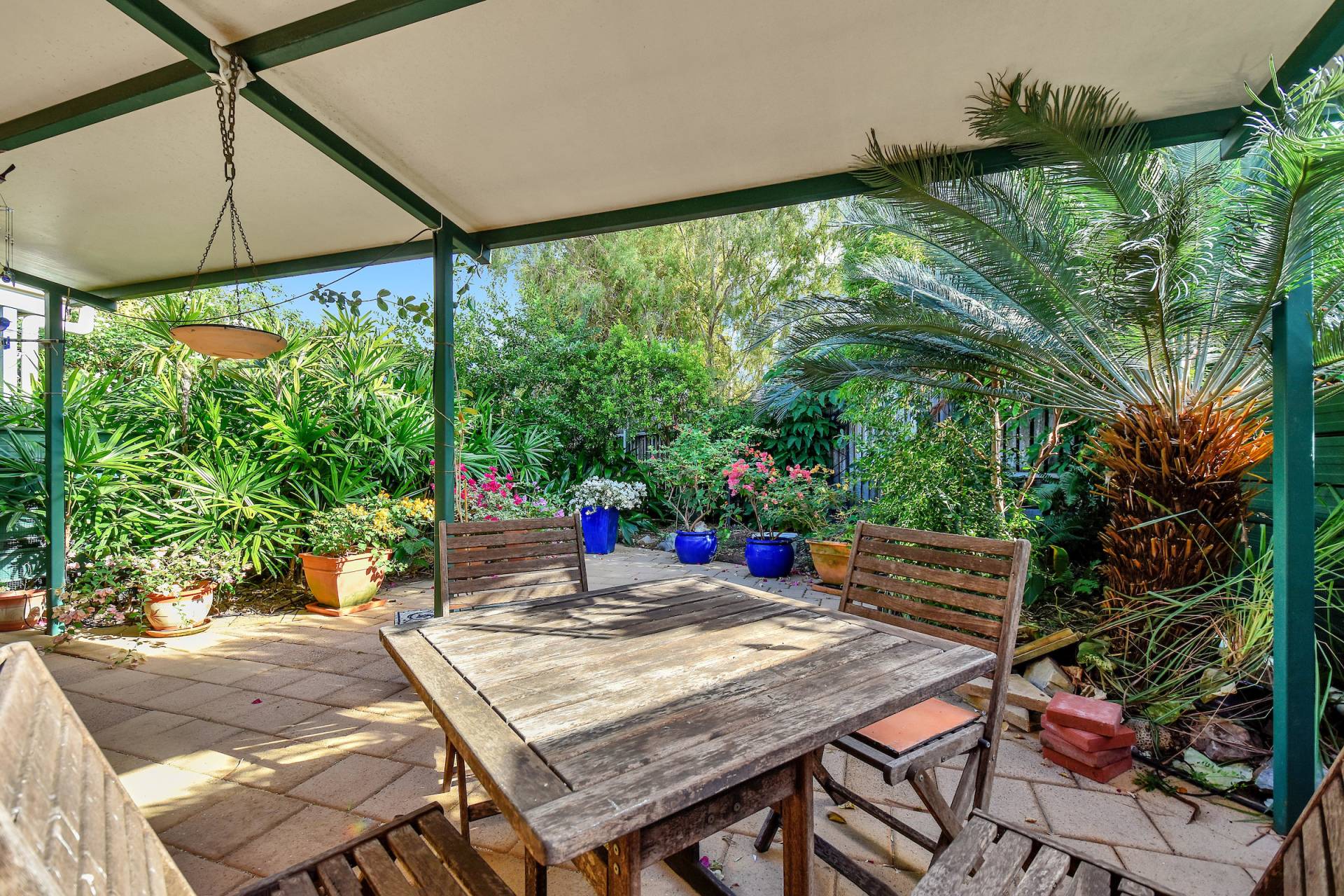 •Courtyard is thriving and bursting with colour spilling forth from the plants