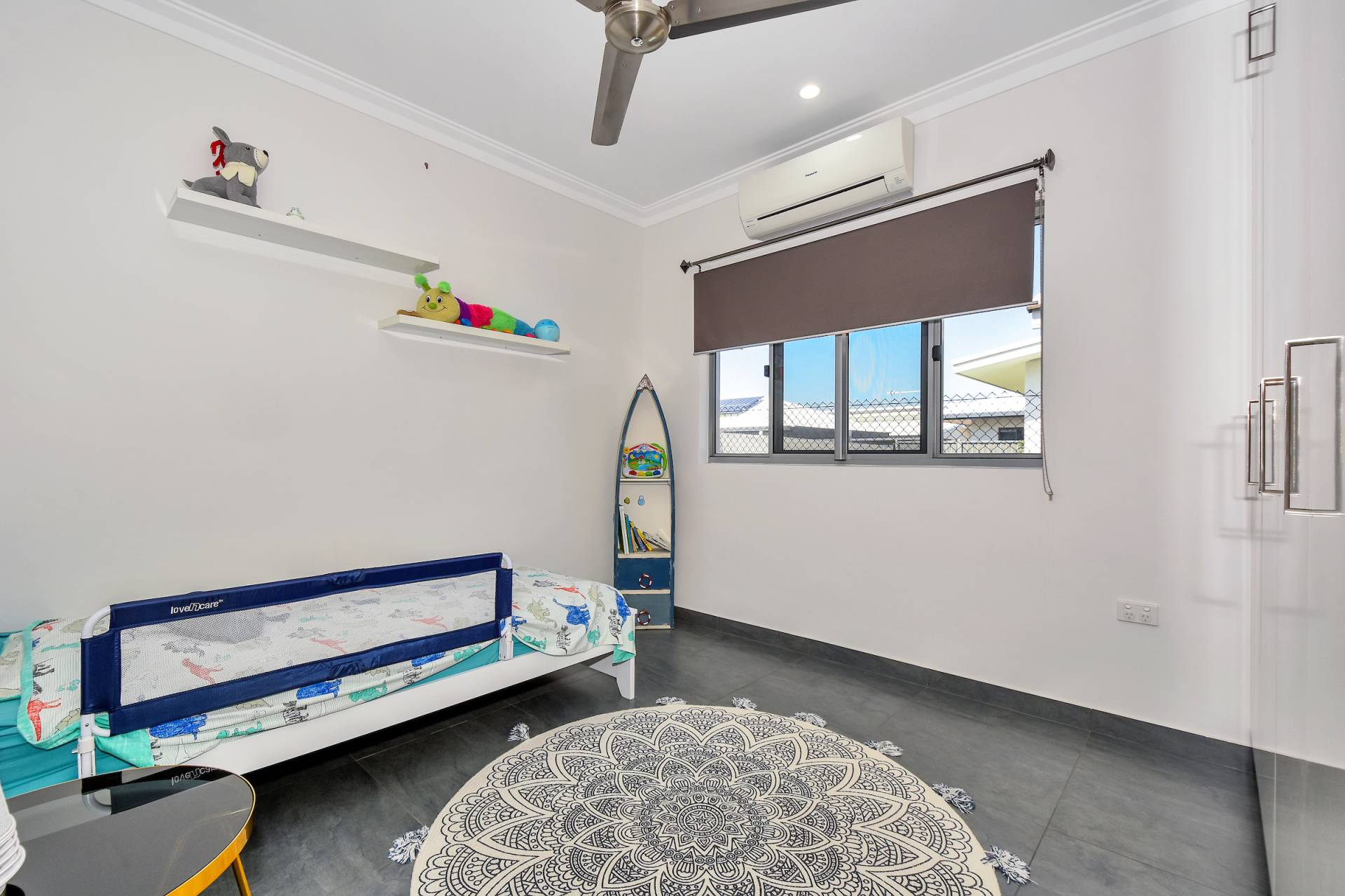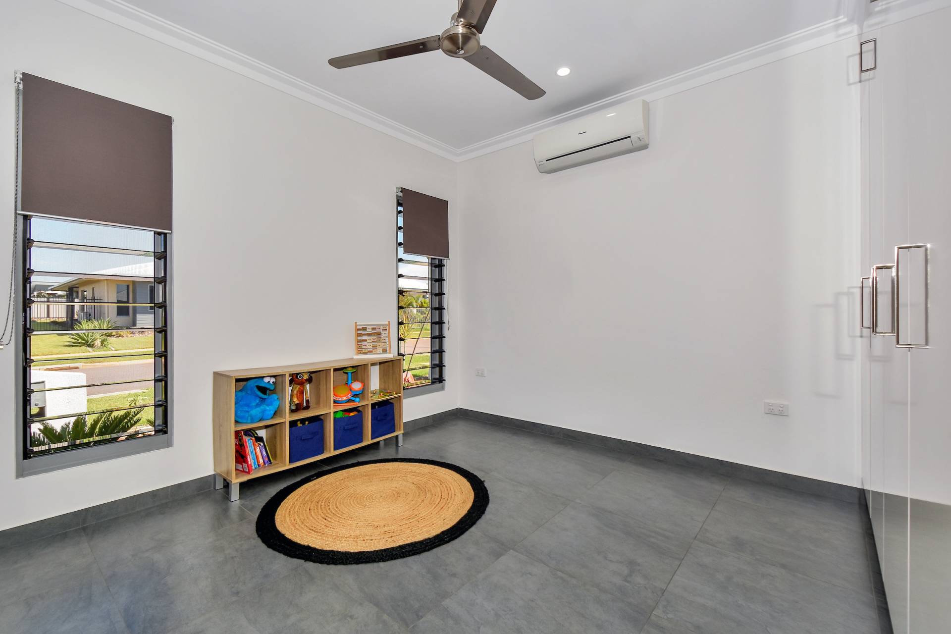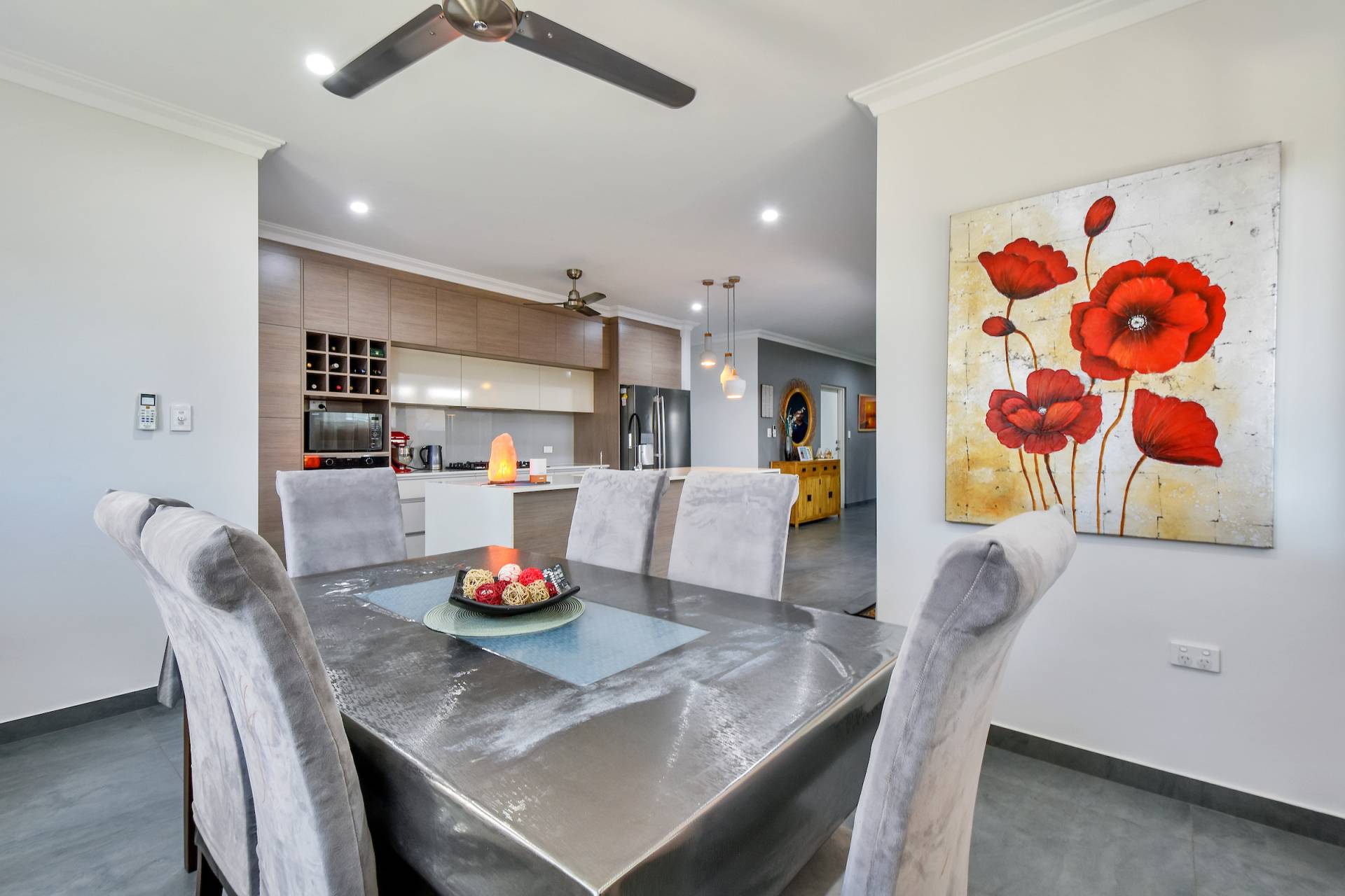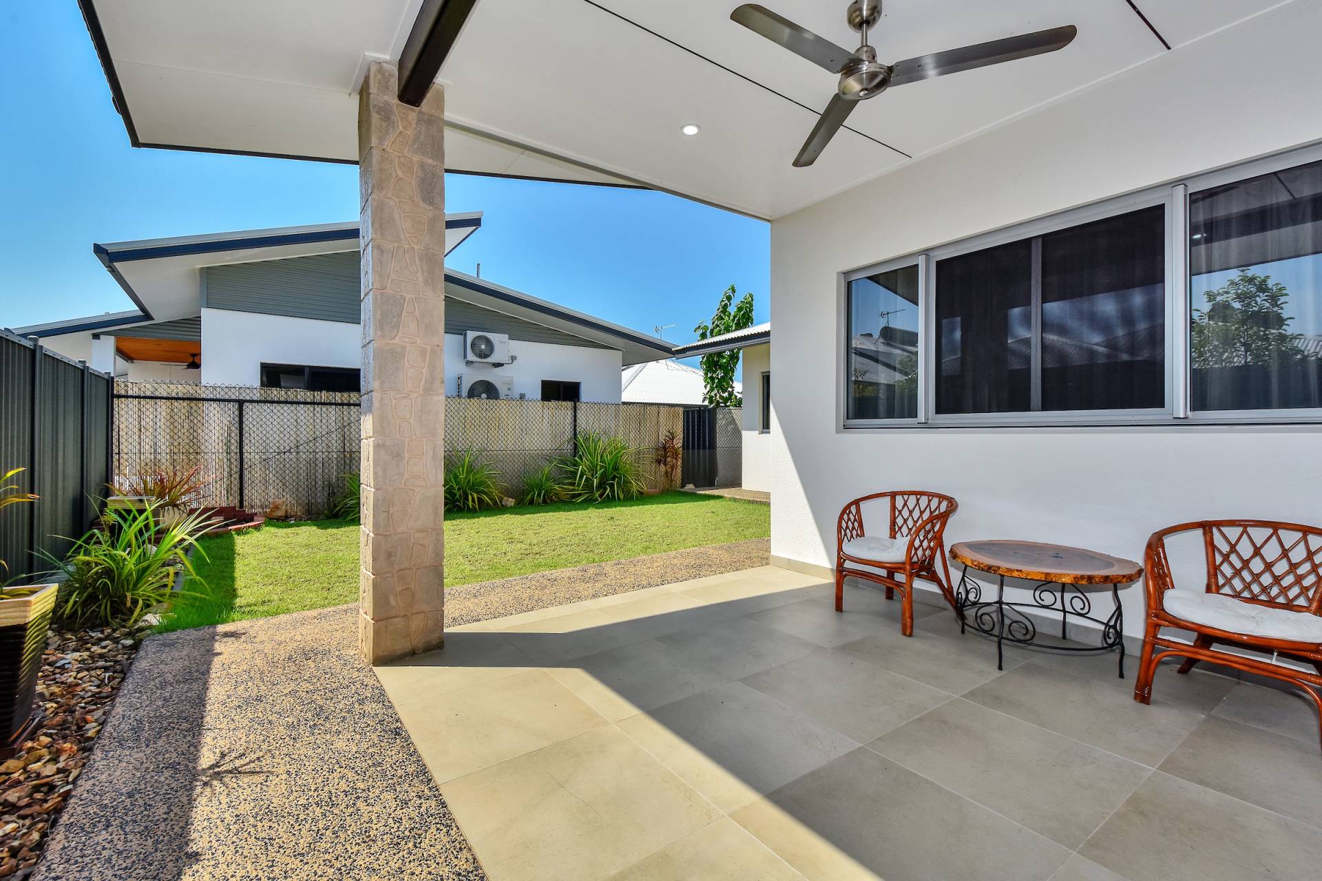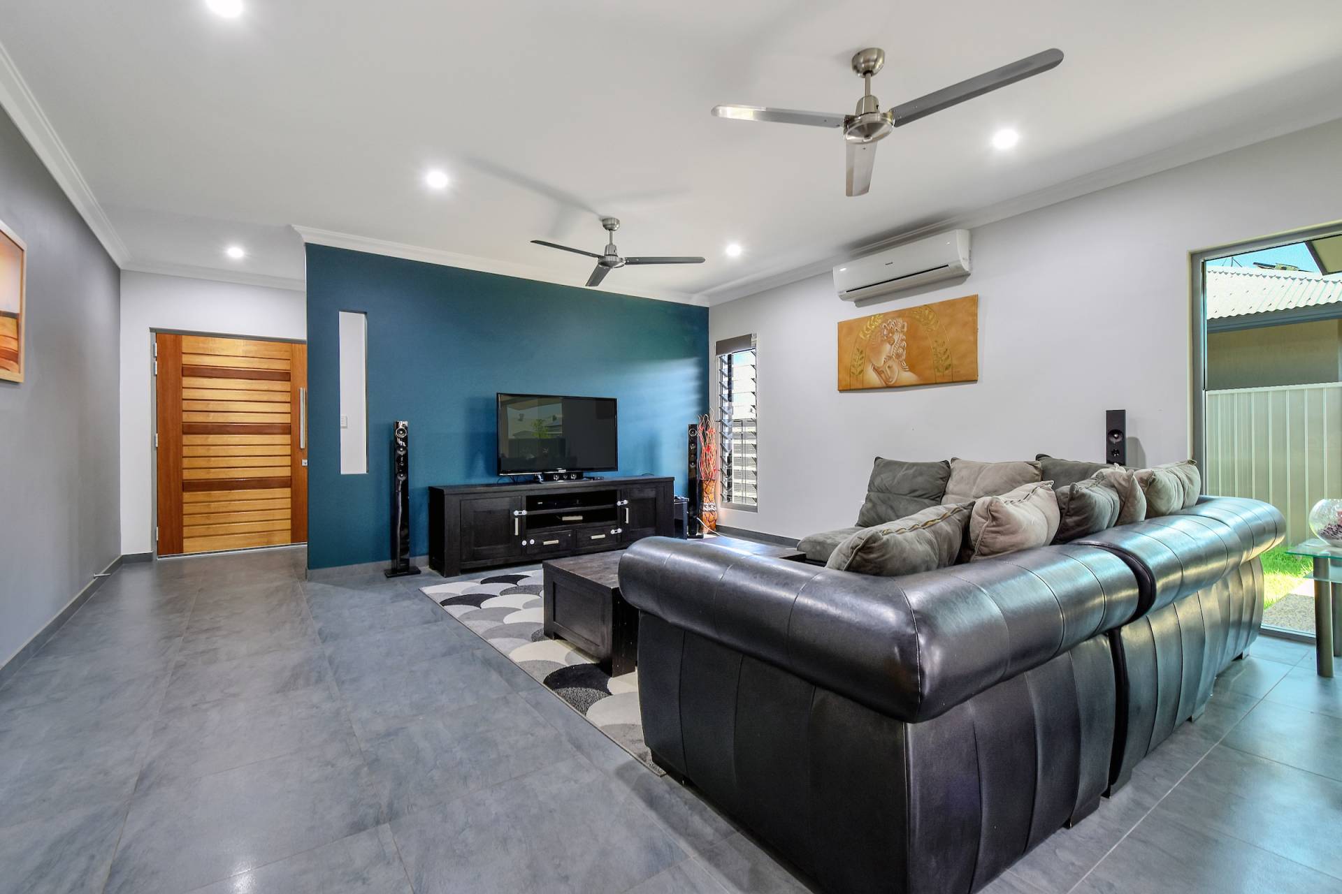 • Dual opening sliding doors lead through to the side verandah and grassy outdoor areas