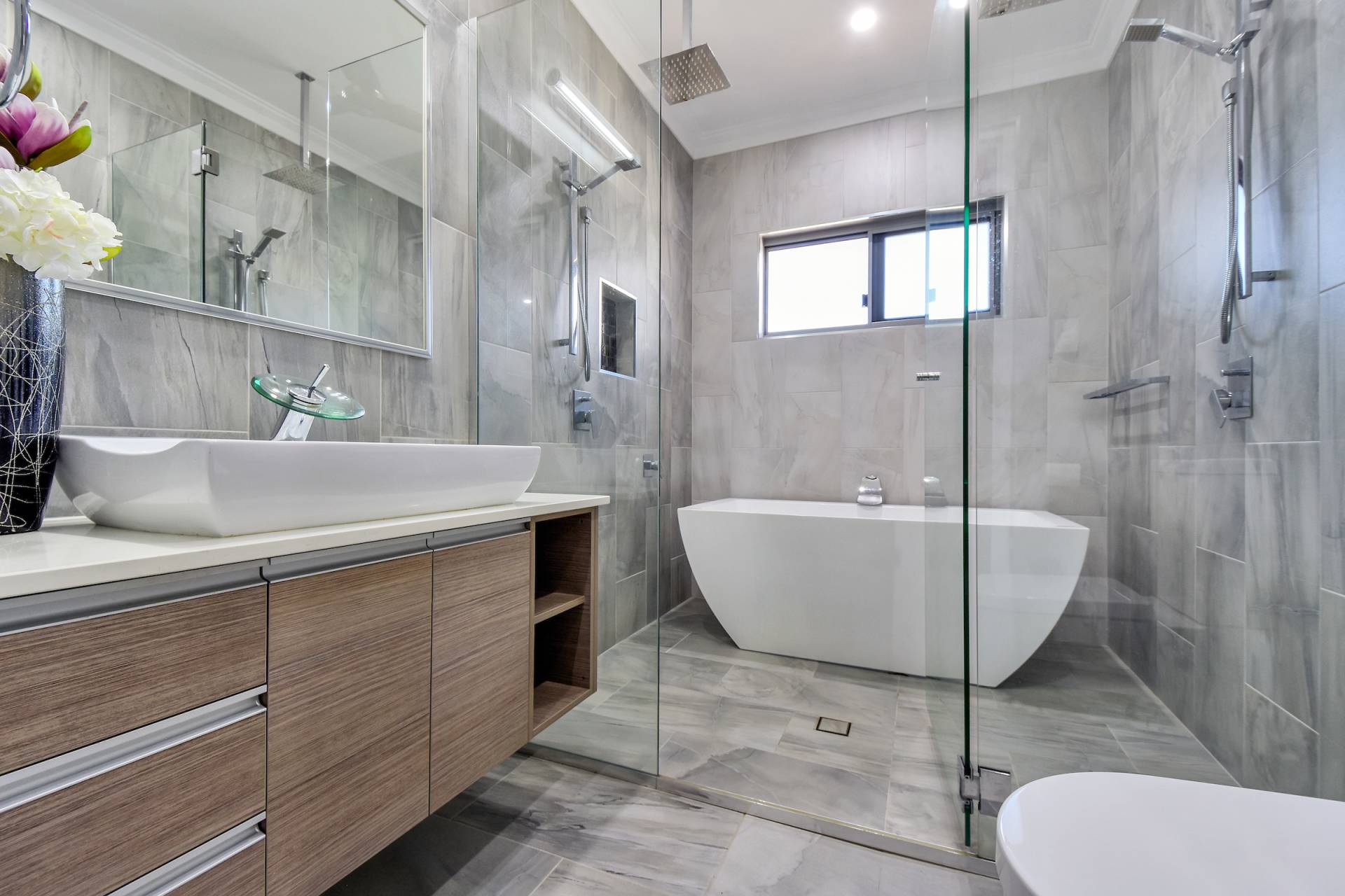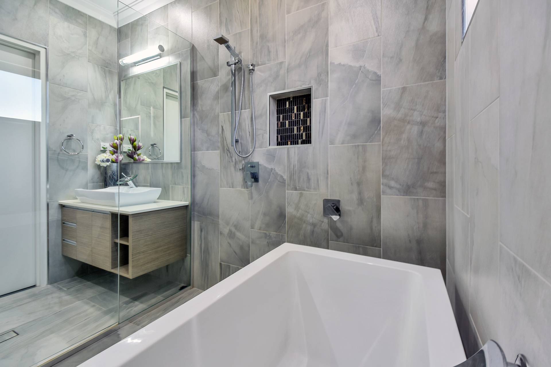 • Ensuite has a bath tub and walk in shower, vanity with storage and feature tapware