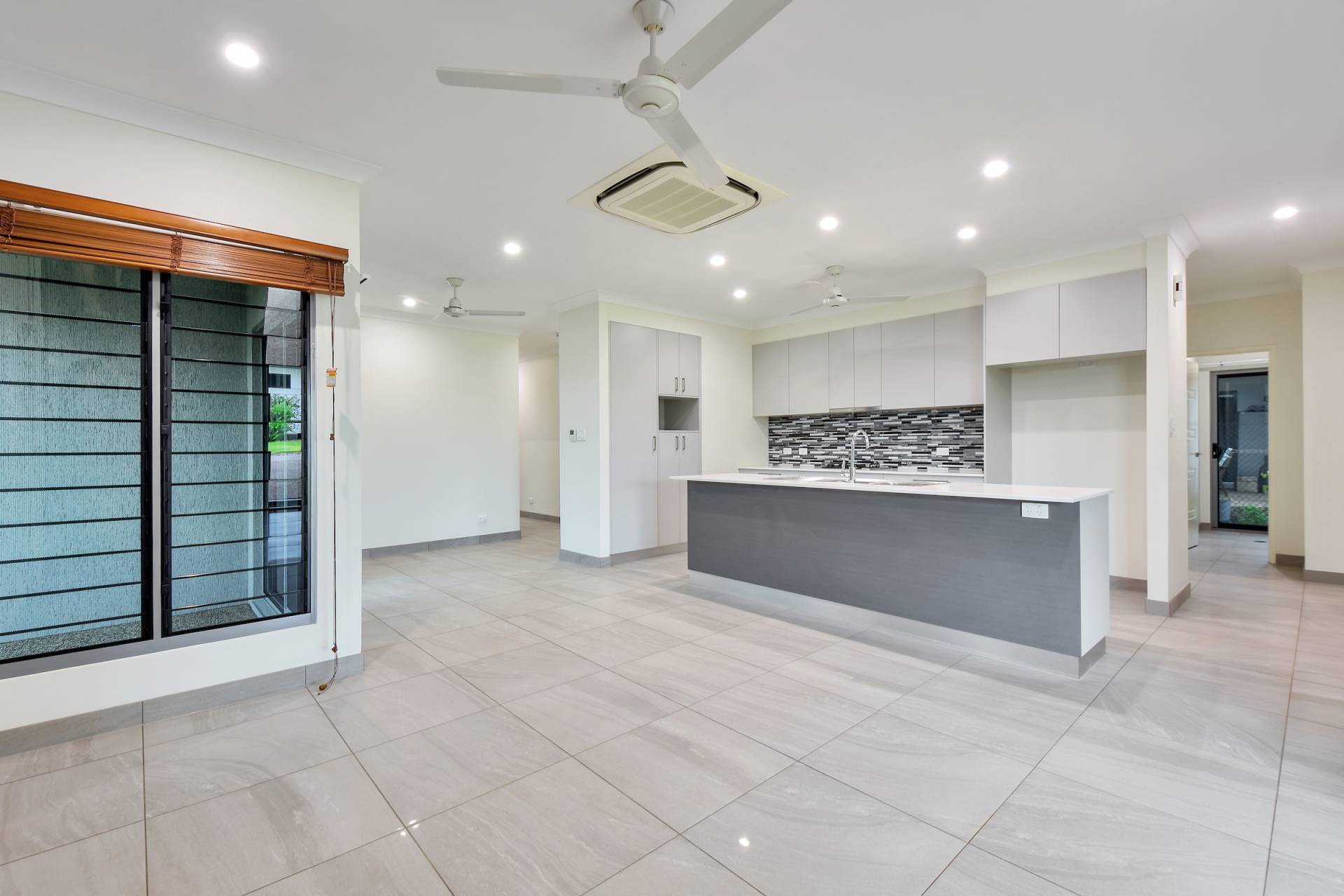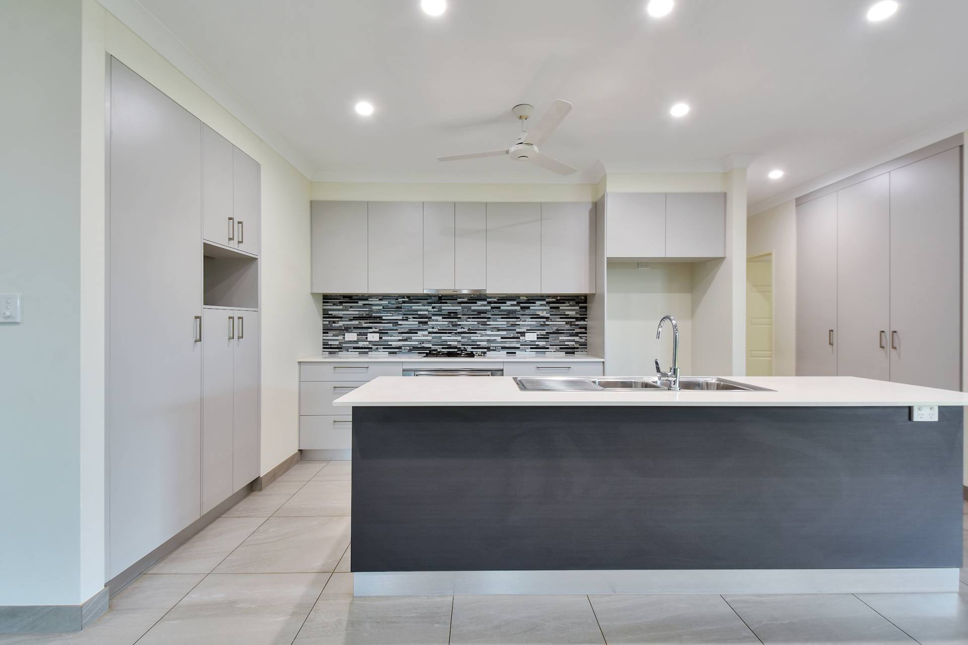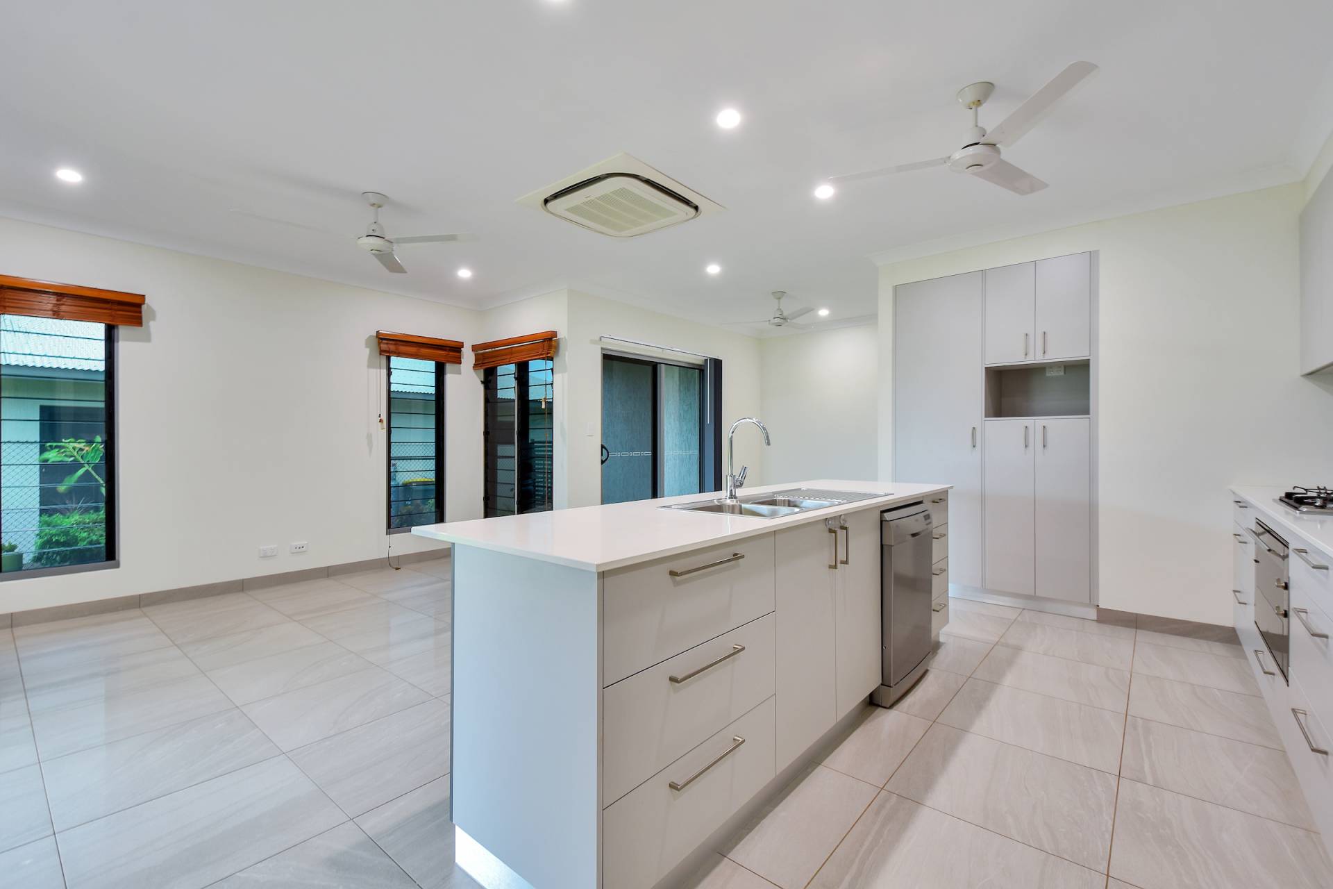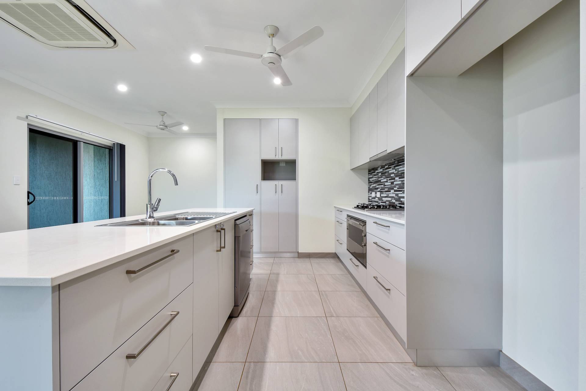 The kitchen is gorgeous with feature tiled splashbacks along with GAS cooktop and stone topped island bench and wall of storage with natural toned cabinetry and overhead. Gorgeous.