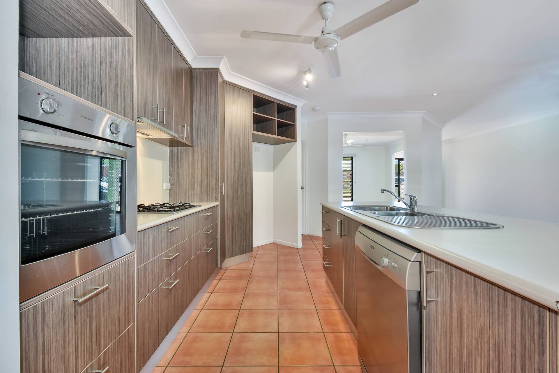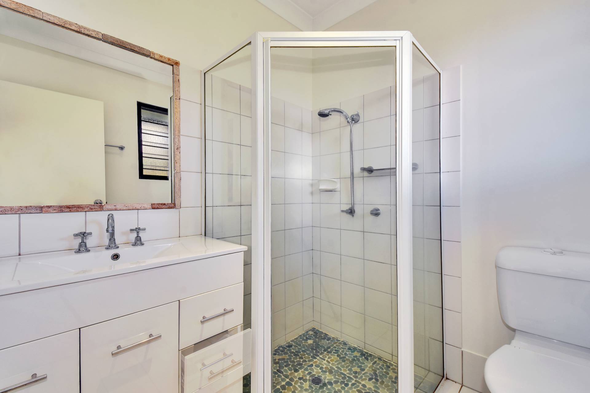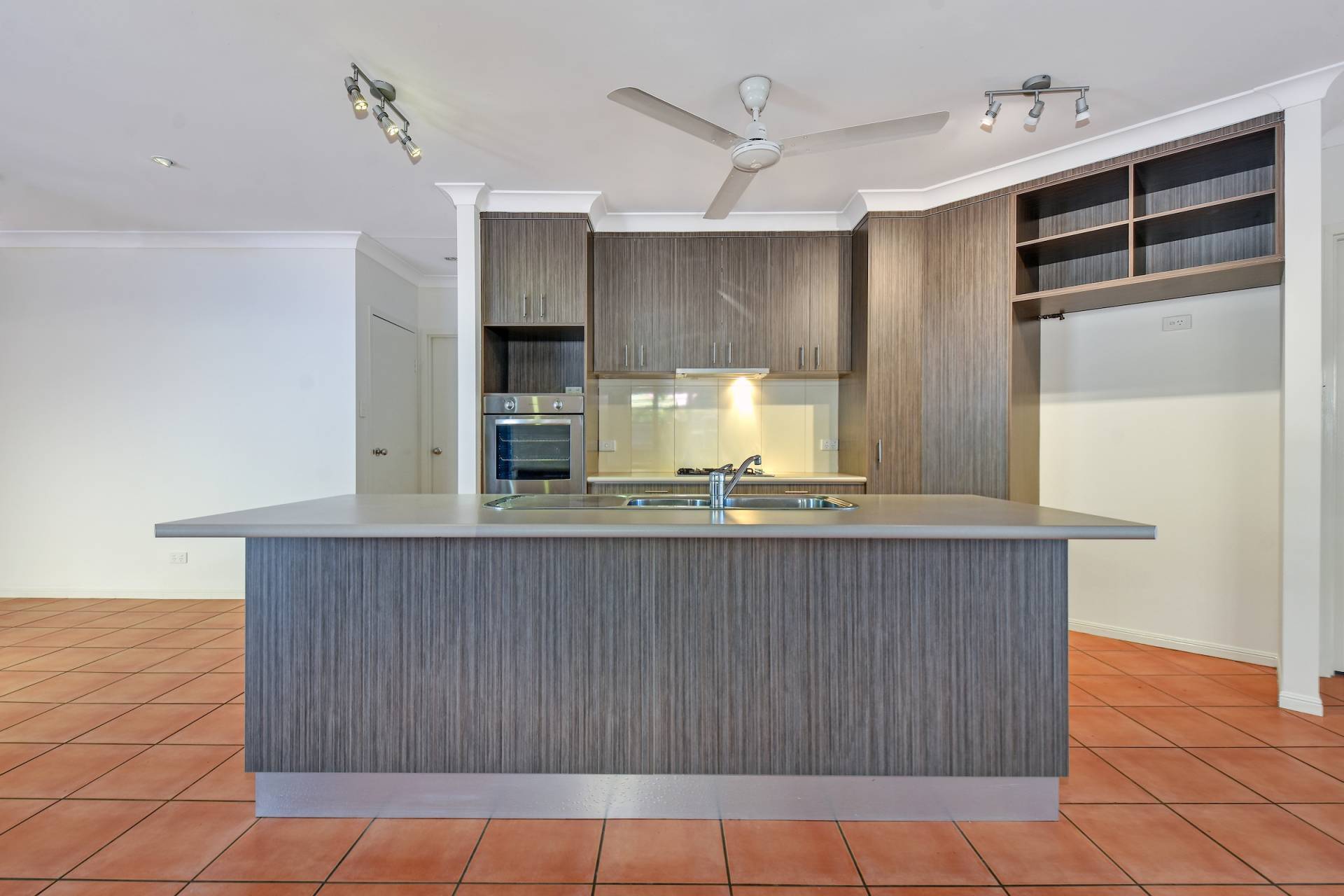 The home has a modern central kitchen surrounded by living and dining areas which create a great feel of space in the home, sliding doors from the living area open out onto a private, covered outside entertaining space with a calming backdrop of the pool and a tropical gazebo.
