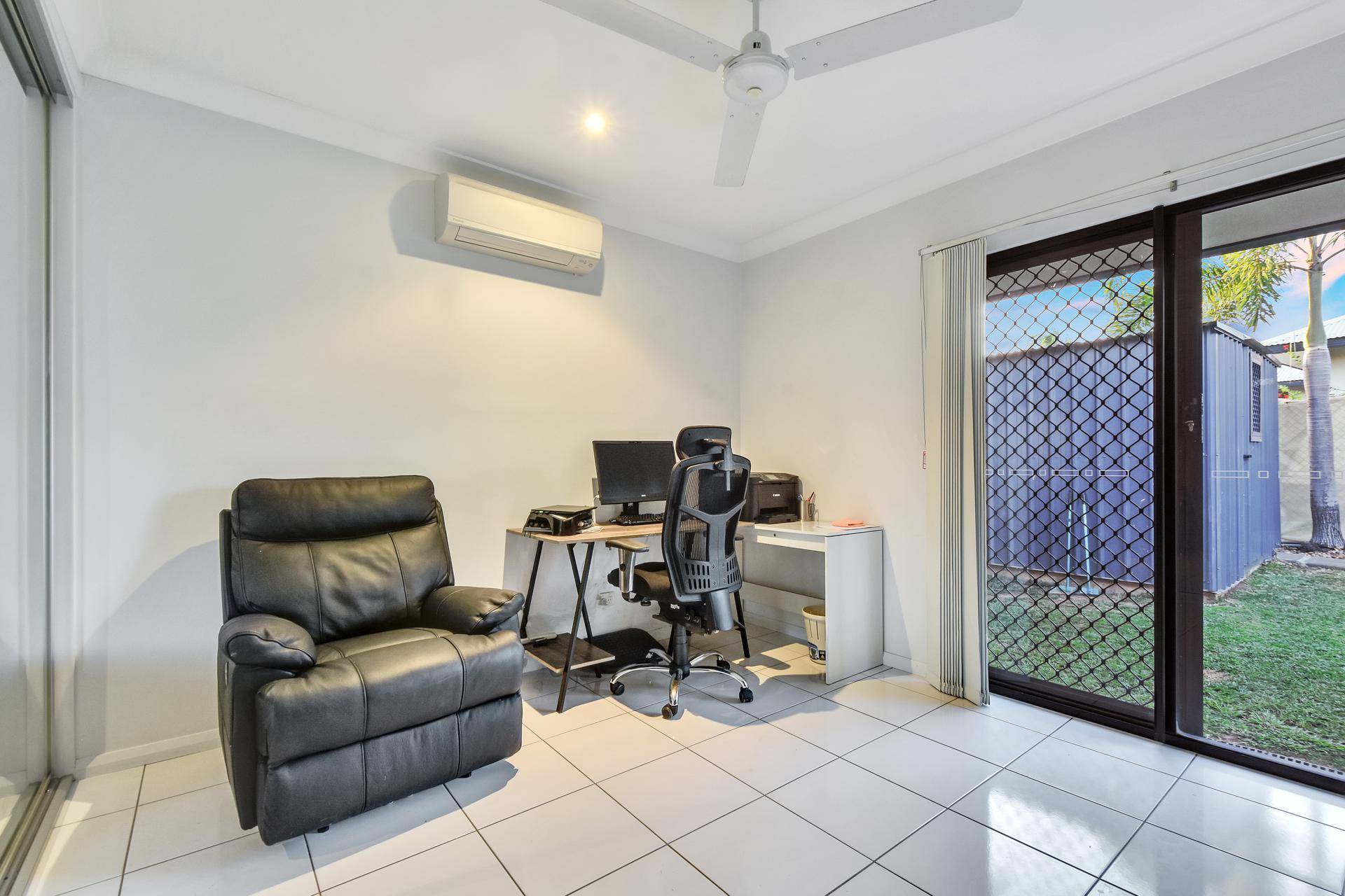 Two bedrooms are rear facing both has sliding door access directly through to the outside entertaining areas and lawn and a third shelter bedroom each include built in robes and A/C along with tiled flooring.