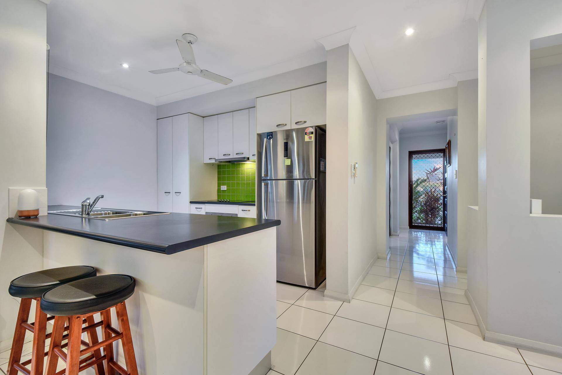 •Galley kitchen includes feature splashback and breakfast bar plus dishwasher