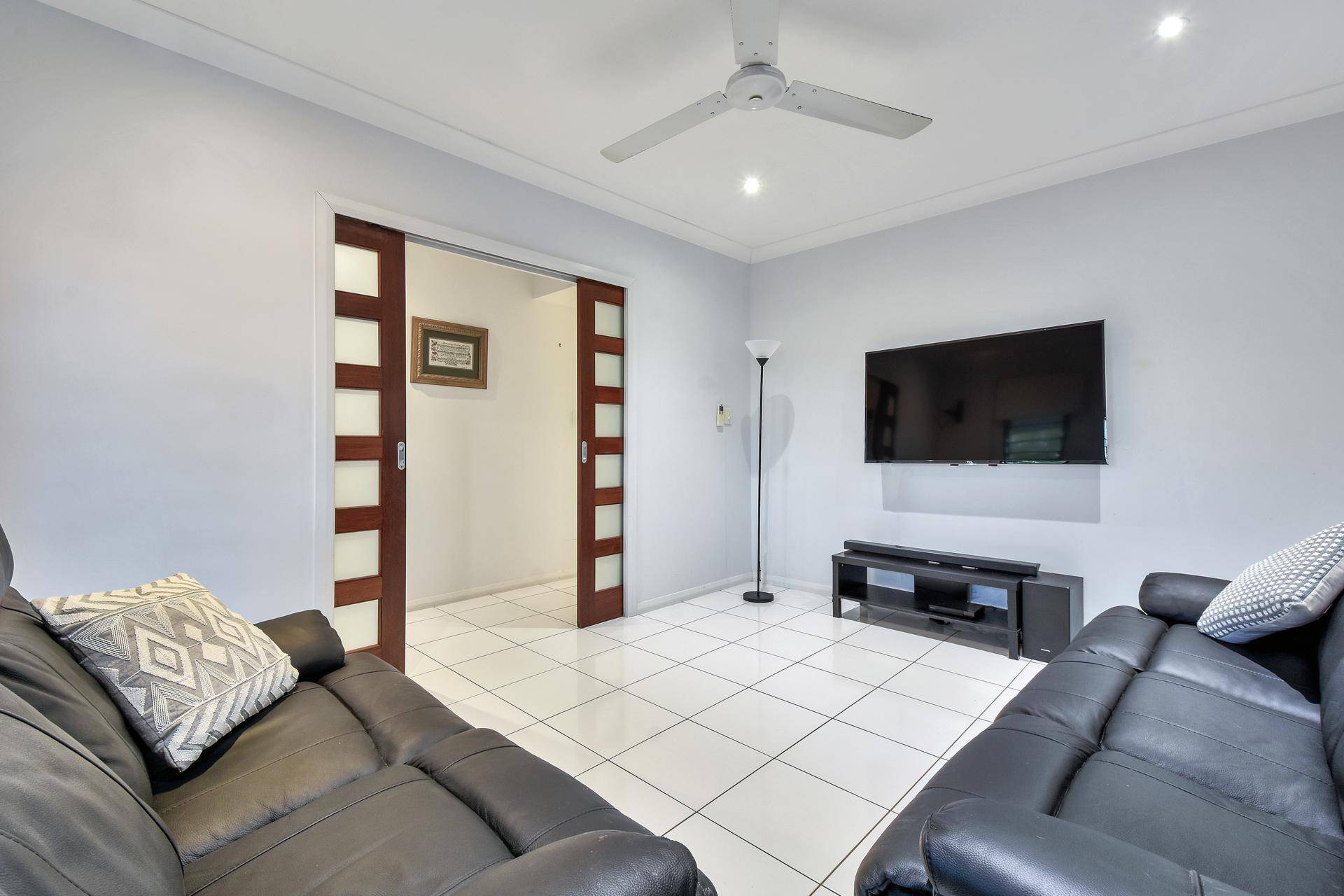 •Media room behind twin opening timber doors, A/C and tiled flooring
