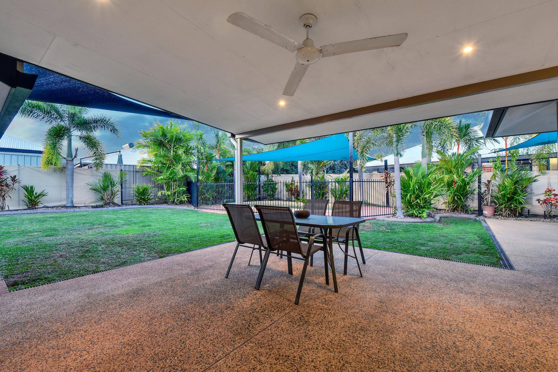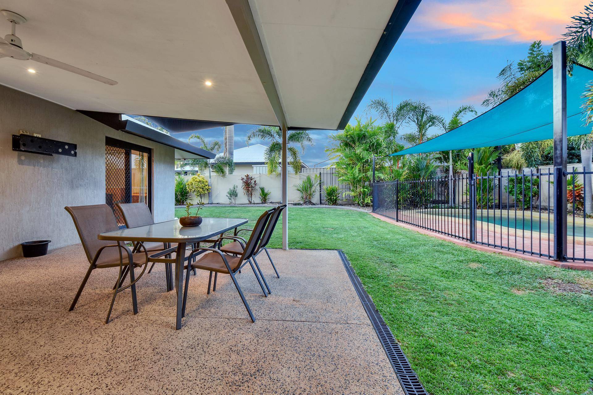 •Large verandah overlooks the in ground swimming pool with shade sail