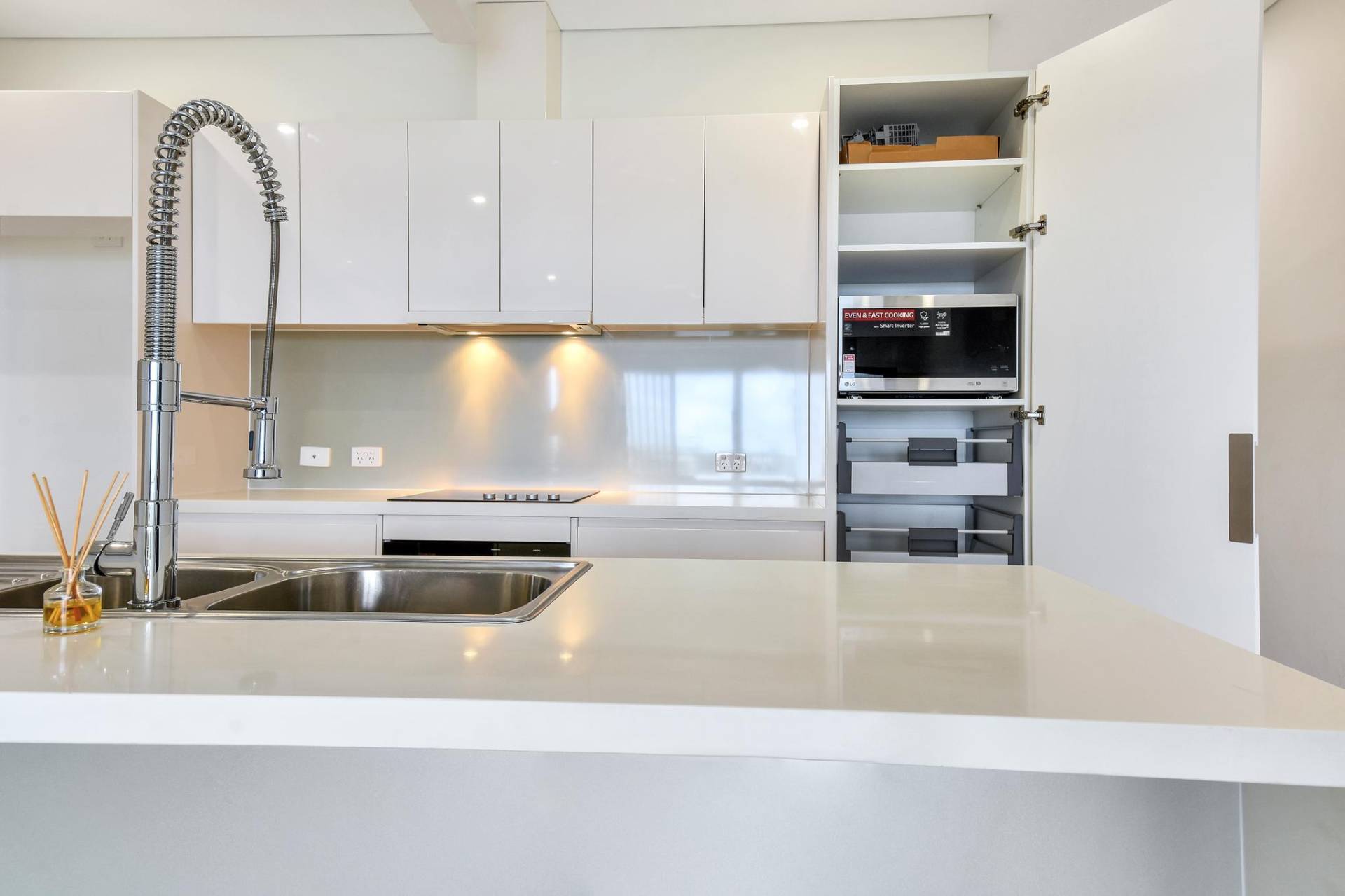Stepping into your apartment, a stylish open plan living space opens onto a large private balcony with spectacular views over Tipperary Waters, Dinah Oval and the Bay. The Kitchen offers stone bench tops, island bar with sink and vegetable washer, quality stainless steel appliances, dishwasher and ample storage space.
