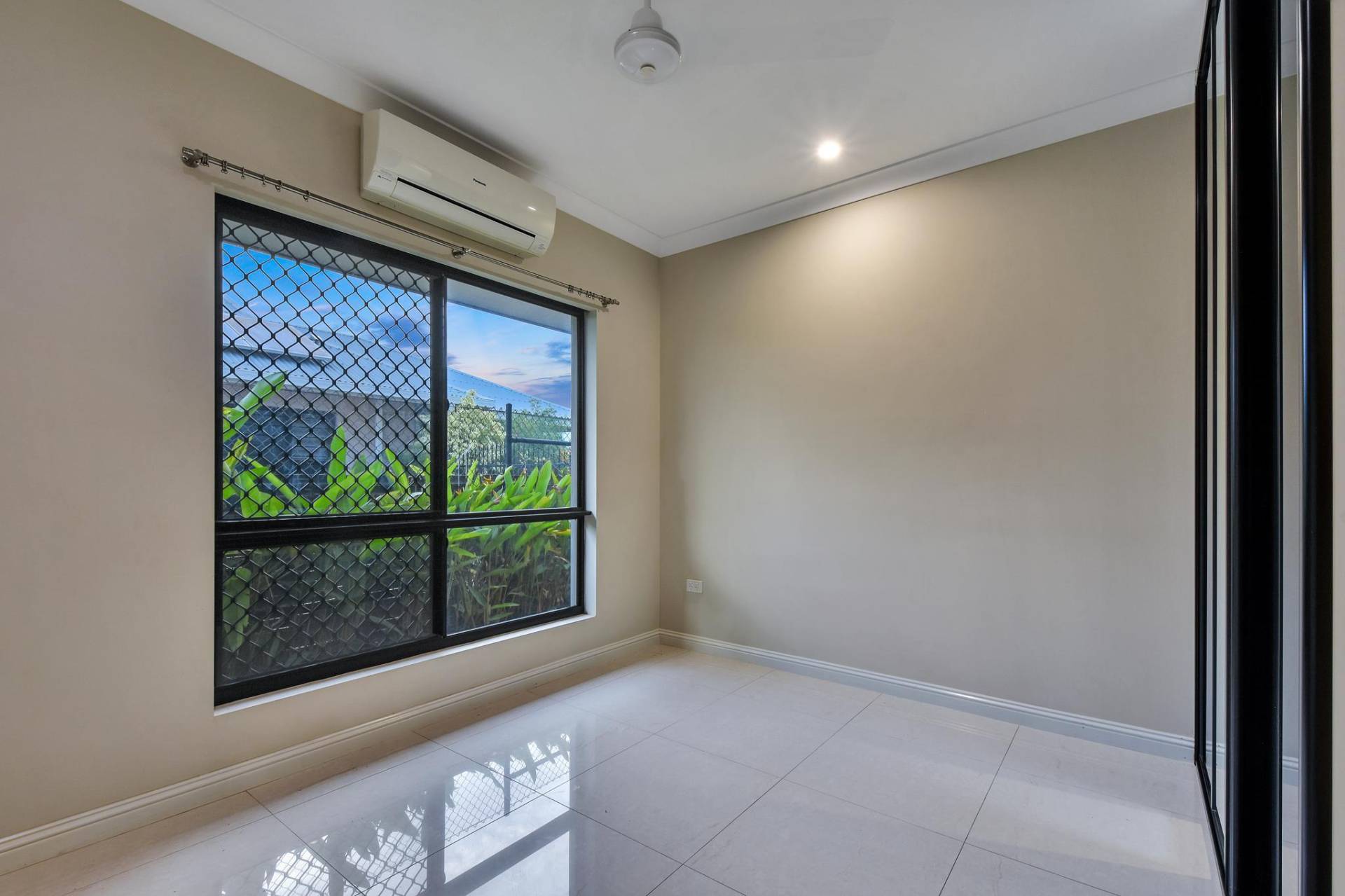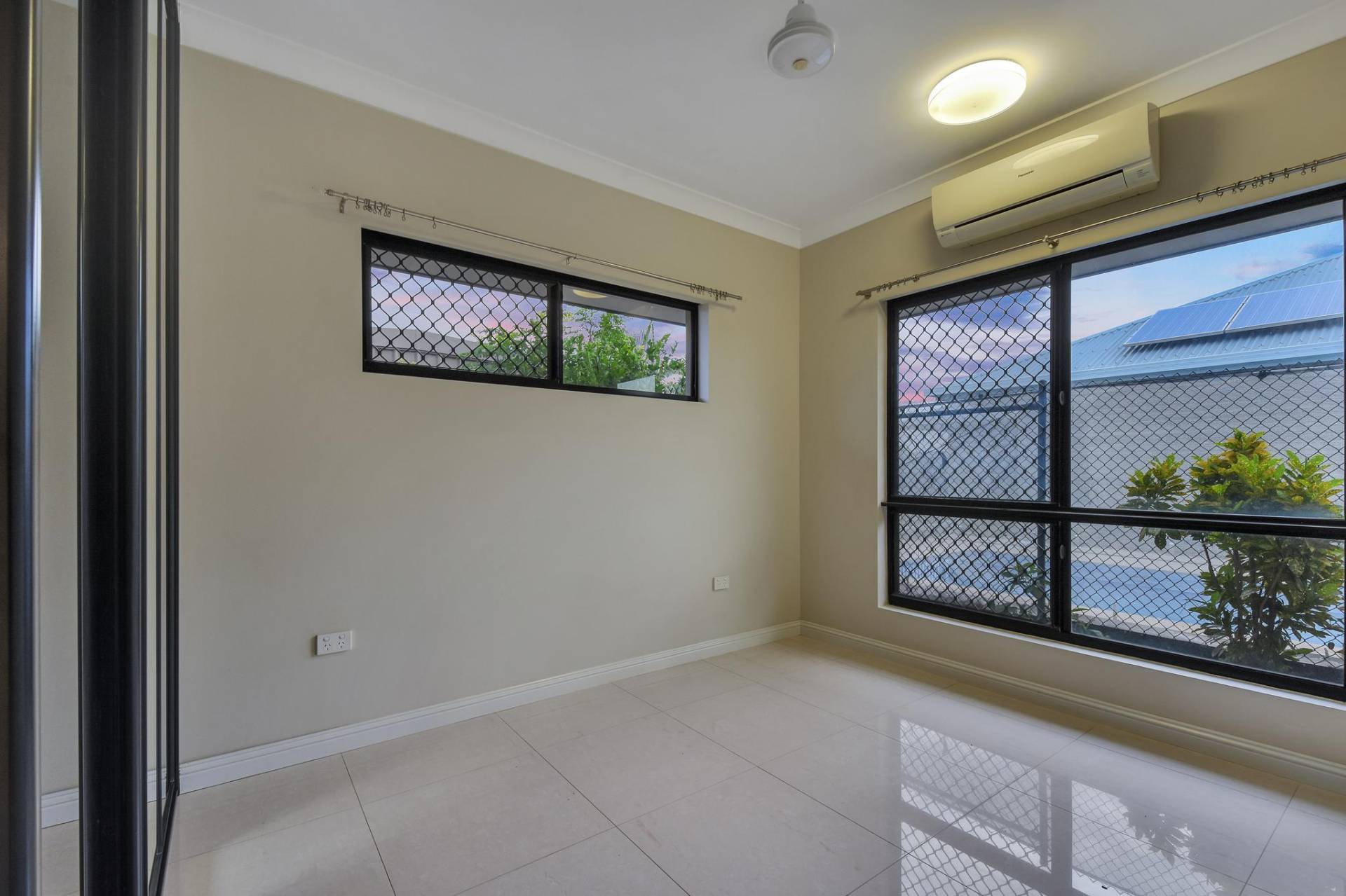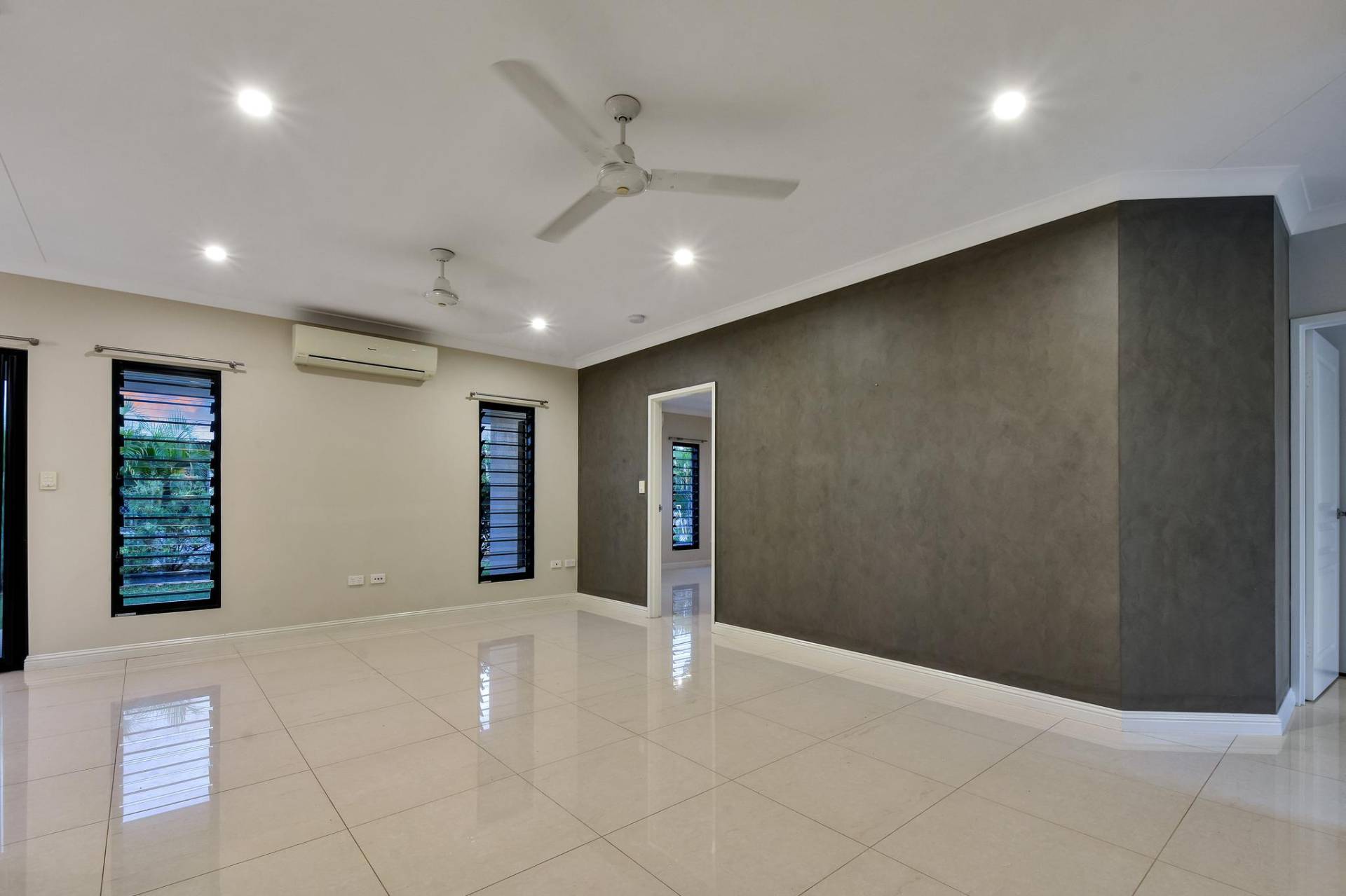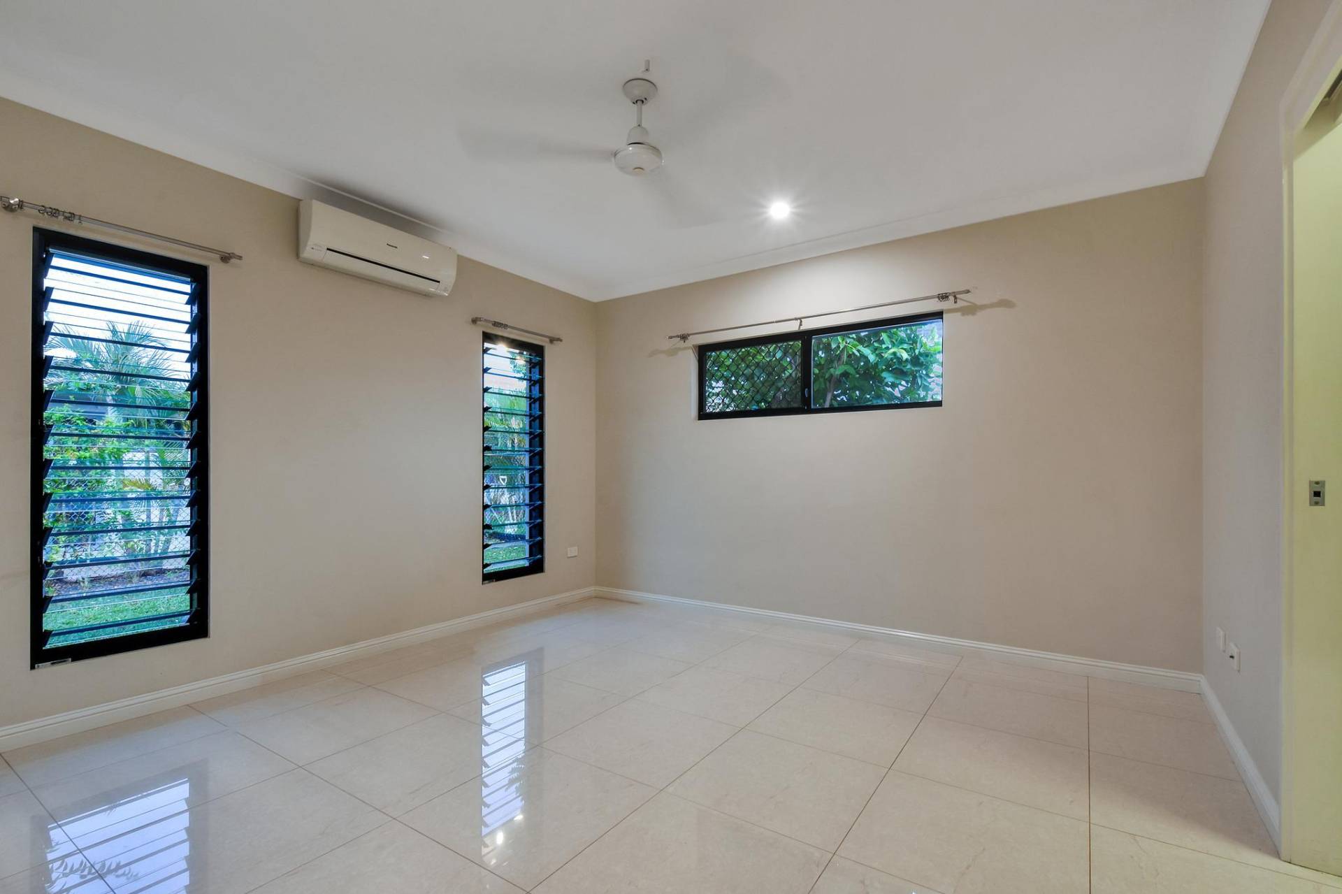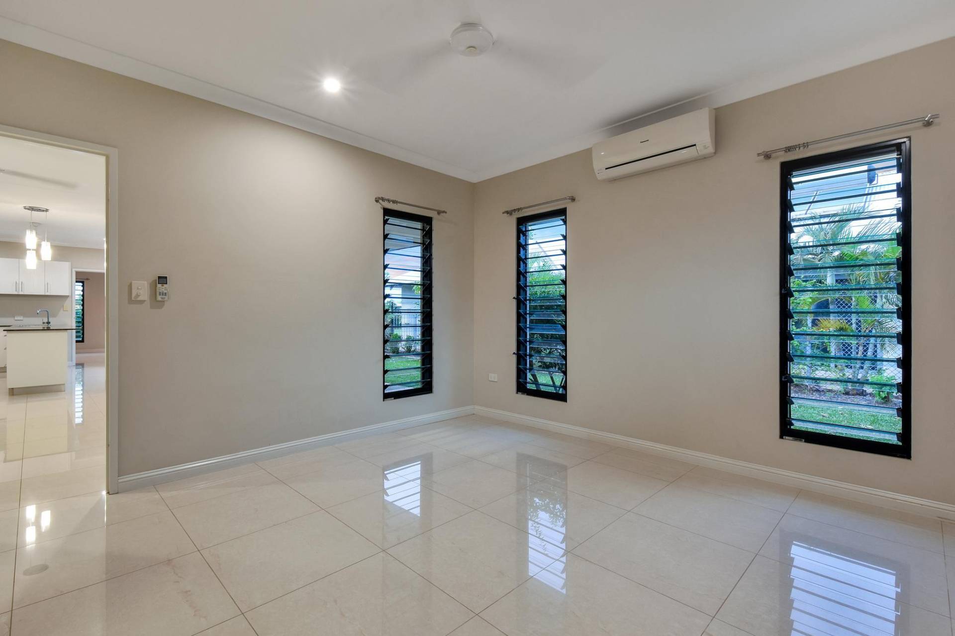 The master bedroom is rear facing for total privacy and offers a generous dual walk in robe and a lux ensuite bathroom along with A/C and tiled flooring and banks of windows to let in the natural light. Bedrooms 2 and 3 each include a modern built in robe and A/C as well.