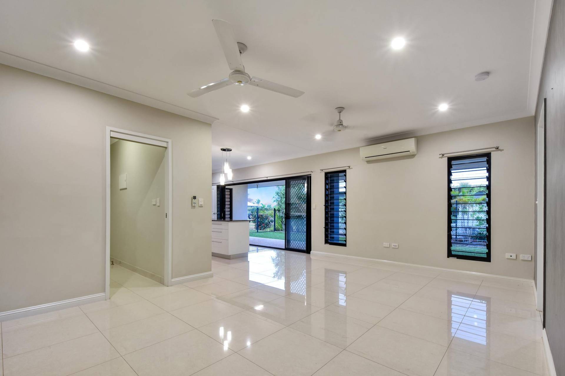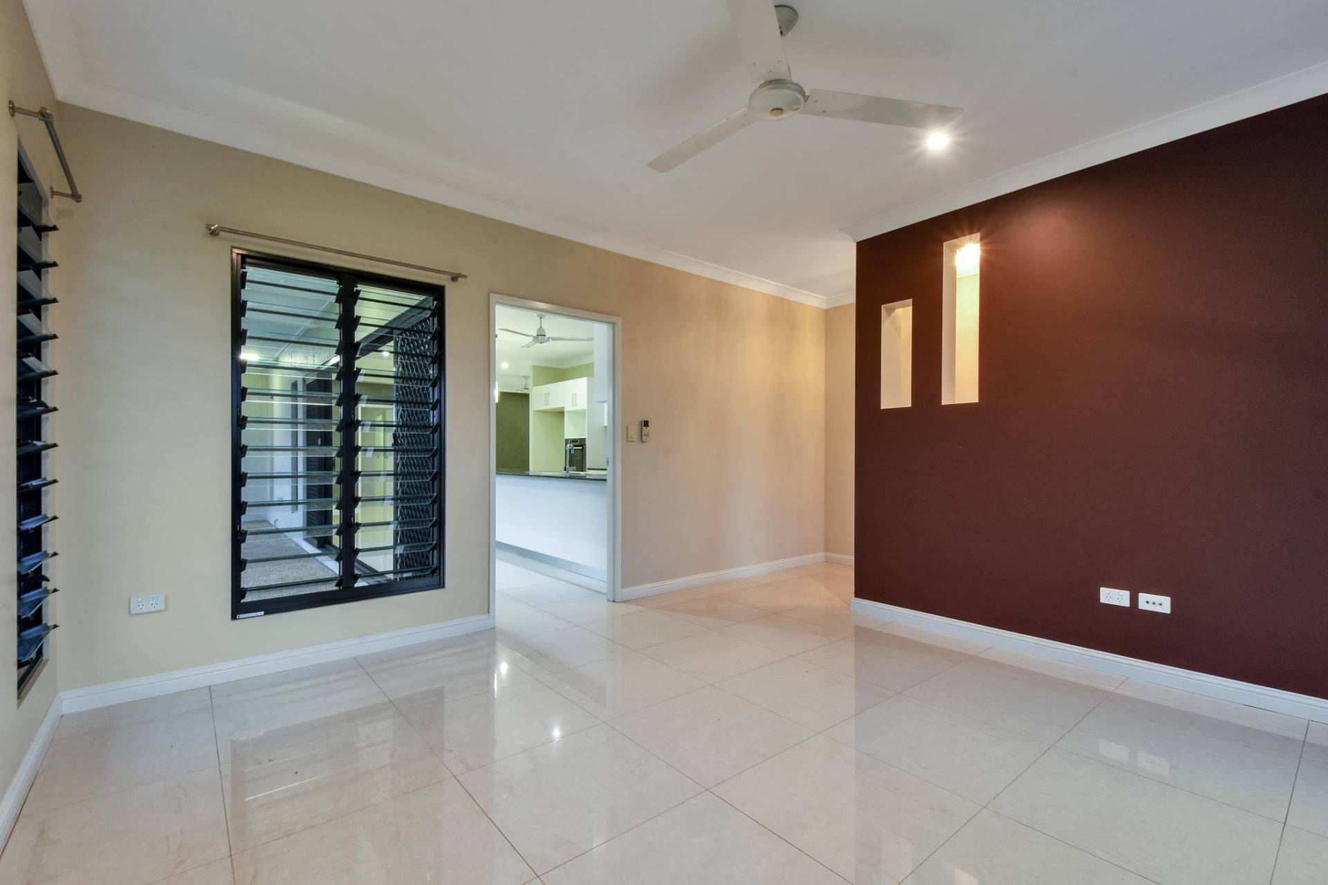 •Open plan living and dining room with tiled flooring and A/C
