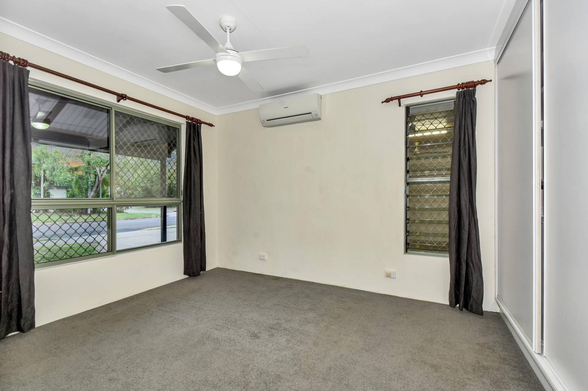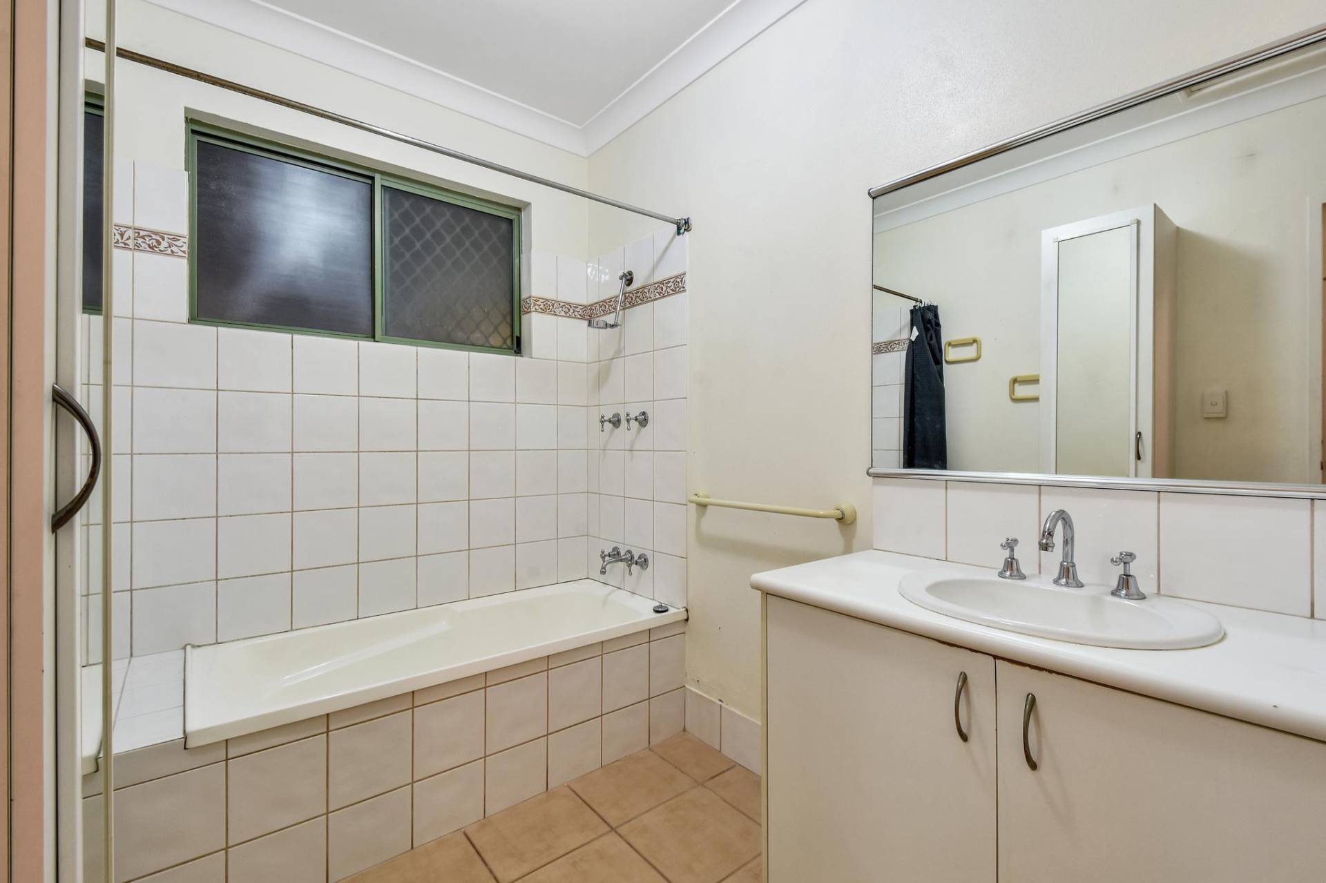 Outside there is space to entertain or unwind with views over the backyard with grassy areas for the trampoline and swings for the kids plus there is a large in ground swimming pool with rockery feature and tropical garden surrounds.