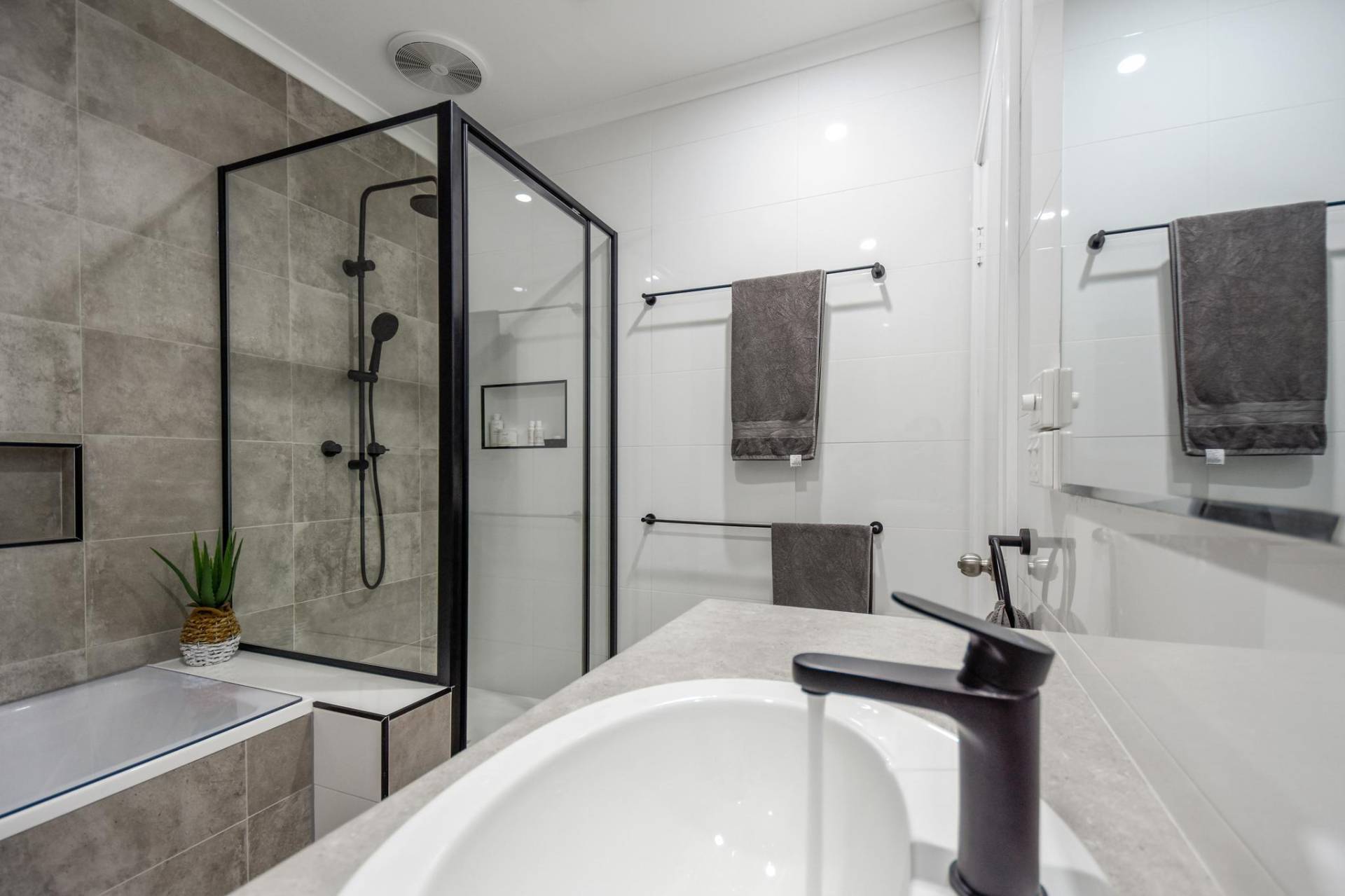 Throughout the home, built in robes and storage all have feature doors that give the home a modern touch. The bathroom is gorgeous with a relaxing bath tub and shower with sep toilet all recently renovated and finished in elegant tones.