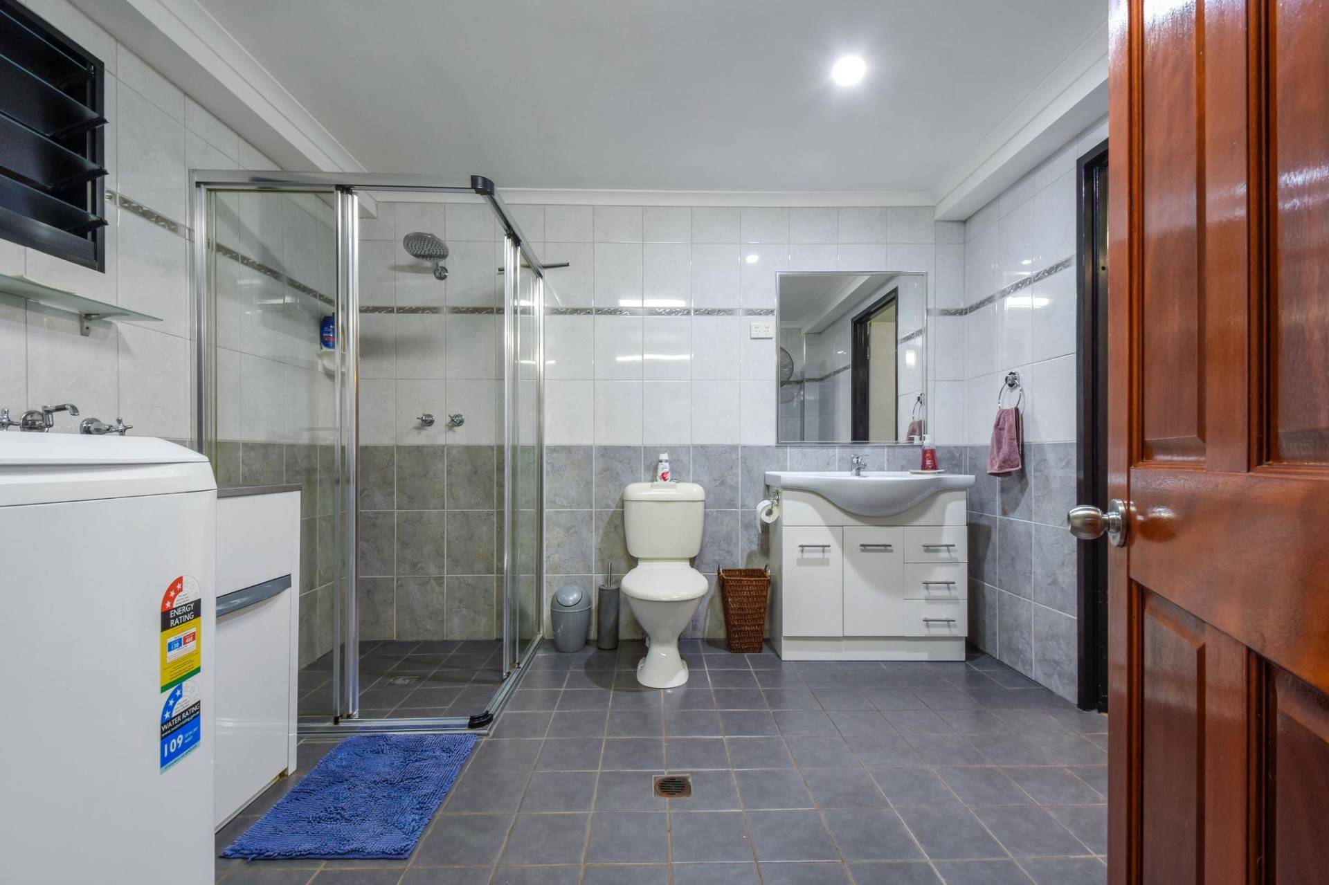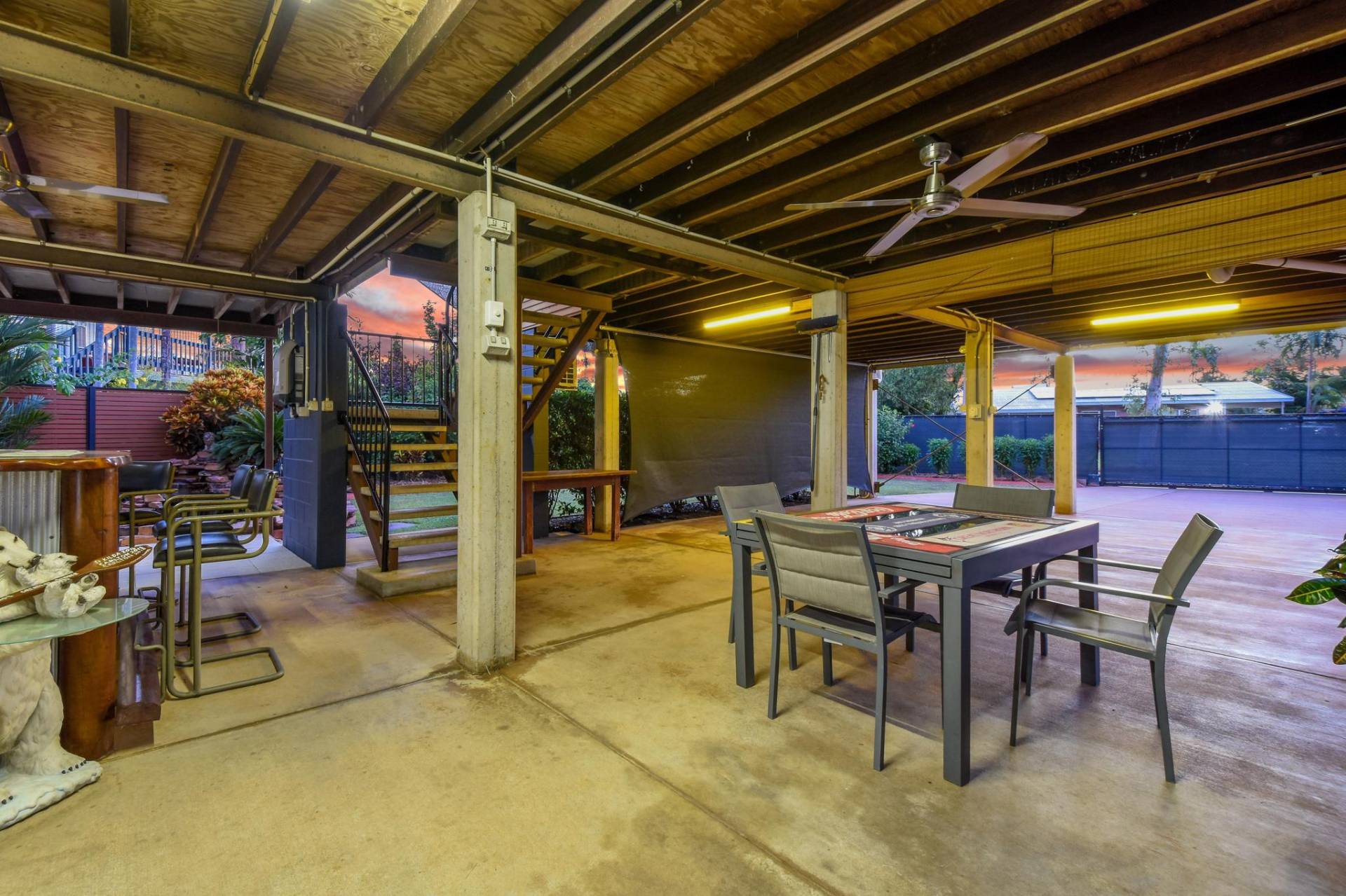 Gated with secure fencing and under home parking PLUS side parking space and a huge shed for the boat and tools, this home sets an impressive first impression. Under the home is a large entertaining area with a built in bar that looks out over the pond with water feature and tropical gardens. There is a full bathroom and laundry room with storage room or cheeky 4th bedroom.