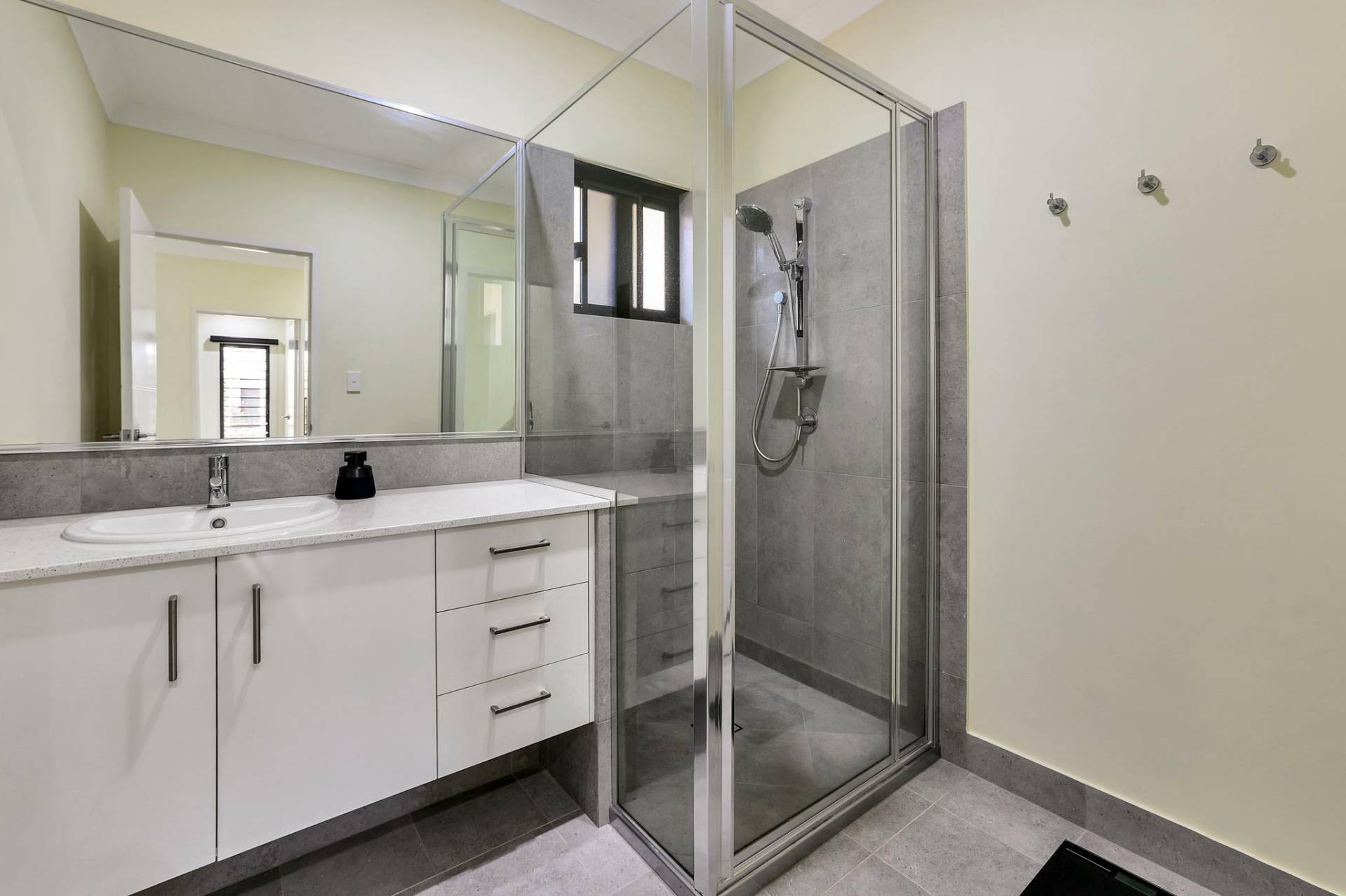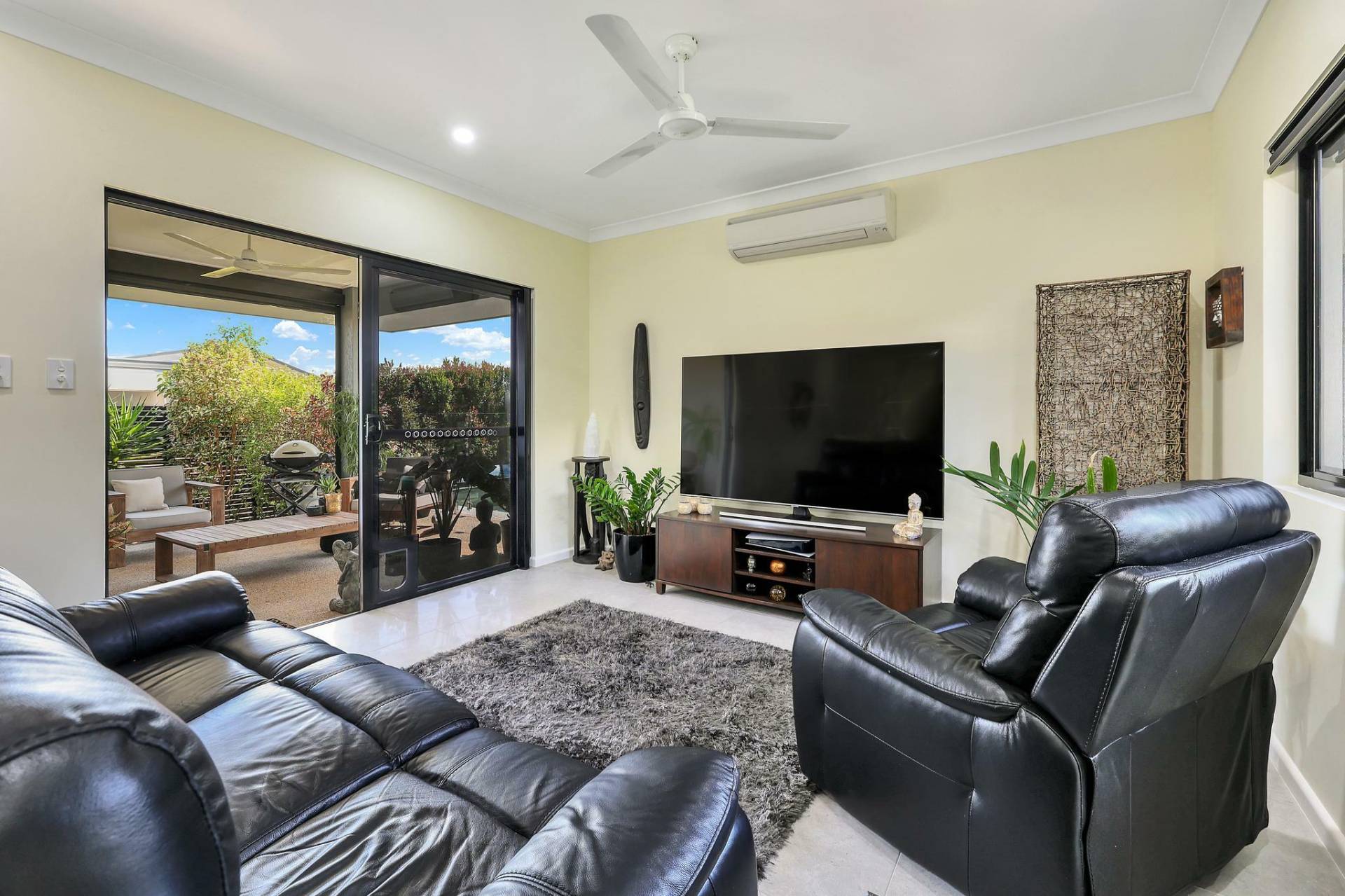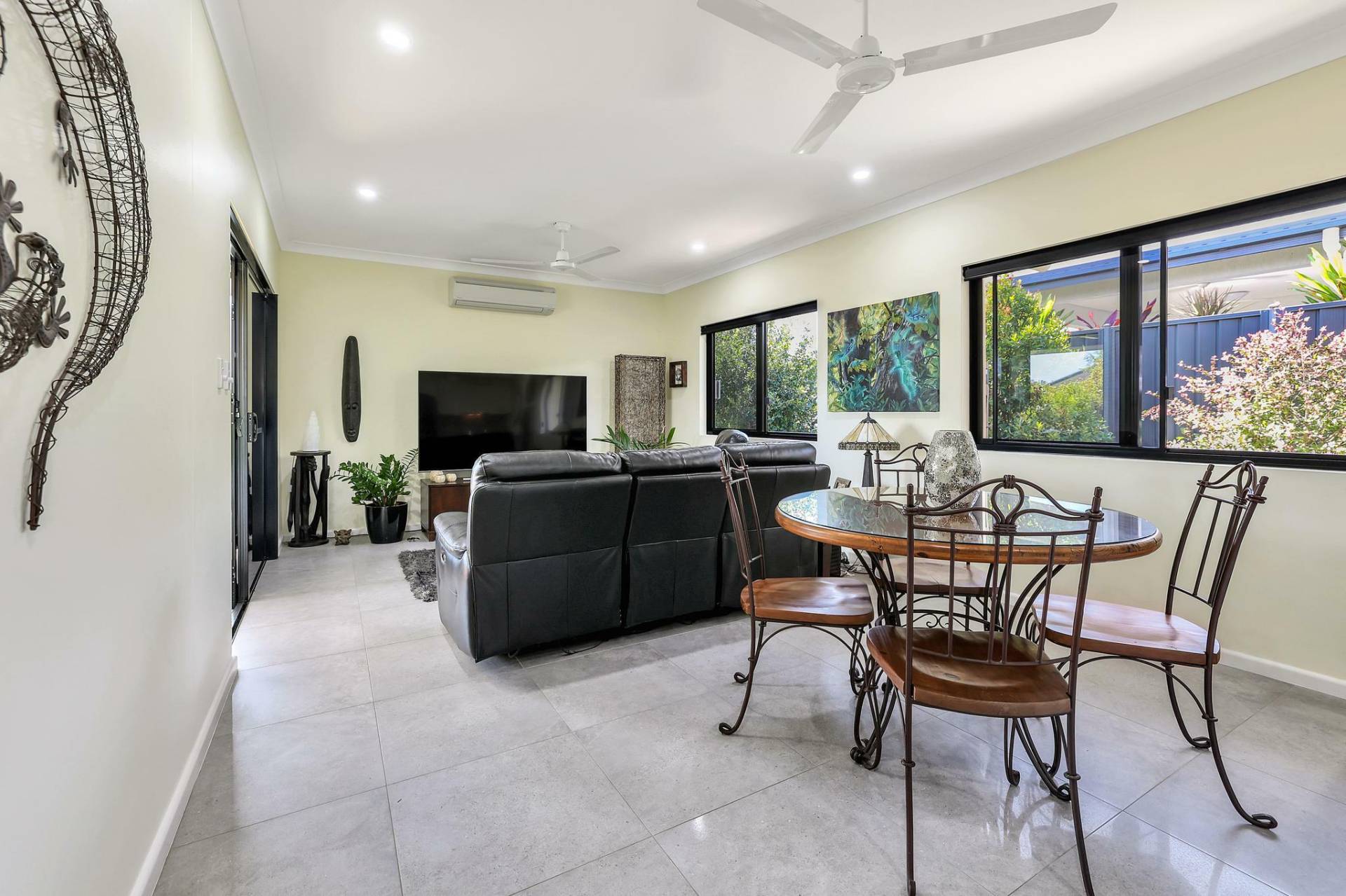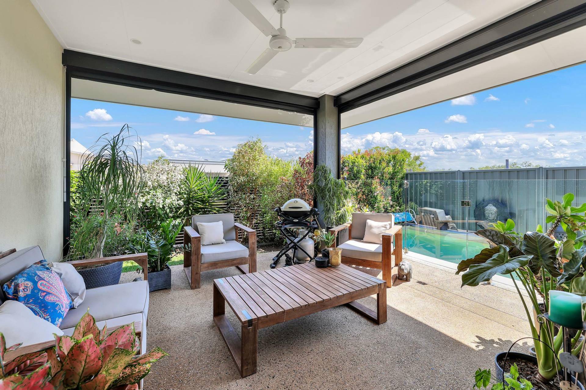 A formal front entry leads through to the hallway that takes you to the living areas at the far end of the home that open via sliding doors onto the verandah with a glass framed swimming pool and lush tropical gardens.