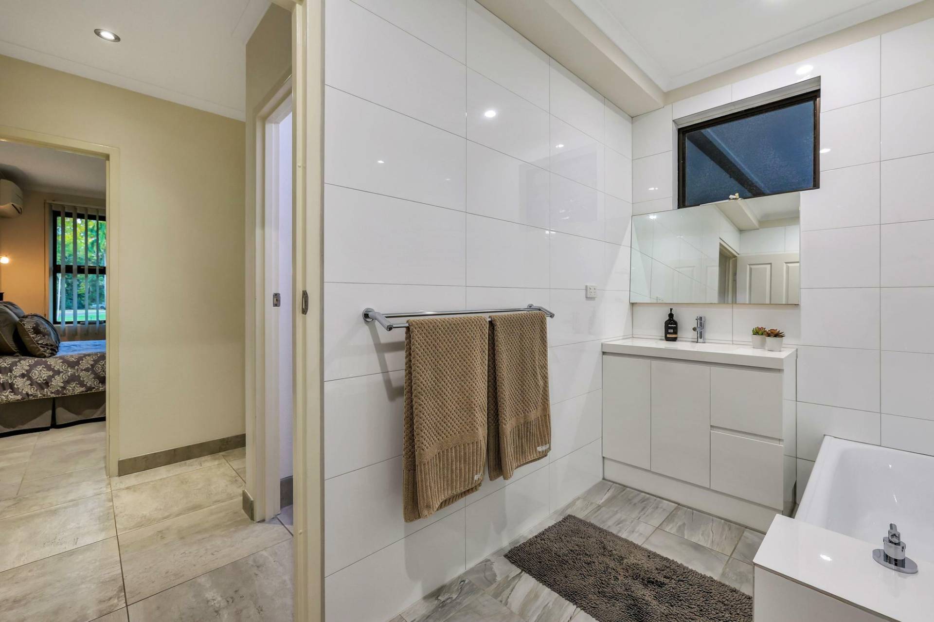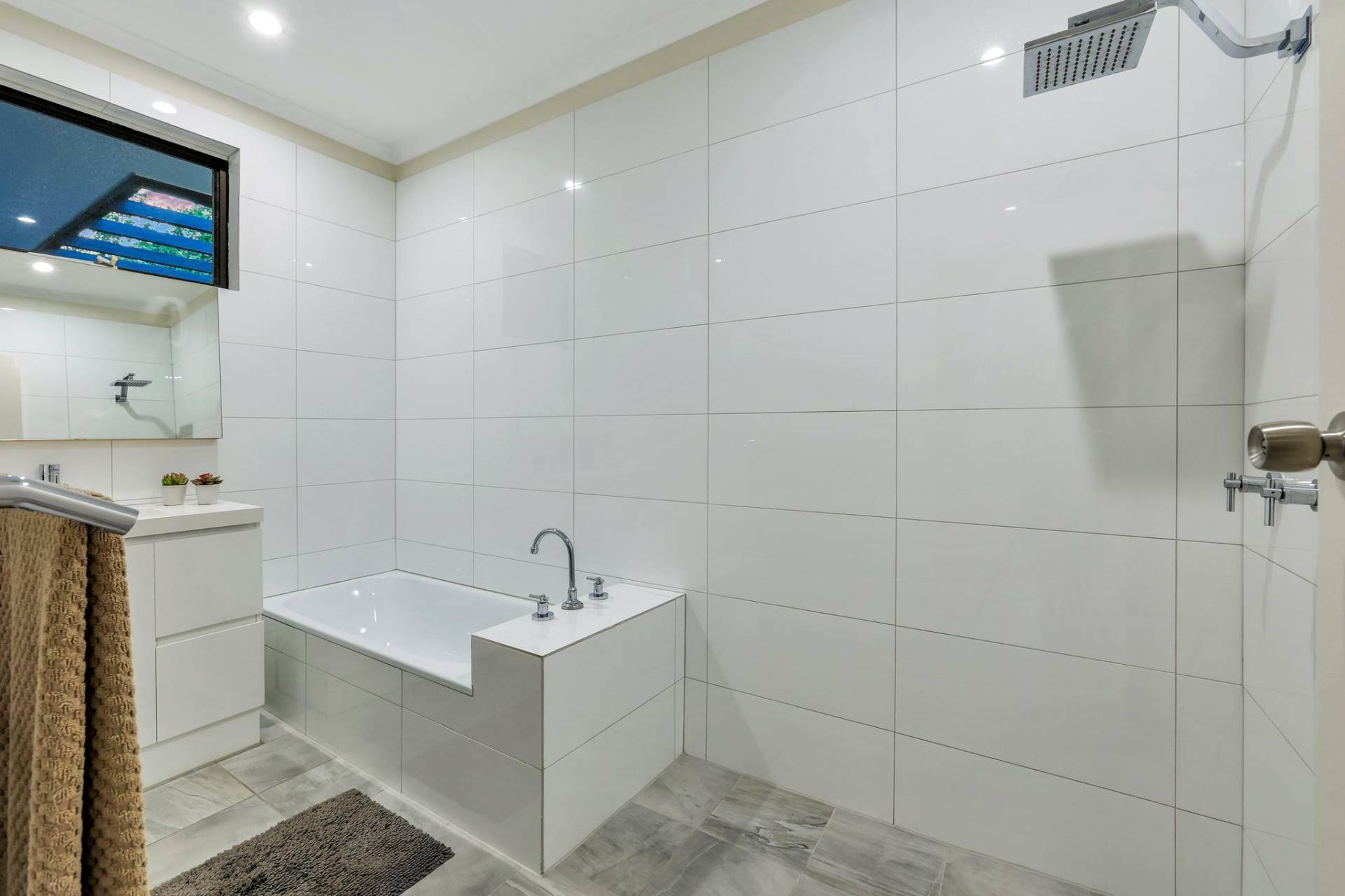 All four bedrooms are well sized and include a built in robe and tiled flooring along with A/C while the master bedroom suite is gorgeous and appointed with a walk in robe and ensuite bathroom finished in modern tones. Even the main bathroom is sleek and modern with a bath tub, shower and sep toilet.