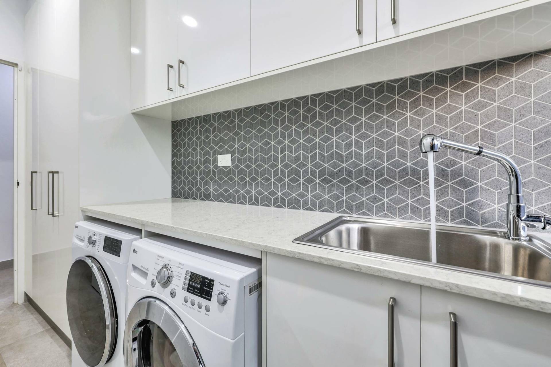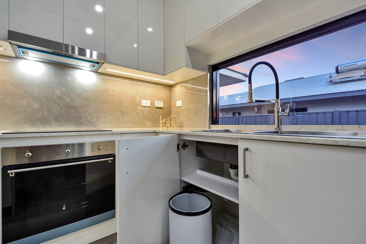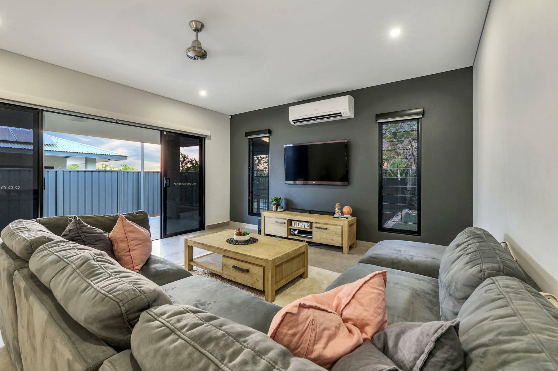 At street level the home is lit up with decorative lighting that can change to suit your footy team colours, birthday parties or just for fun. The front door has a passcode entry and inside even the lights can be controlled and colour changed as well. The irrigation can be run on your phone from the comfort of your couch and you can even tell the blinds to go down by just saying “hey google”.