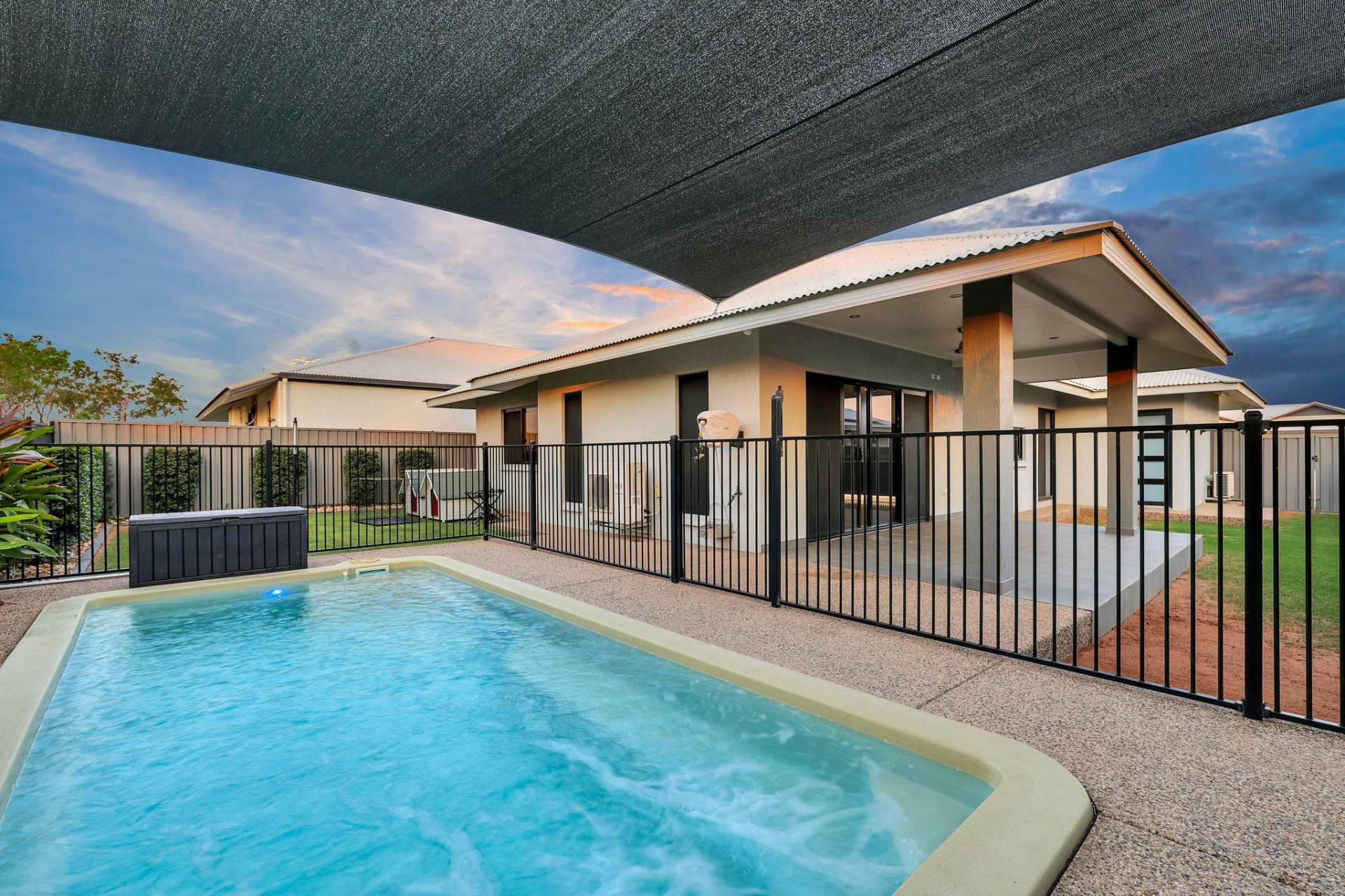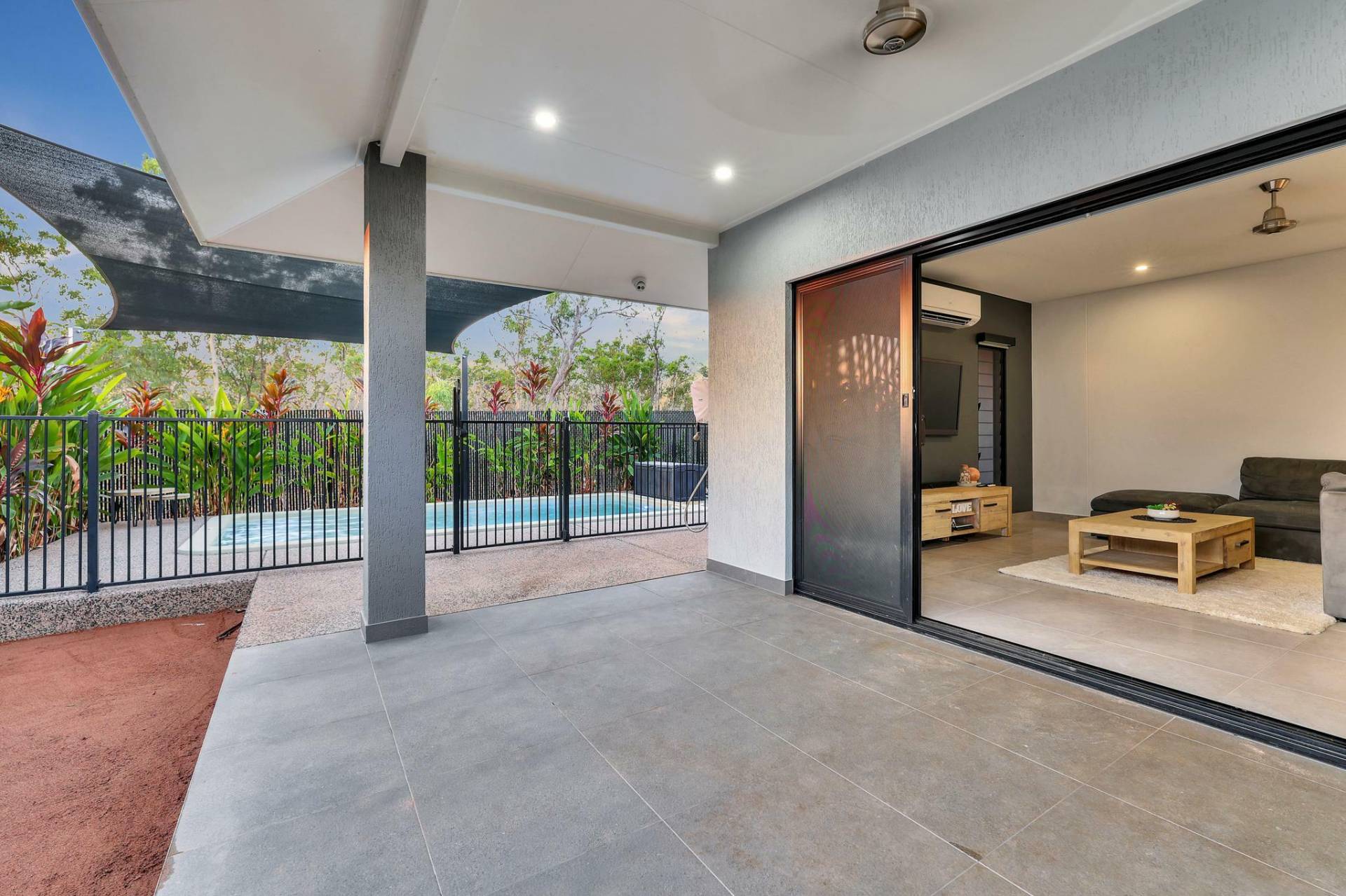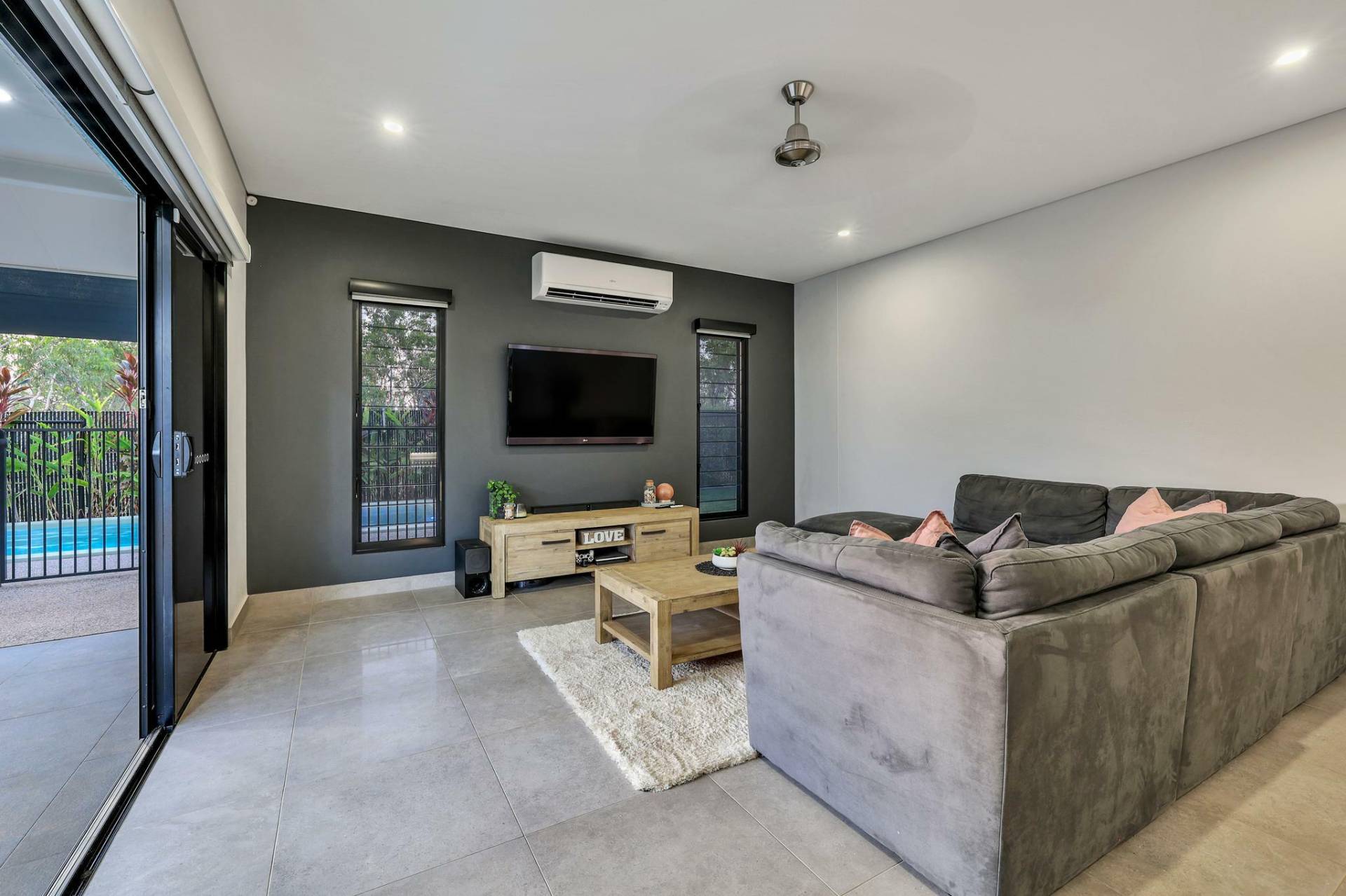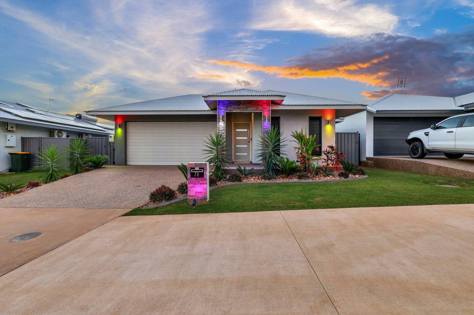 -At street level the home is lit up with decorative lighting that can change to suit your footy team colours, birthday parties or just for fun.