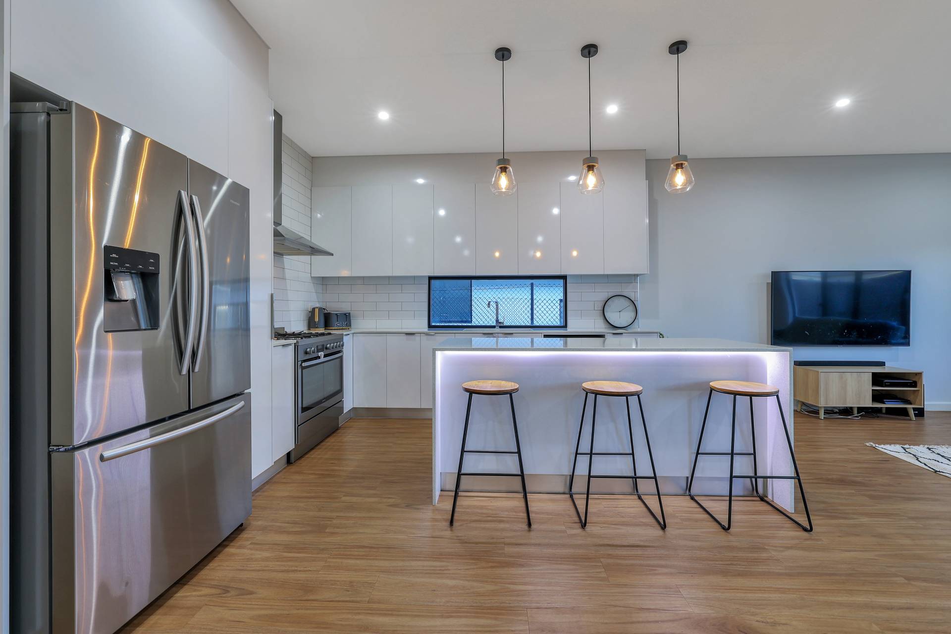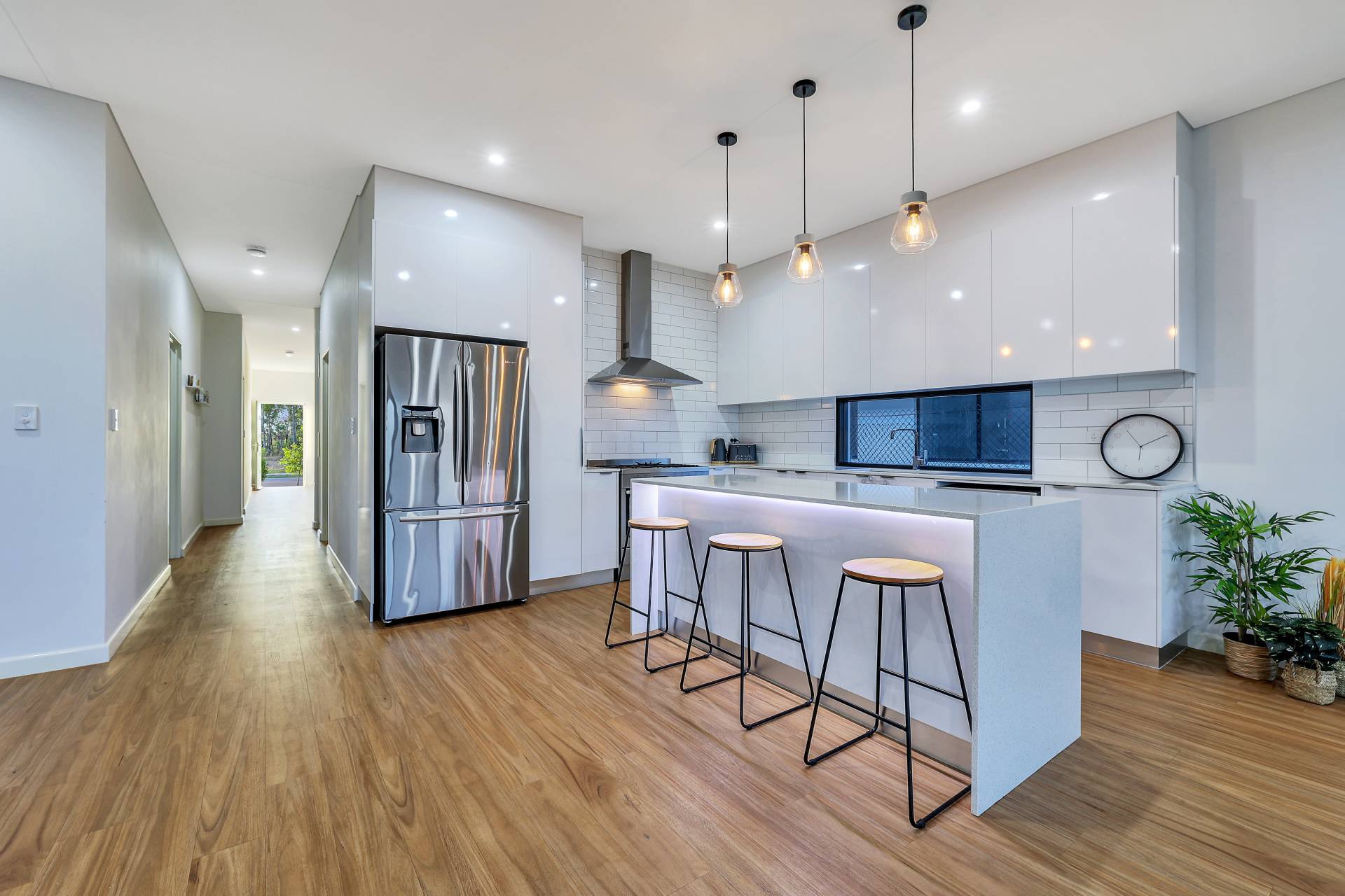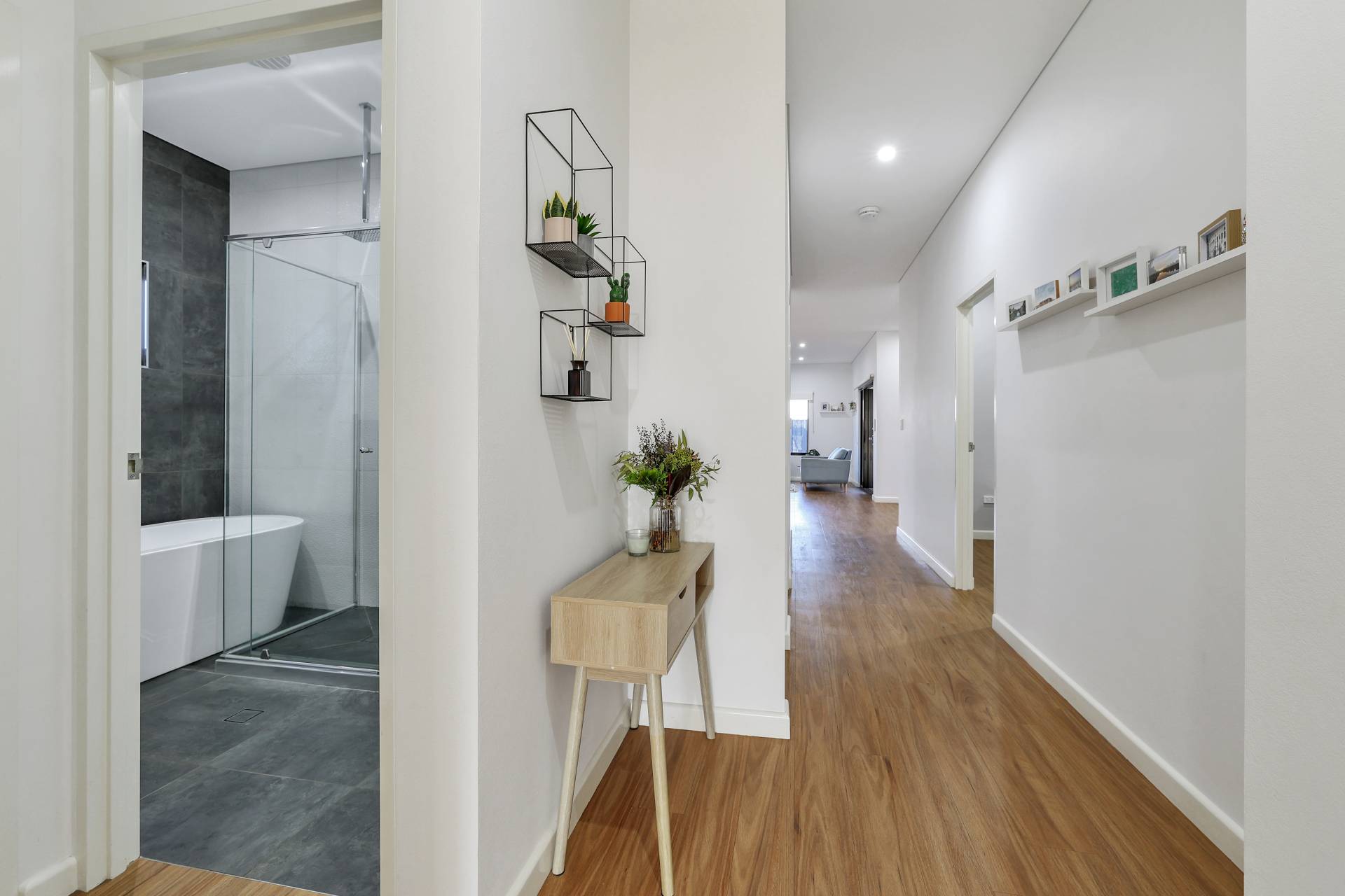 Impeccably presented at the street, the home includes a double garage parking bay which hosts the laundry amenities as well. Within the home are timber look flooring underfoot that runs throughout and creates a warm, homely vibe. The master bedroom is enhanced with a walk in robe and ensuite bathroom while bedrooms 2, 3 and 4 all include a built in robe and A/C as standard. The bathrooms are sleek and modern with a timeless approach.