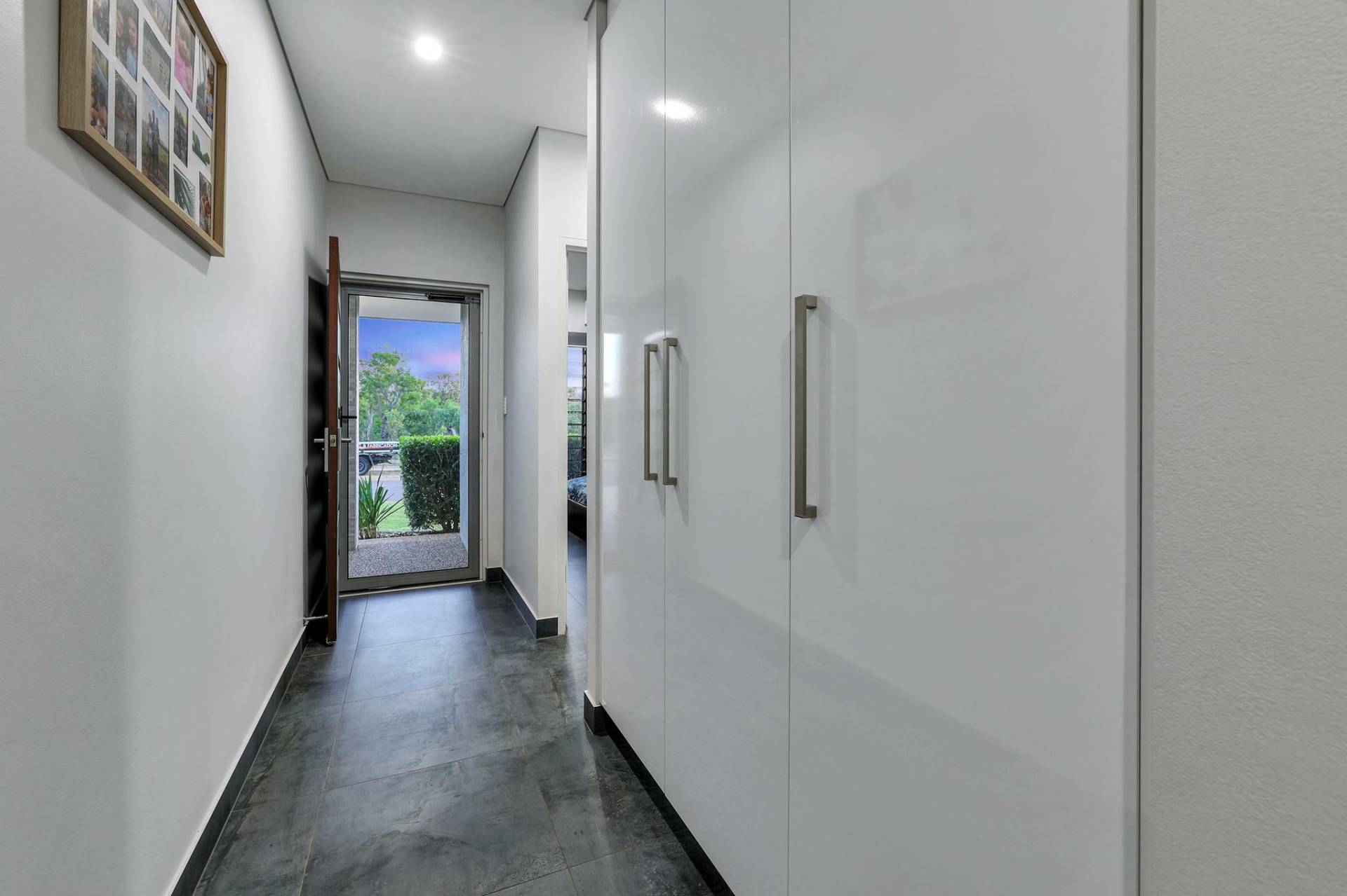 Sliding in the living room open to showcase the verandah and big back yard with easy care gardens and loads of lawns for the kids and pets to play. The home is positioned opposite to a native bushland belt and nearby to parklands with play areas for the kids as well.