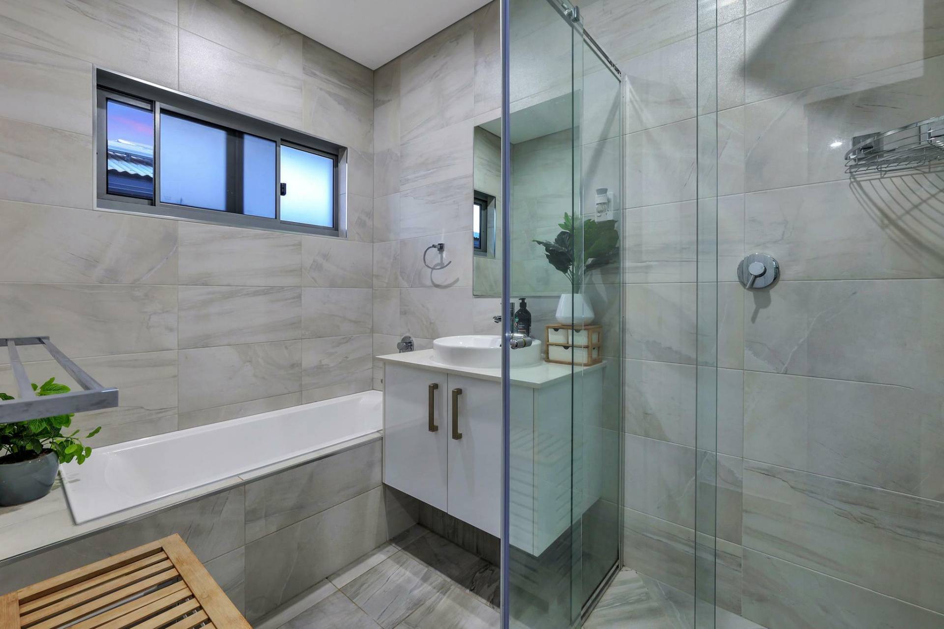 Inside is a front facing bedroom 3 with garden views, bedrooms 2 and 3 both have a built in robe and tiled flooring while the master is rear facing with a walk in robe and ensuite bathroom. The main bathroom offers a relaxing bath tub and a shower along with sep toilet.