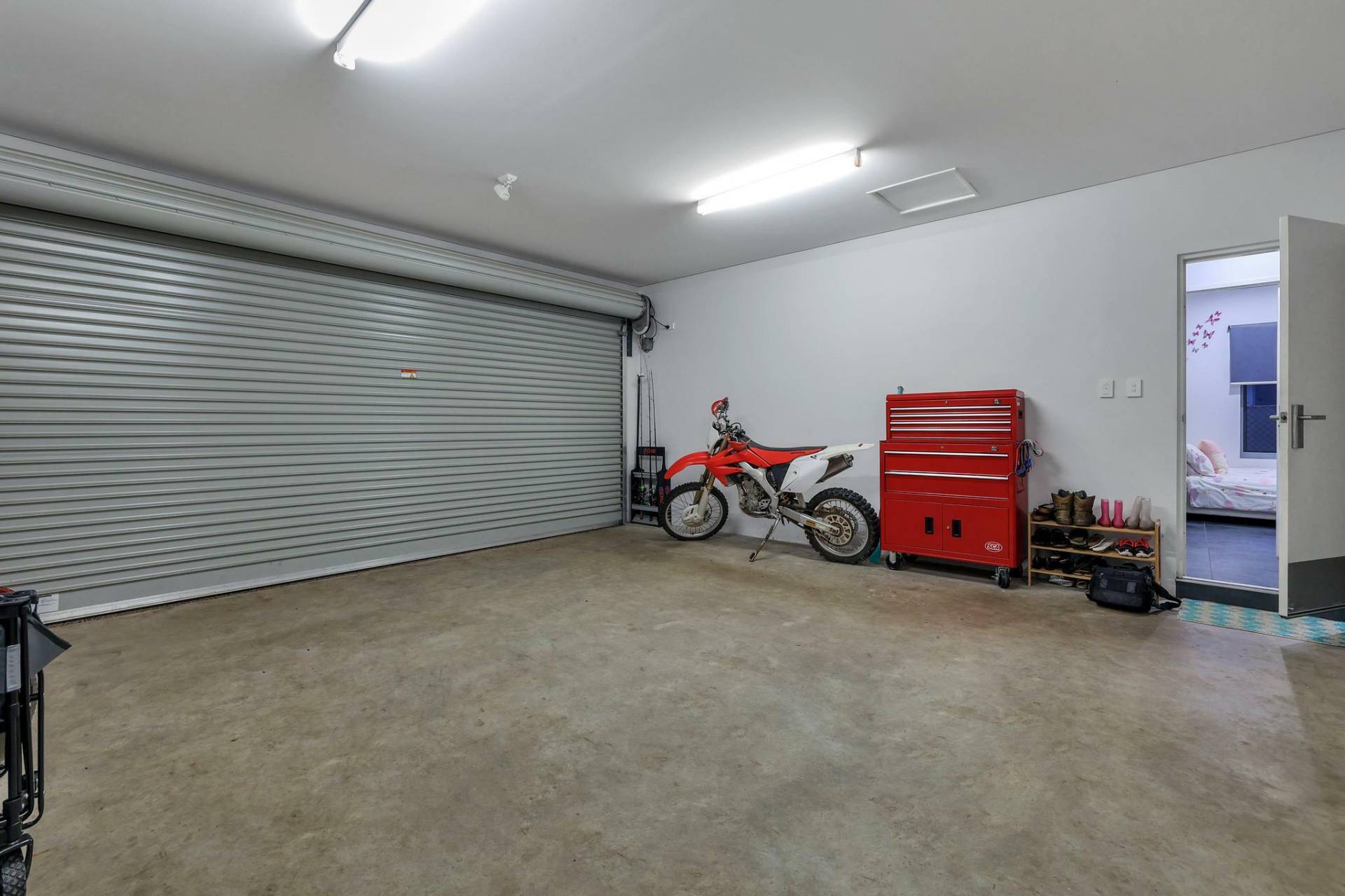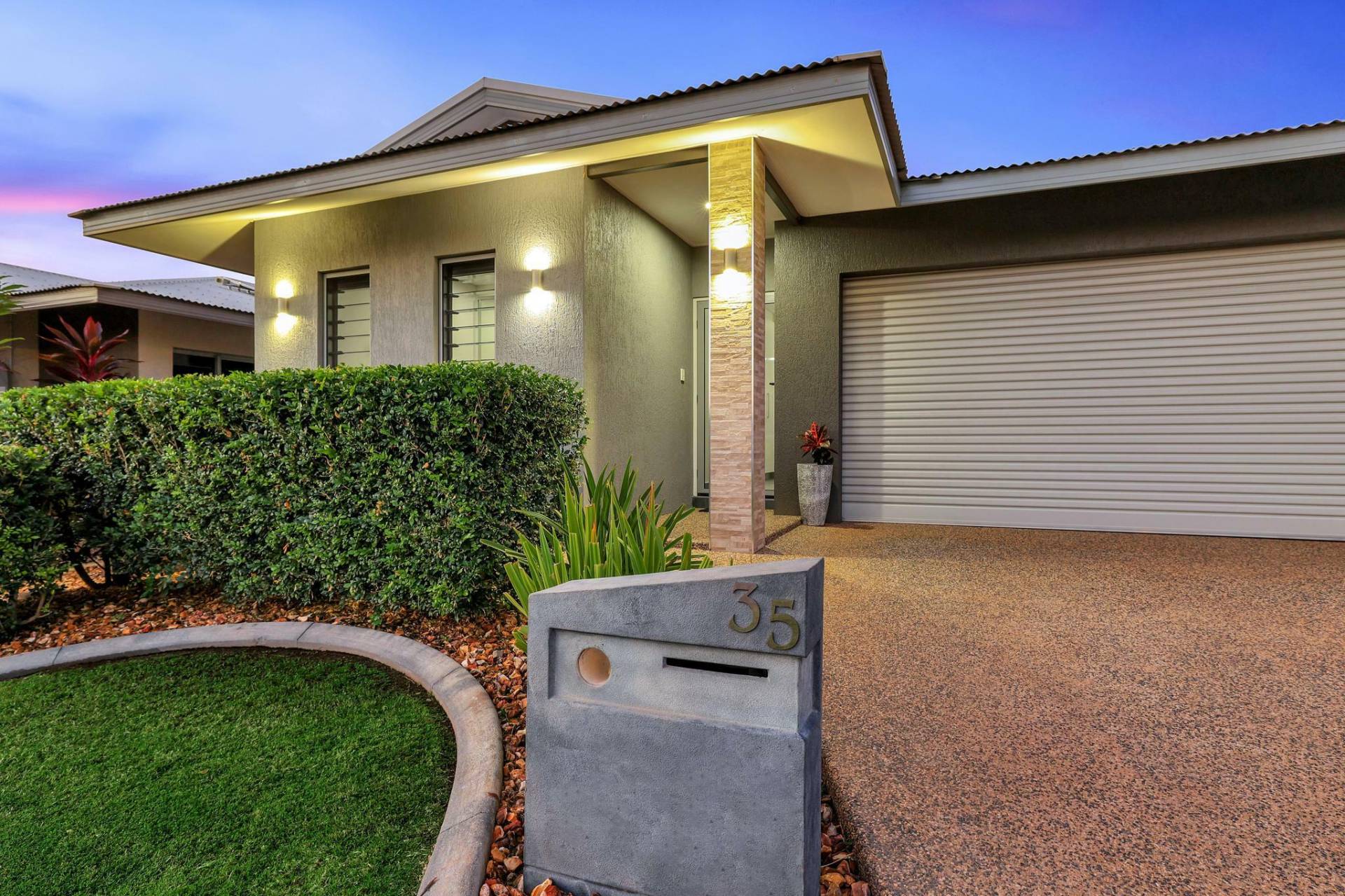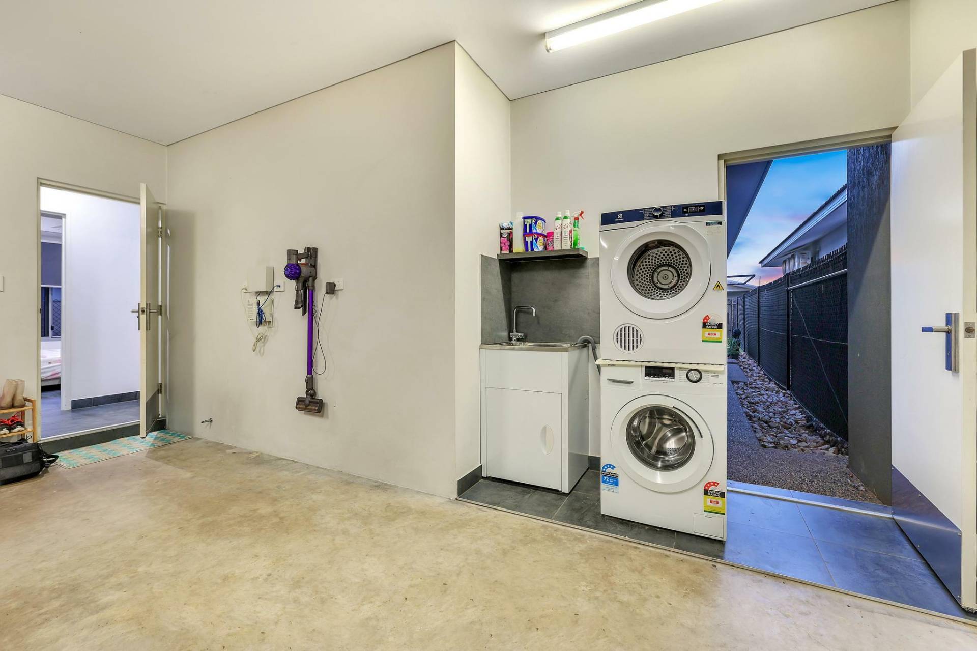 Across the face of the home is a manicured lawn with irrigation and a trimmed formal hedge, feature lighting on the façade spills light over the home creating a welcoming atmosphere. There is garage parking for two with the laundry amenities hosted within.