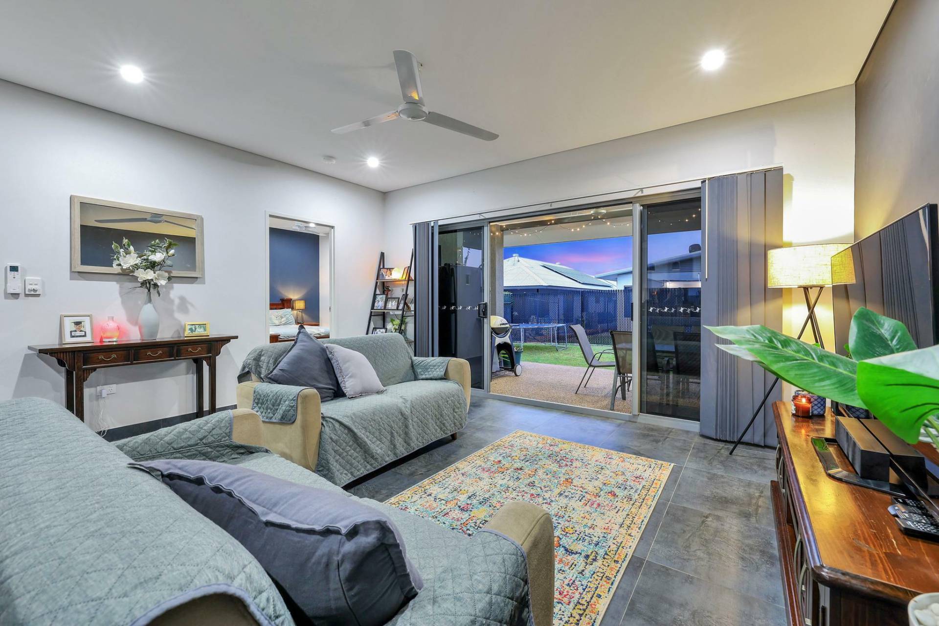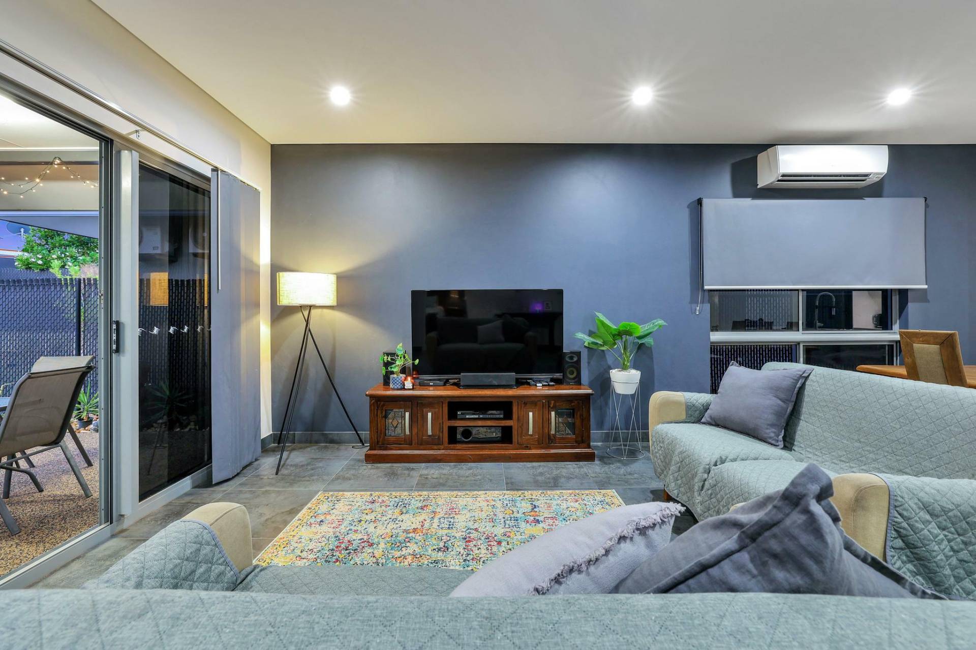 Finished with modern touches in warm tones, this immaculately presented home feels calm and relaxed with ambient lighting and dark tones on the floors; this solar powered home is a soothing escape perfectly set up for the family or couple.
