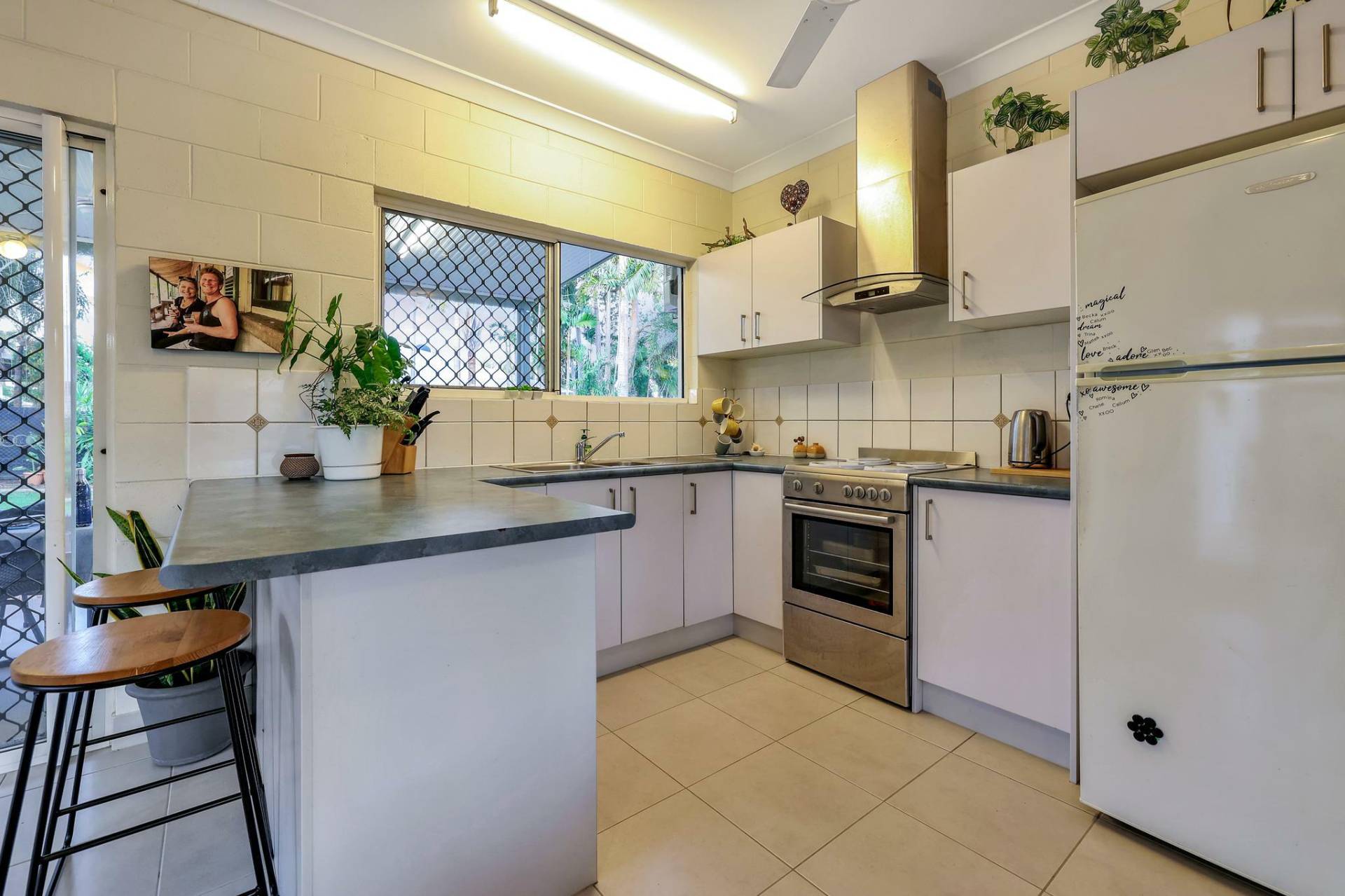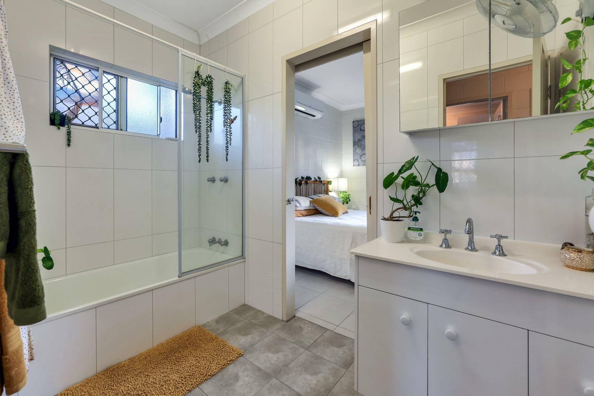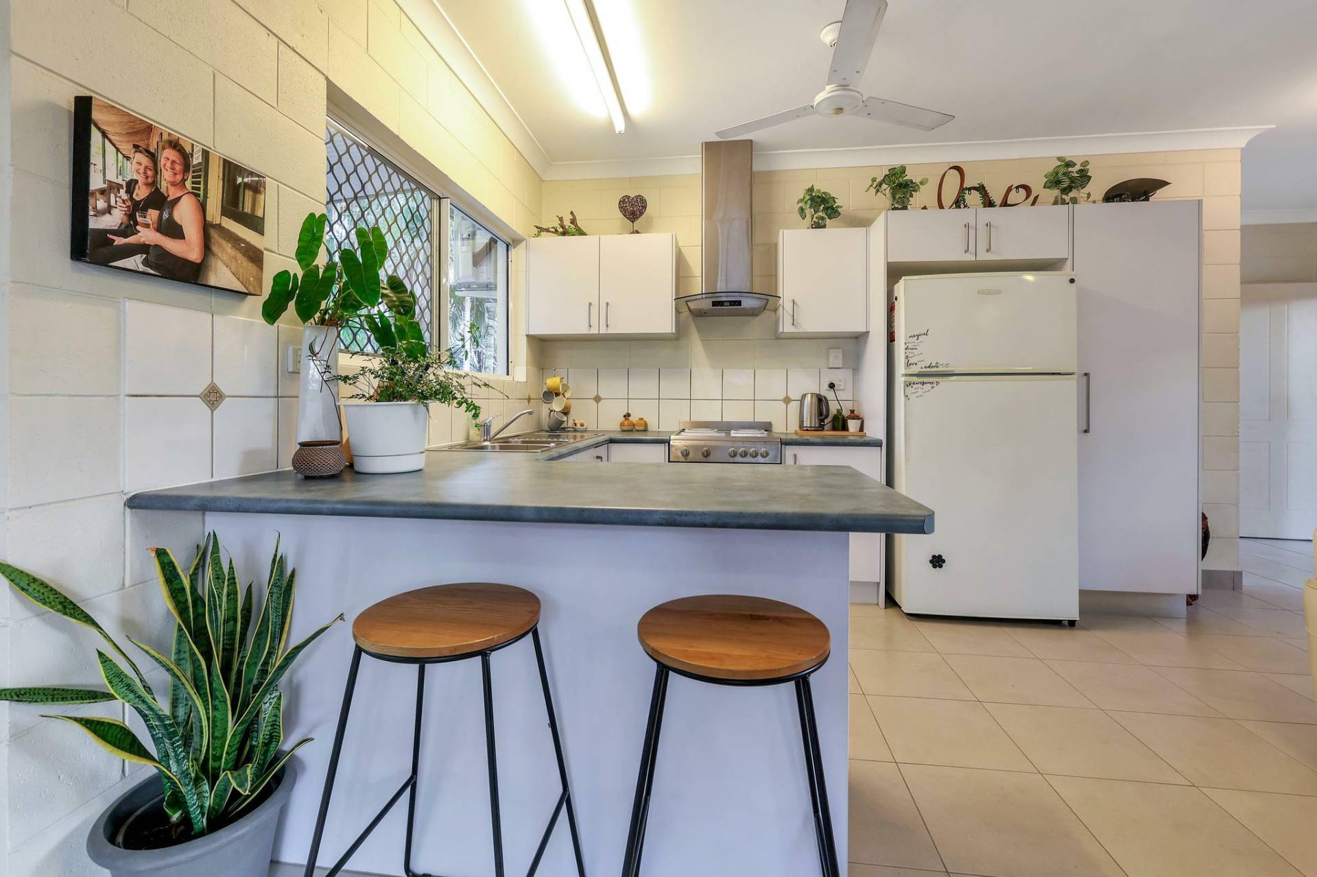 Outside, the verandah spans along the back of the home overlooking the enormous backyard with easy care tropical gardens that are thriving offering both shade and privacy. There is a garden shed for the tools along with a fire pit area and gravelled parking space. The laundry is sheltered on the verandah as well.