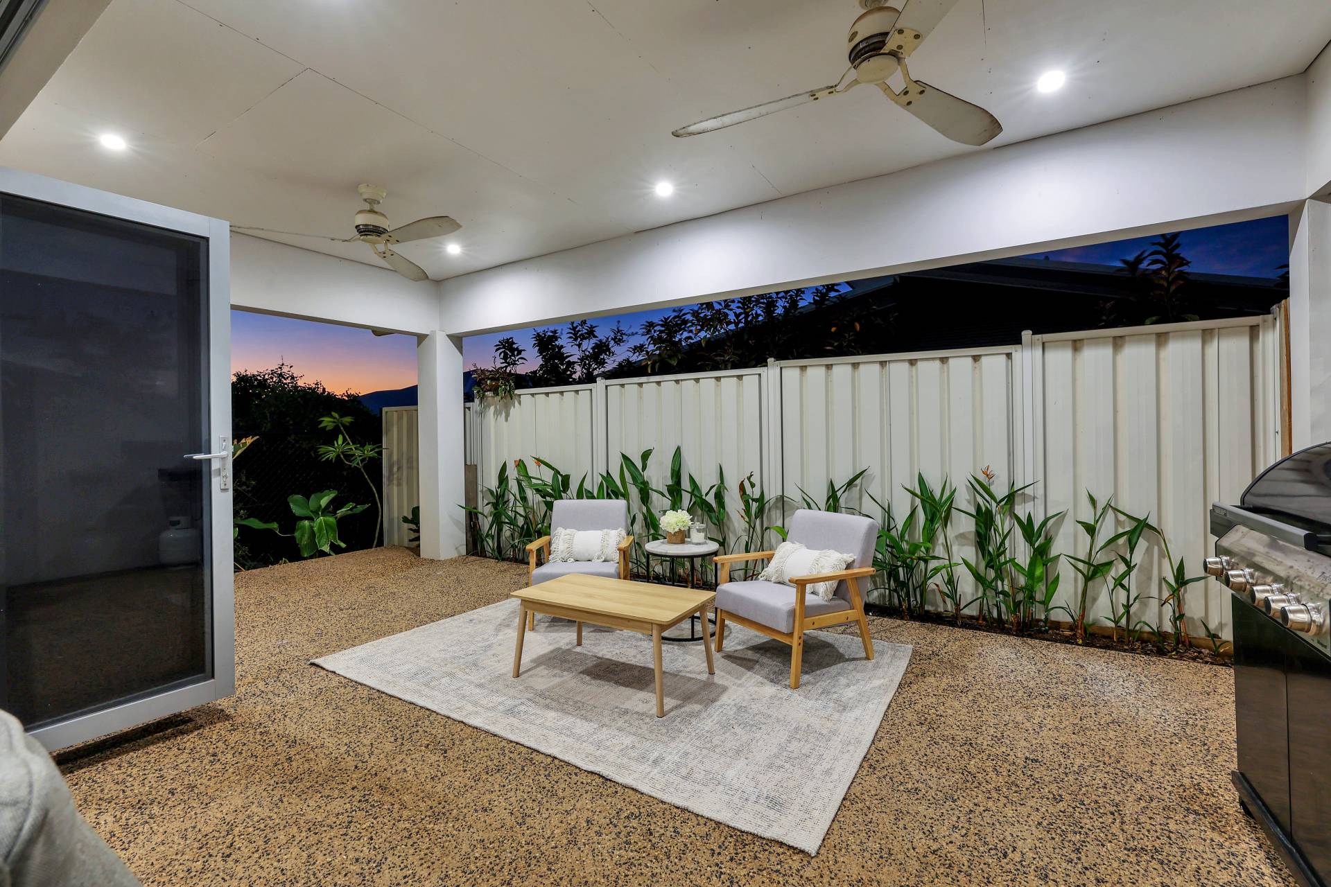 Open plan living and dining areas are spacious and well designed with a wall of bifolding doors at the far end that open onto the private courtyard entertaining area with easy care tropical gardens lining the good neighbour fencing that offers total privacy to this outdoor space.