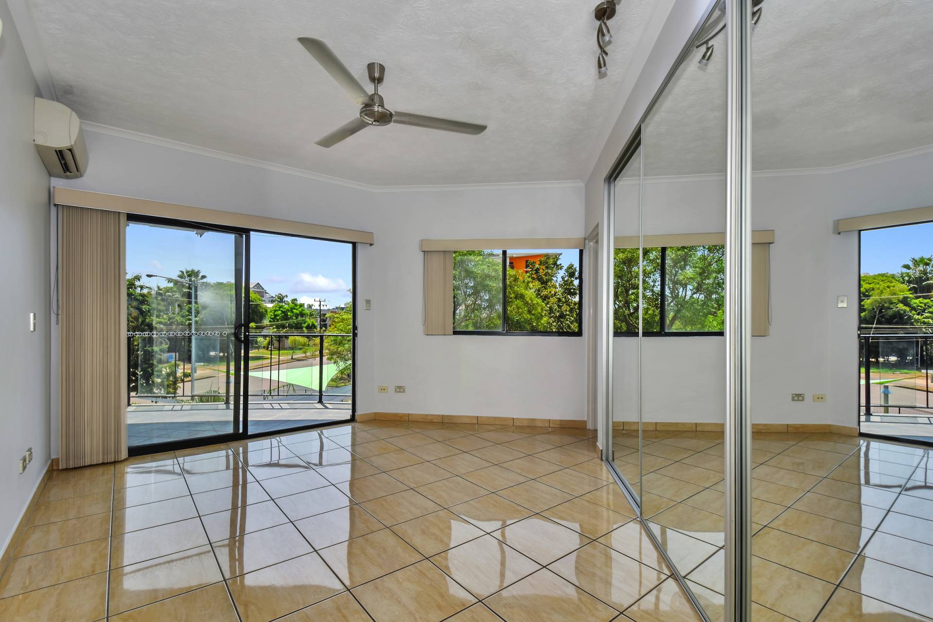The master bedroom is front facing and enjoys parklands views from the sliding doors that open onto the verandah. This bedroom also includes an ensuite bathroom while two other bedrooms each have a BIR and tiled flooring along with A/C and a fresh coat of paint.