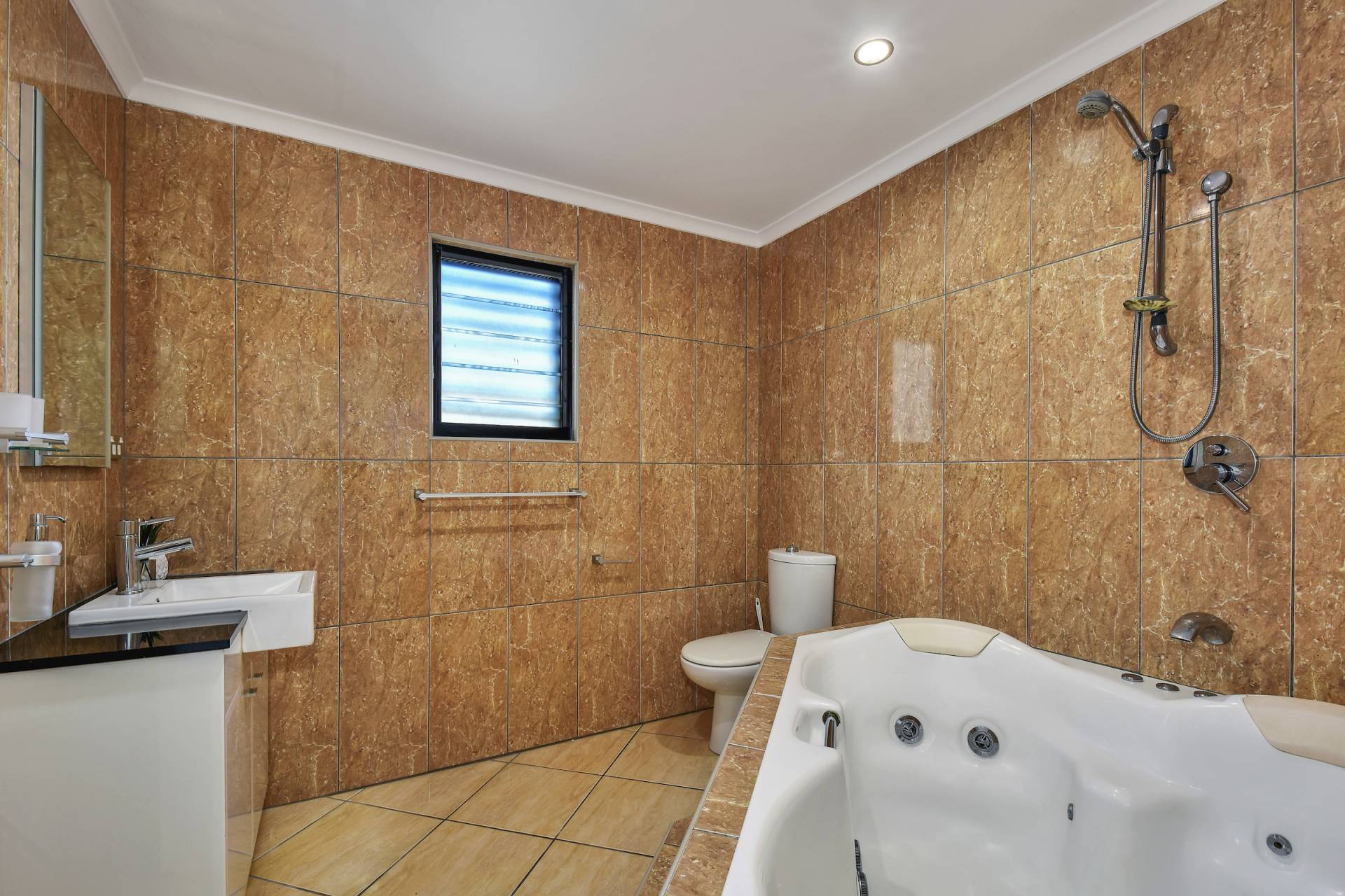 • Bathroom includes luxurious corner spa bath