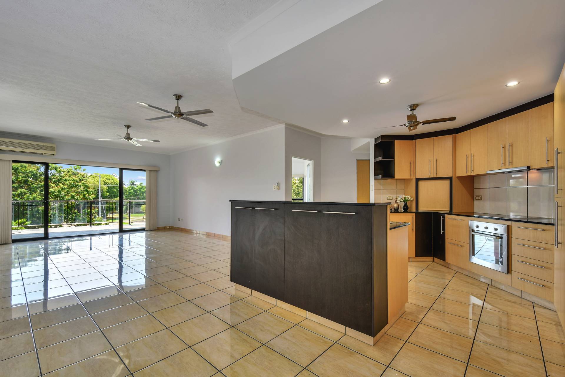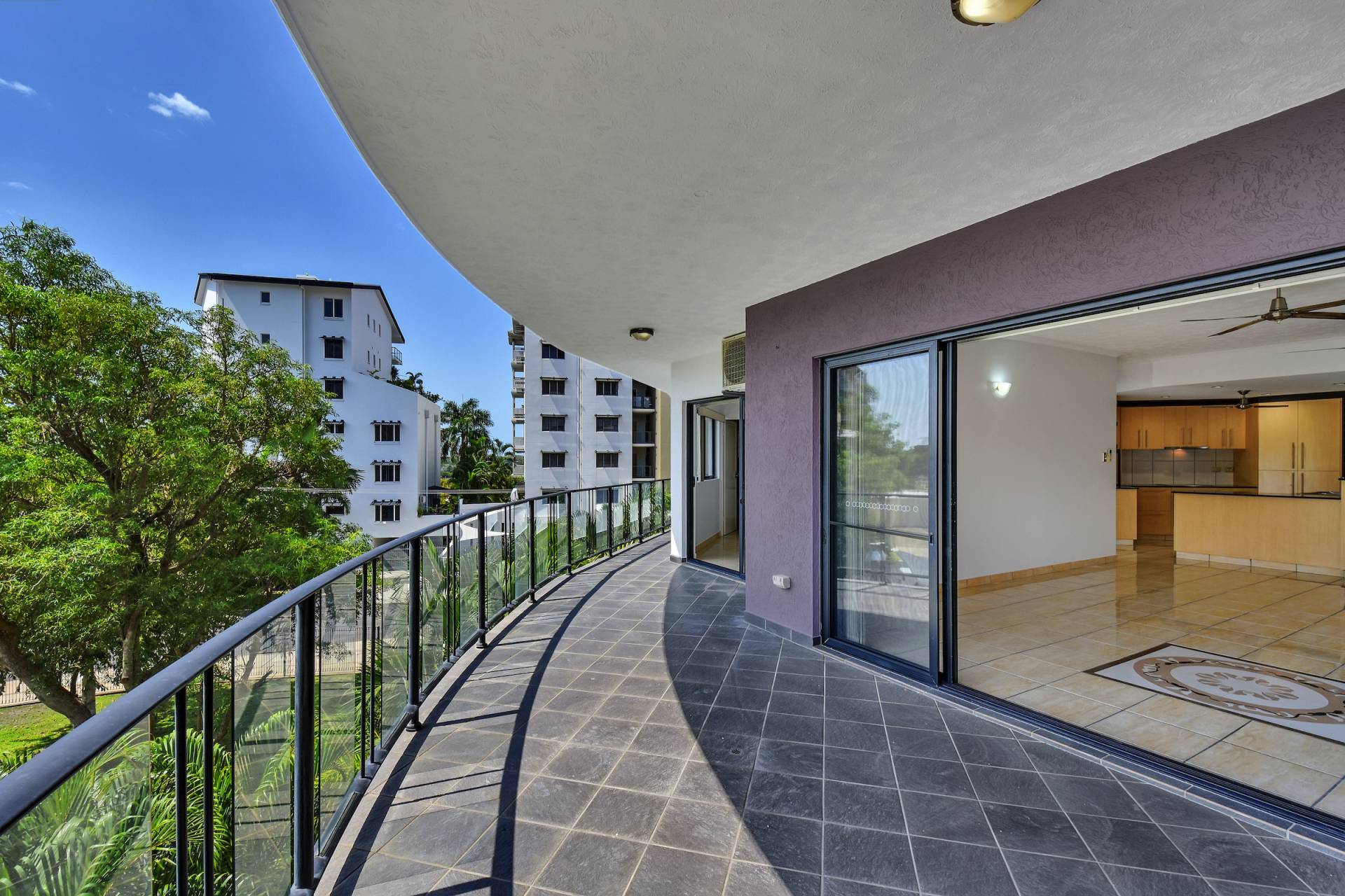 An enormous balcony wraps around the home to offer extensive outdoor living spaces and from this vantage point you can see over the parklands below all the way to Cullen Bay and revel in the cool sea breezes.