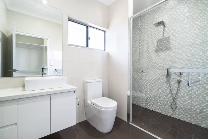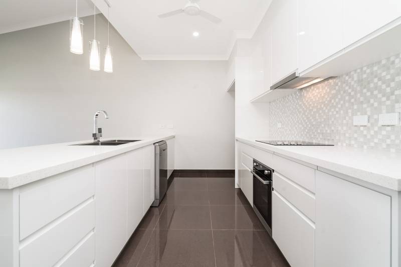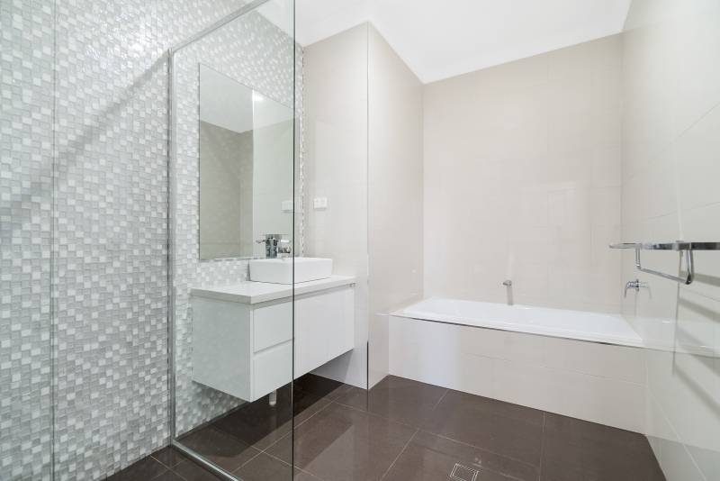 The home has a spacious kitchen with plenty of storage space and a huge stone bench top, modern bathrooms with a stylish colour palette, a separate toilet, a bath tub in the main bathroom and 3 well-lit bedrooms with built in robes.