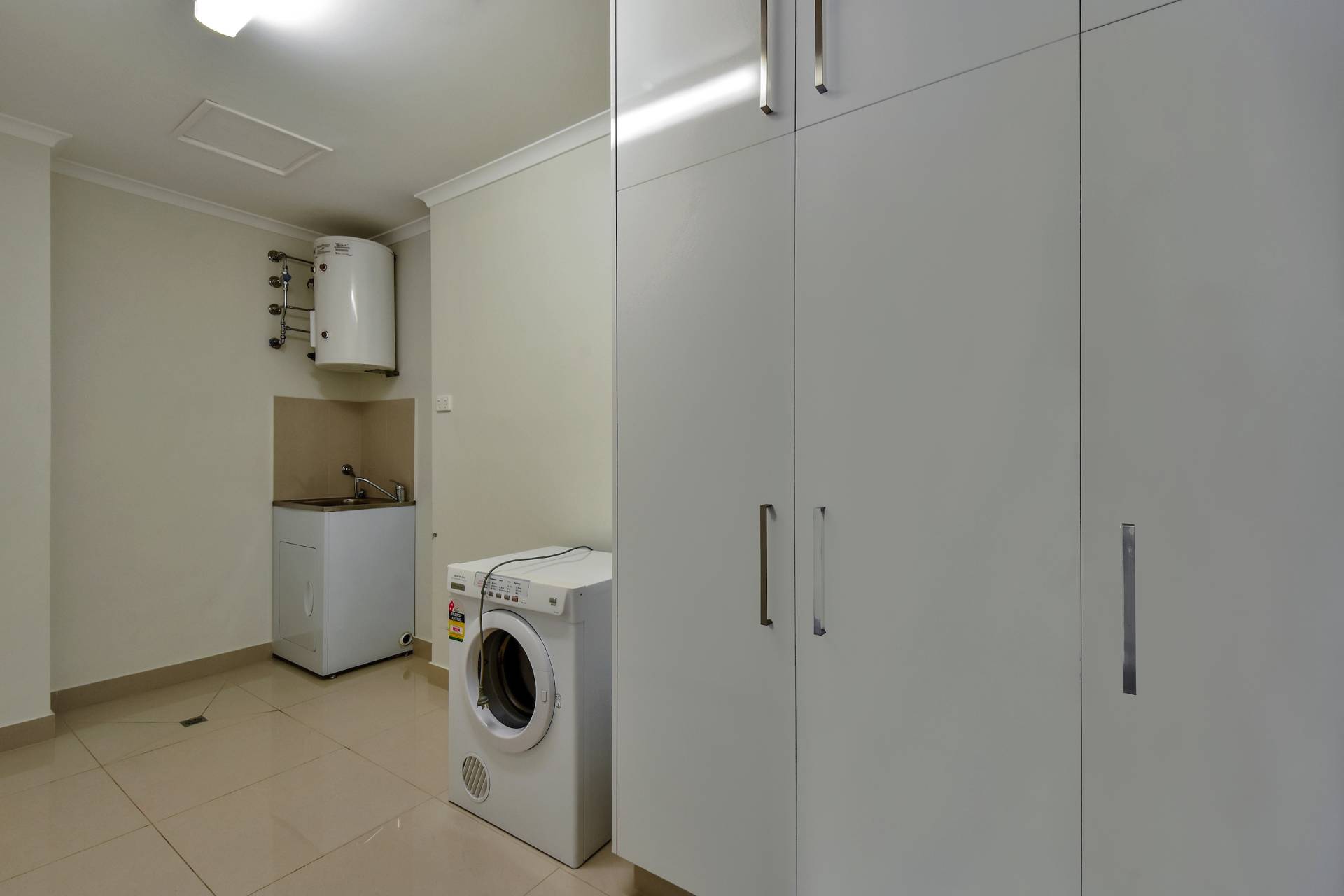 A stylish central kitchen equipped with modern appliances and a large separate laundry with plenty of cupboard storage complete this apartment with no shortage of space.