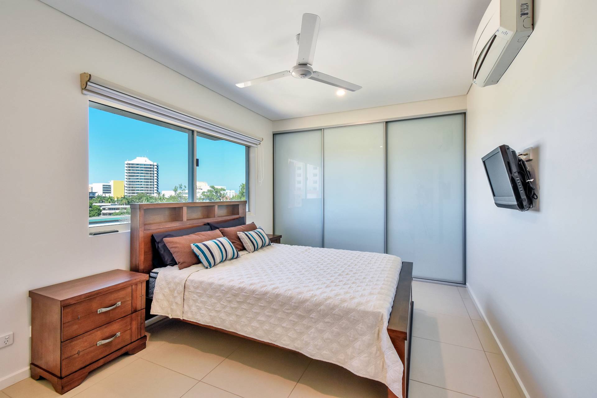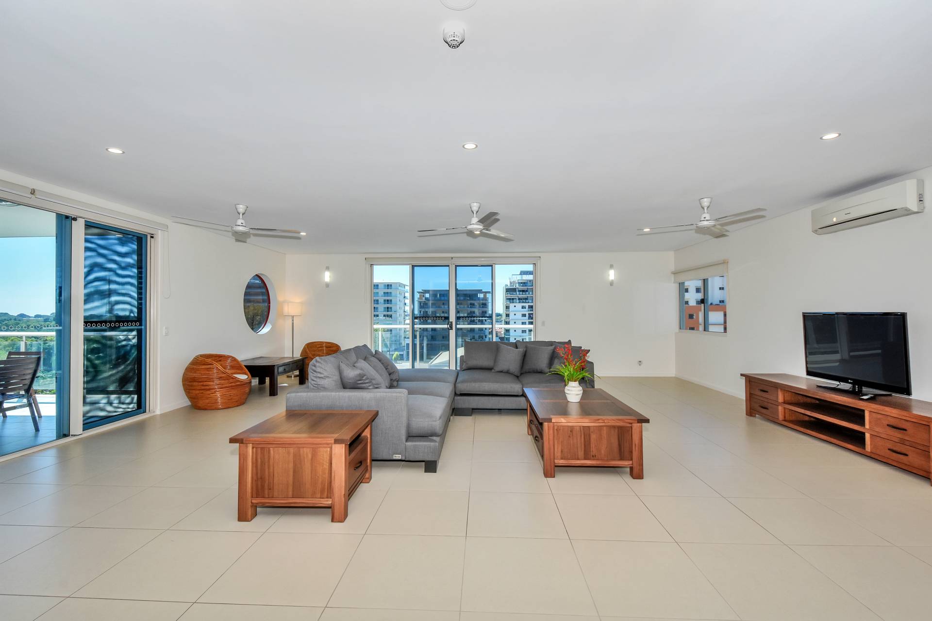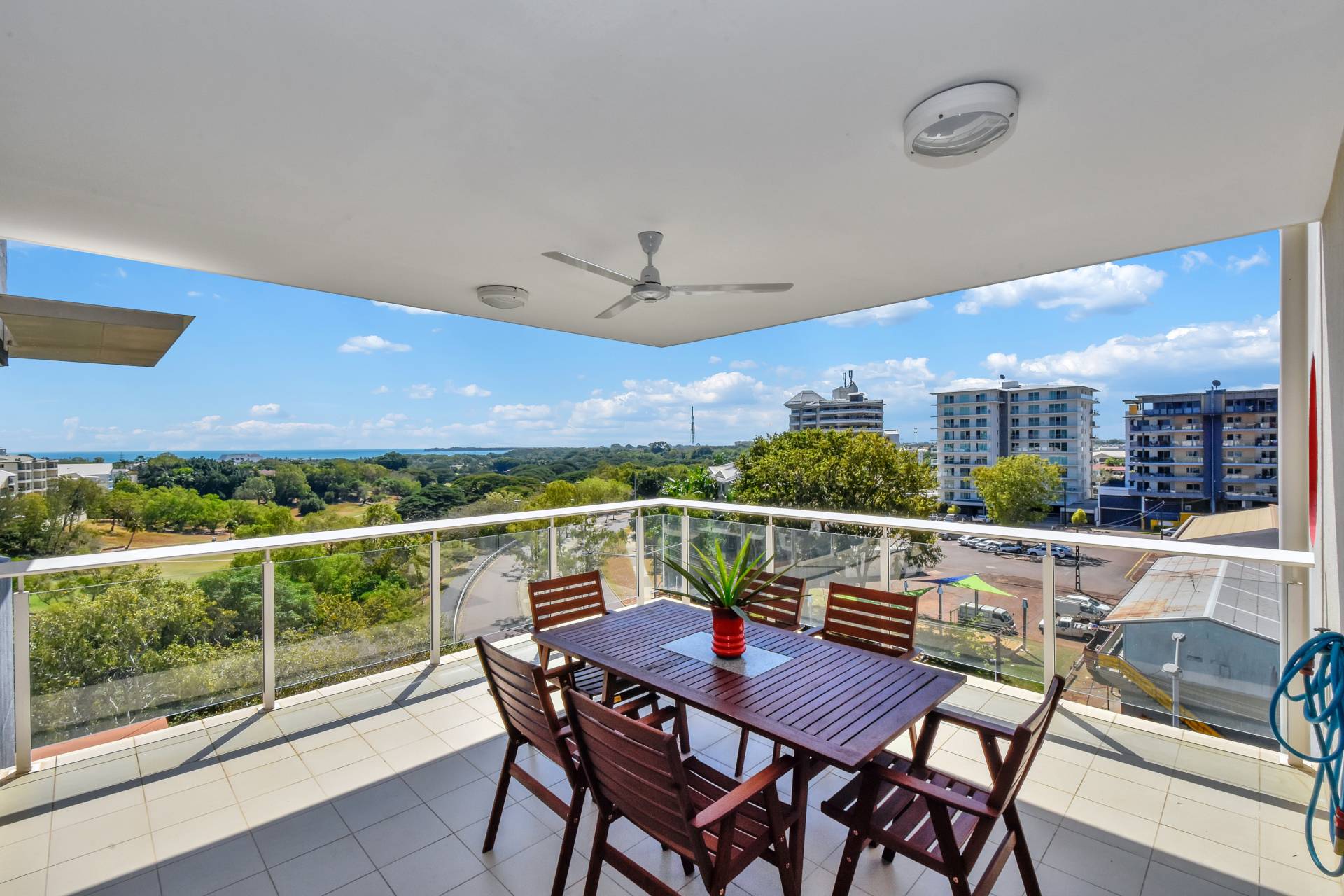 This part-furnished apartment is the size of a house built to perfection on the 7th floor that captures a 180-degree view of the best sights Darwin has to offer. With more windows than walls every door you open or corner you turn to has a unique jaw dropping view of either Golf course, Casino, Botanical Gardens, Mindil beach, East point, or the city lights.