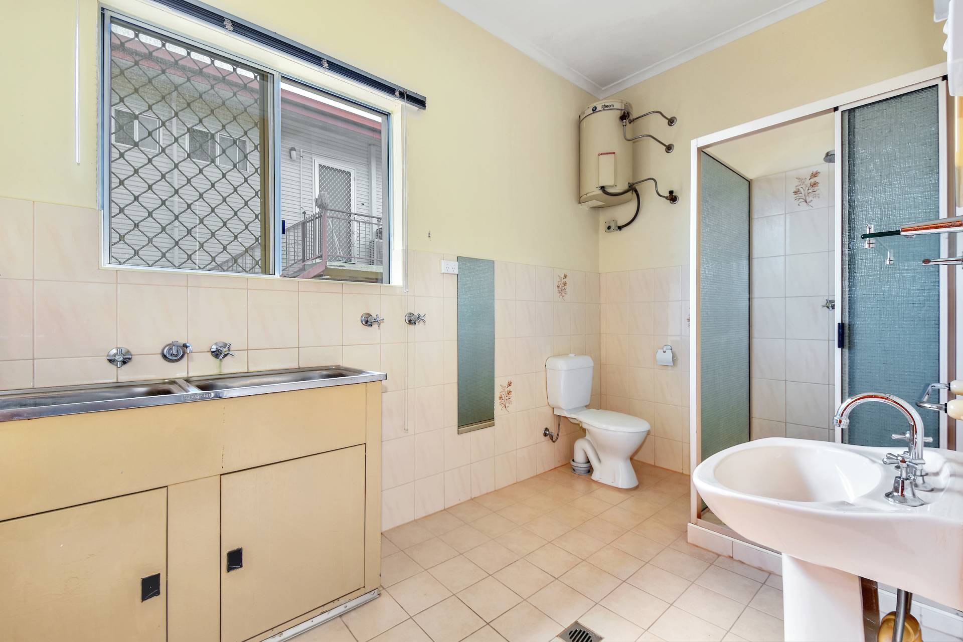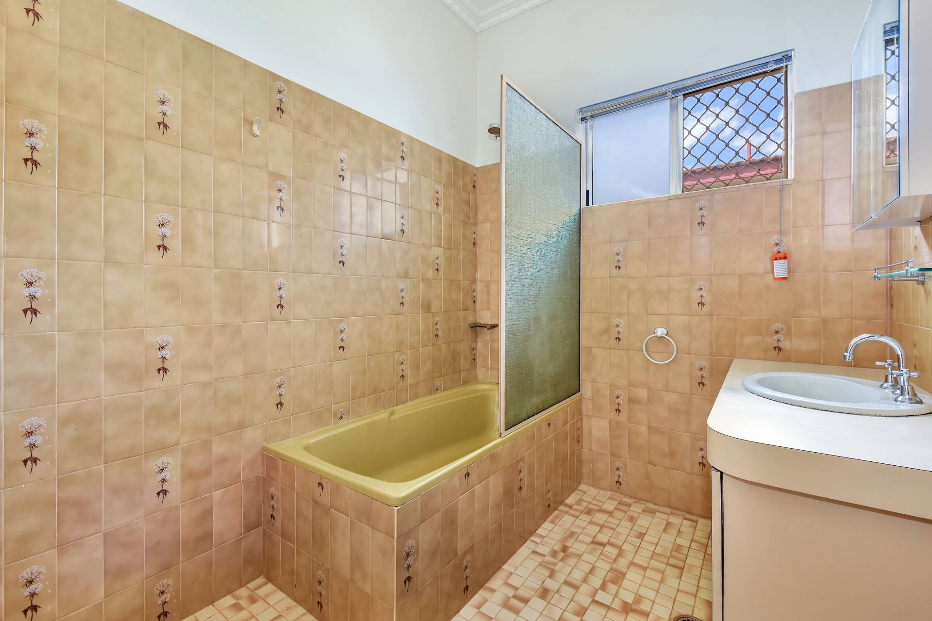 Each of the bedrooms has been modernised with tiled flooring and includes a floor to ceiling built in robe along with large sliding windows and A/C, there is a home office / optional 4th bedroom as well. The bathroom has the original tub in avocado green with a vanity that has built in storage.