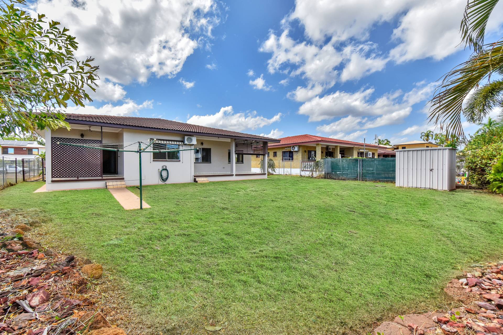 This established property combines old school charm with proportions you wont find in a new home along with a sizeable yard space and vintage flair that speaks to Territorians. At the front of the home is secure fencing along with electronic gated entry, carport parking for 1 with space for a second in the drive. There is also a PA gate for guest access. Along the front of the home a porch looks out over the lawns making it the ideal space to wave off the kids as they ride their bikes off to school.