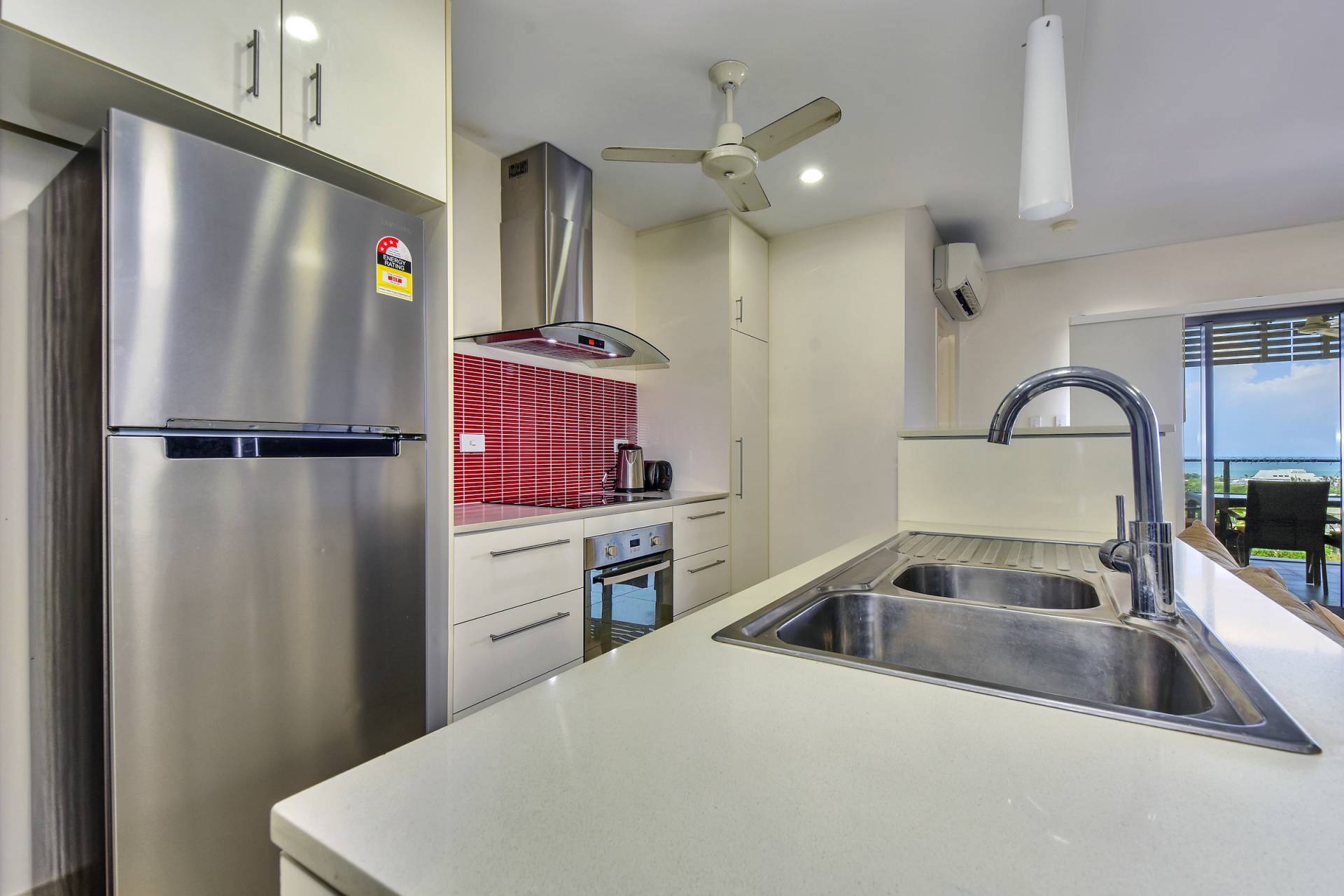 Open plan living and dining areas open out view double opening doors through to the balcony where you can entertain, cook on the BBQ, or just take in the stunning sunsets as they dip low over the watery horizons. As the night comes alive, watch as the lights twinkle from the buildings. The breezes here are amazingly cool and fresh making this a great space to enjoy life.