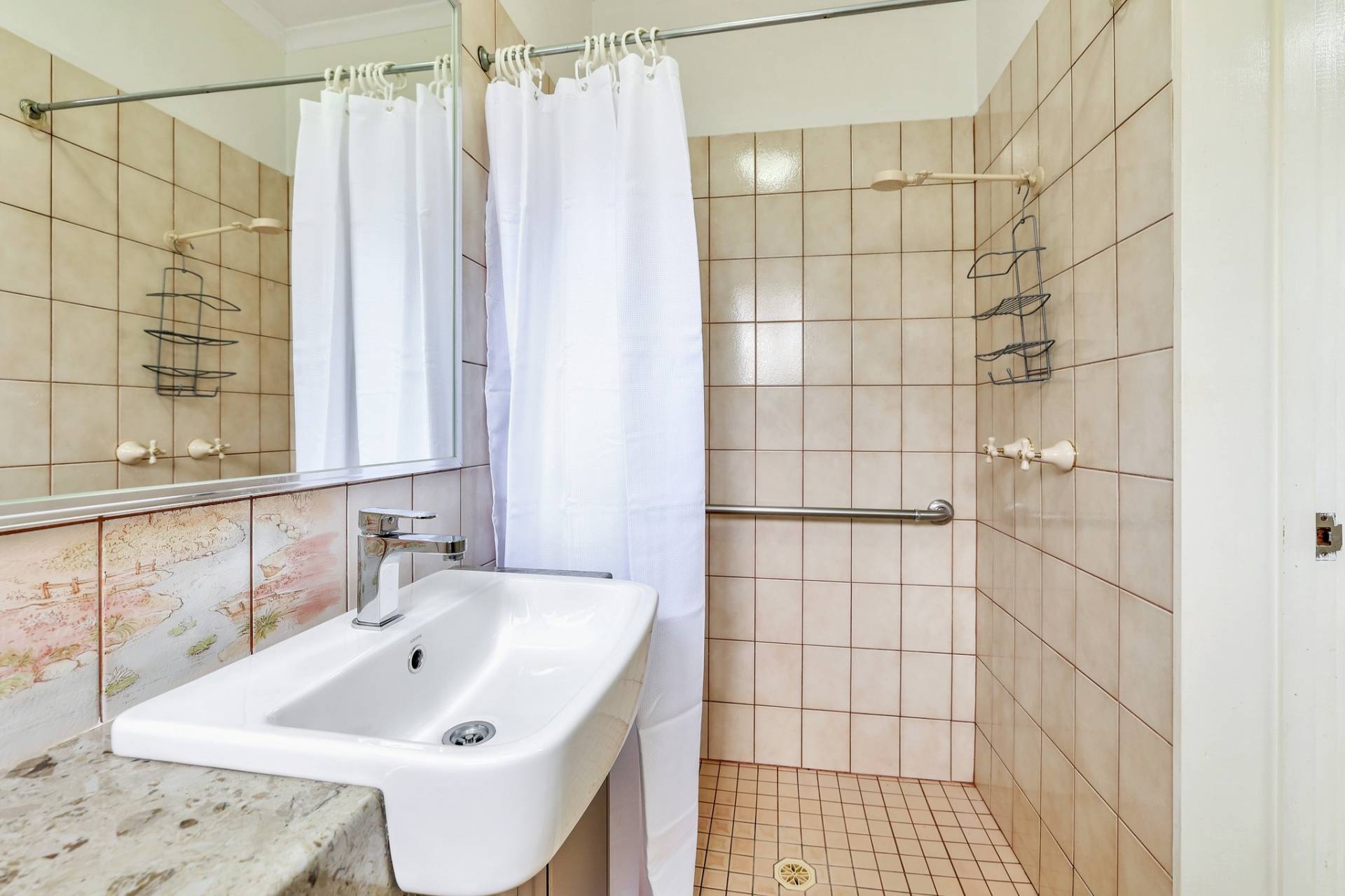 The main bathroom is a stunner with a modern design and feature tiles along with built in storage space. The laundry is hosted on the back verandah.