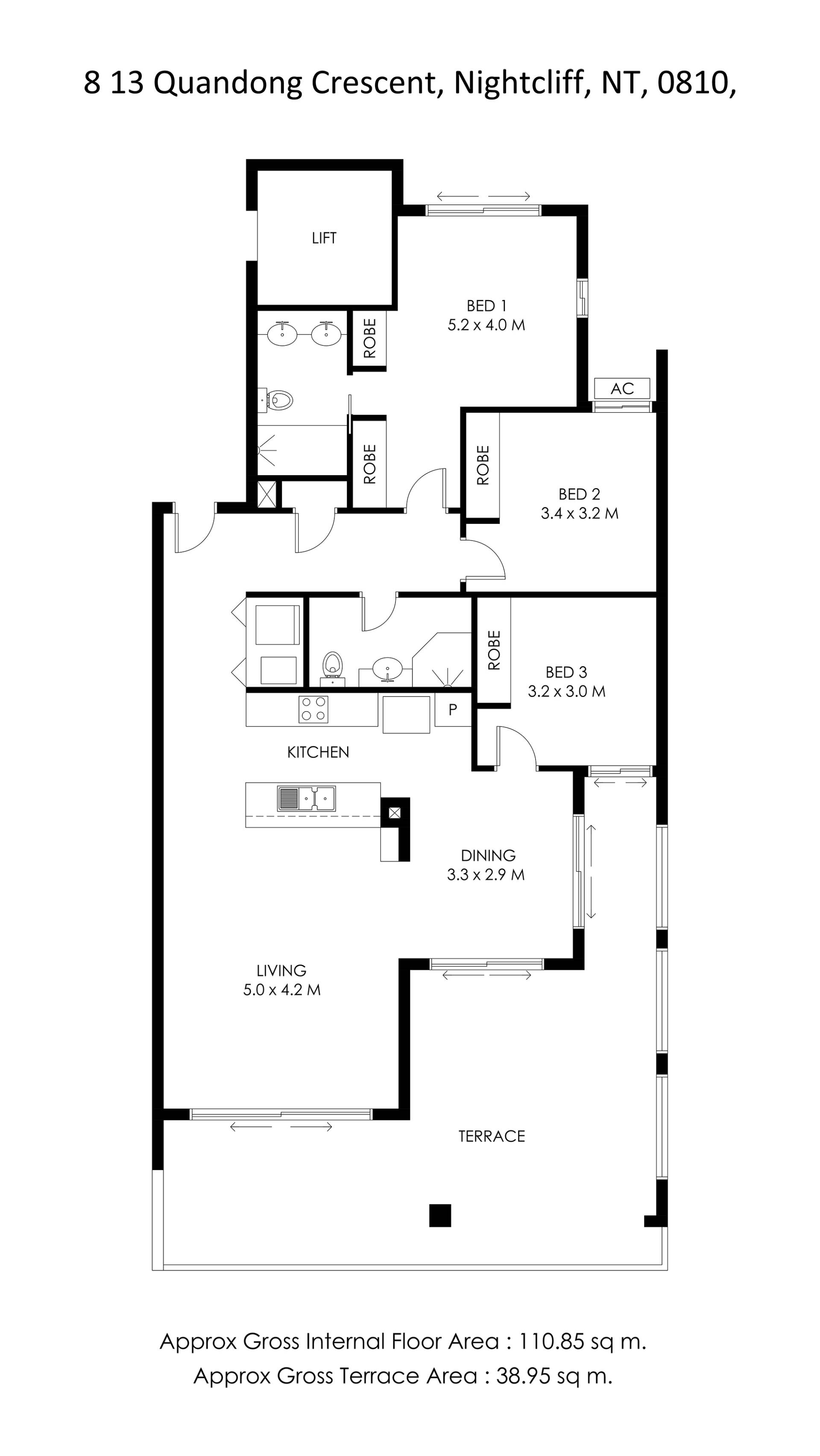 There are three bedrooms, the master has a generous footprint and includes twin robes along with an ensuite bathroom that hosts twin vanity and a shower. Bedrooms 2 and 3 both have a built in robe and bedroom 3 also opens onto the terrace. The main bathroom is large and hosts a shower and central vanity and there is an internal laundry room as well.