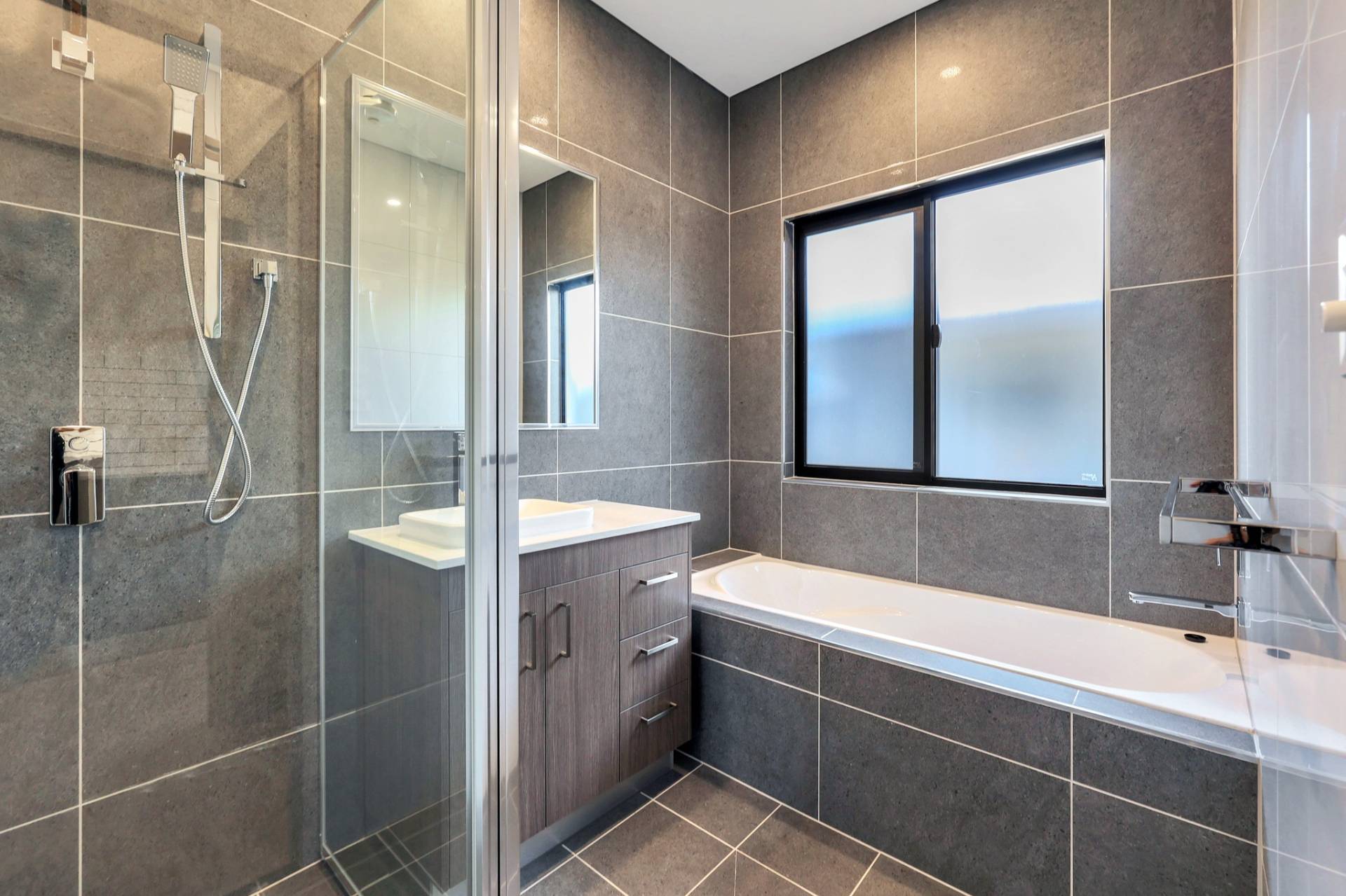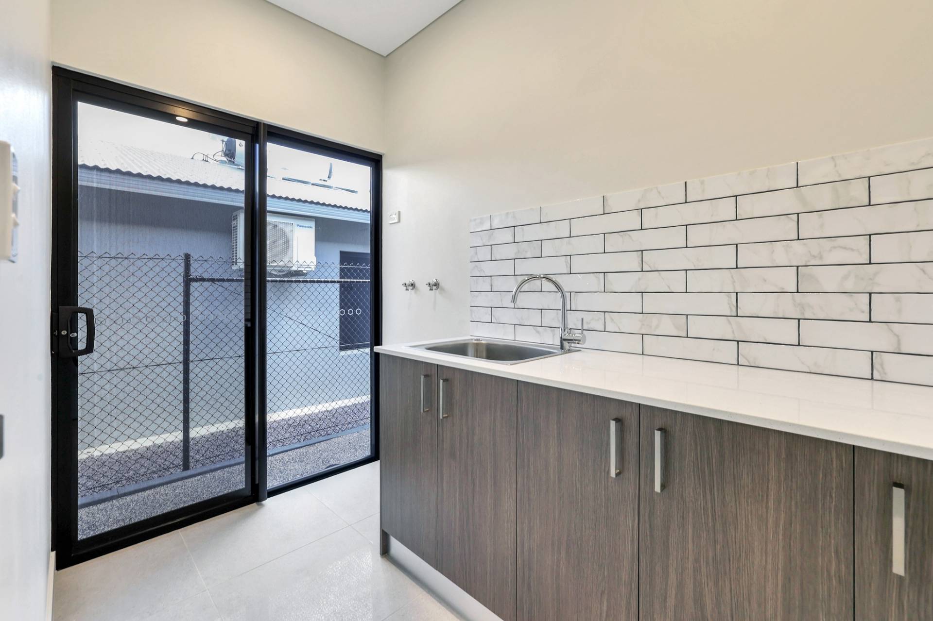 There are two additional bedrooms each with tiled flooring and split A/C along with the bathroom which hosts a bath tub and shower, central vanity and sep toilet. The laundry room is opposite the main bathroom for absolute convenience and has subway tiles and storage built in.