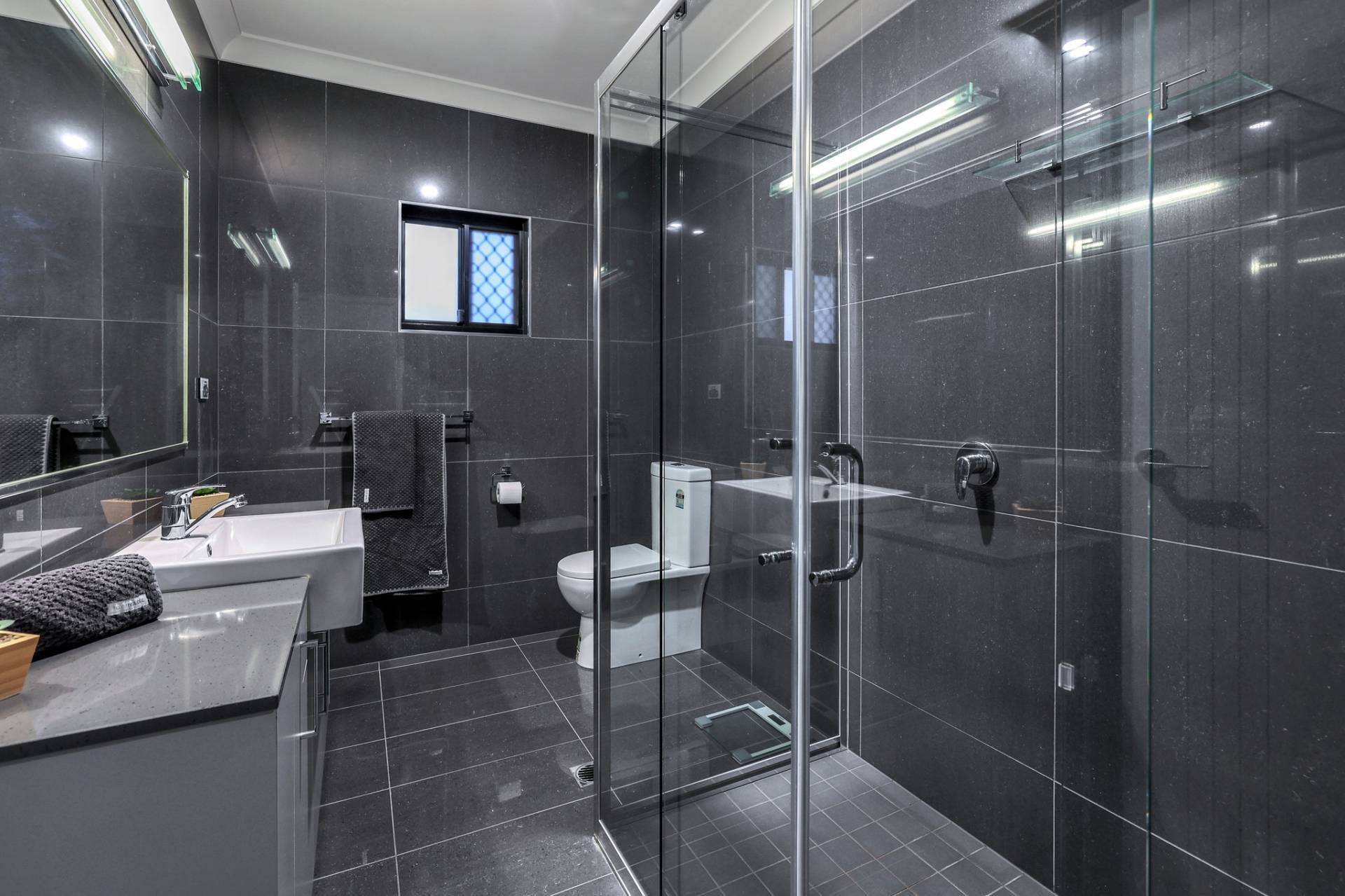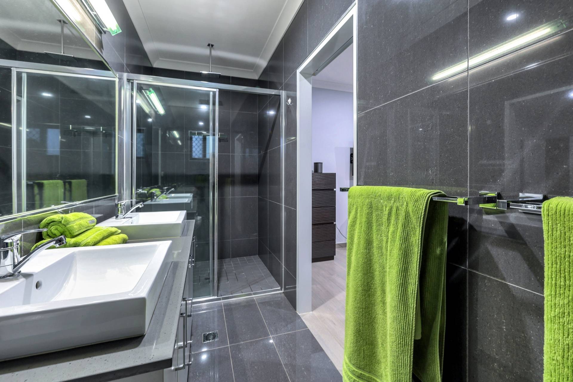The master bedroom suite includes a walk in robe and an ensuite bathroom with a lux vibe and large shower.  Additionally the home boasts a movie / theatre room / 4th bedroom option if you like. Within the double garage is the laundry amenities and a pull down ladder to the storage above.