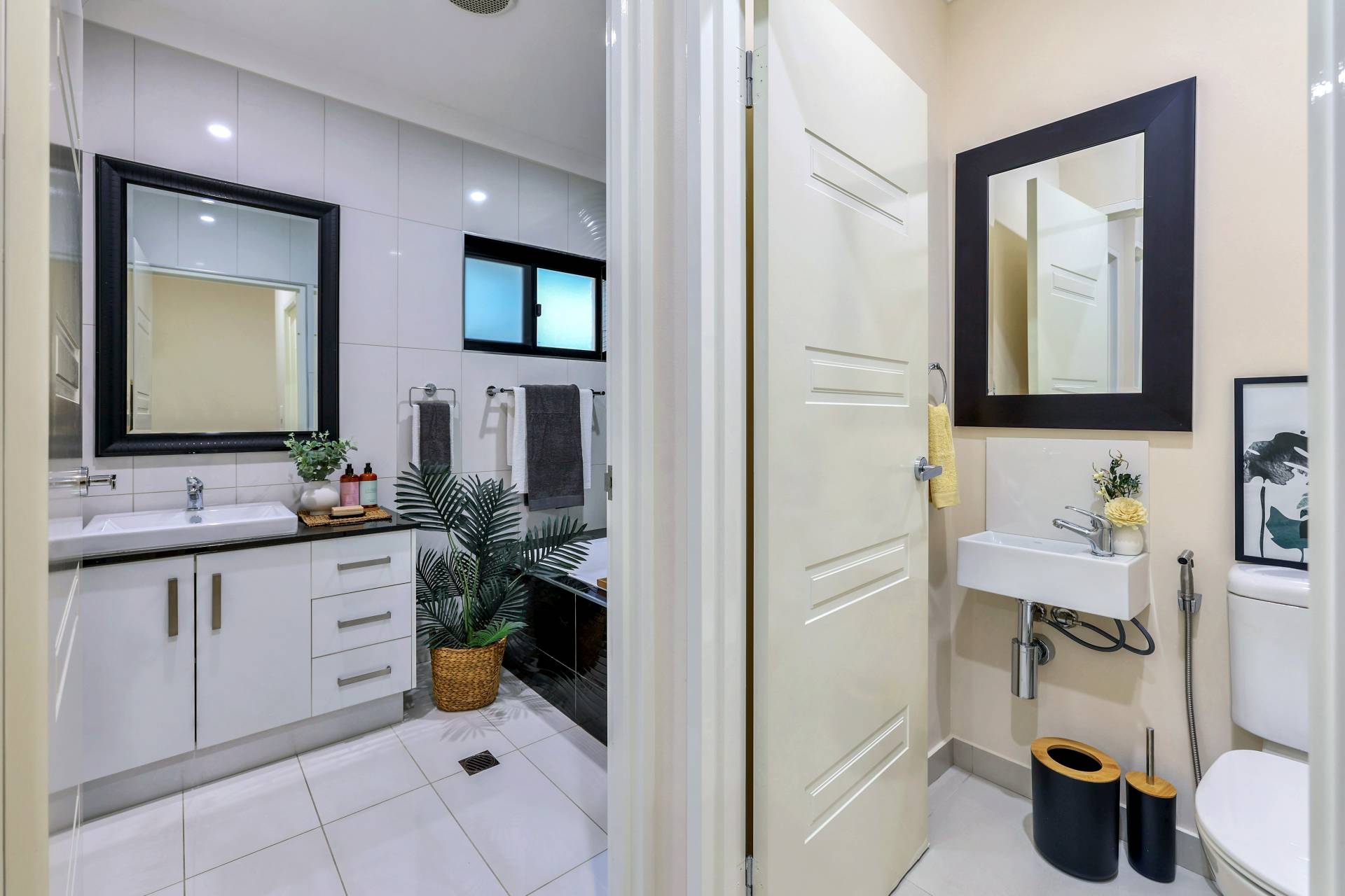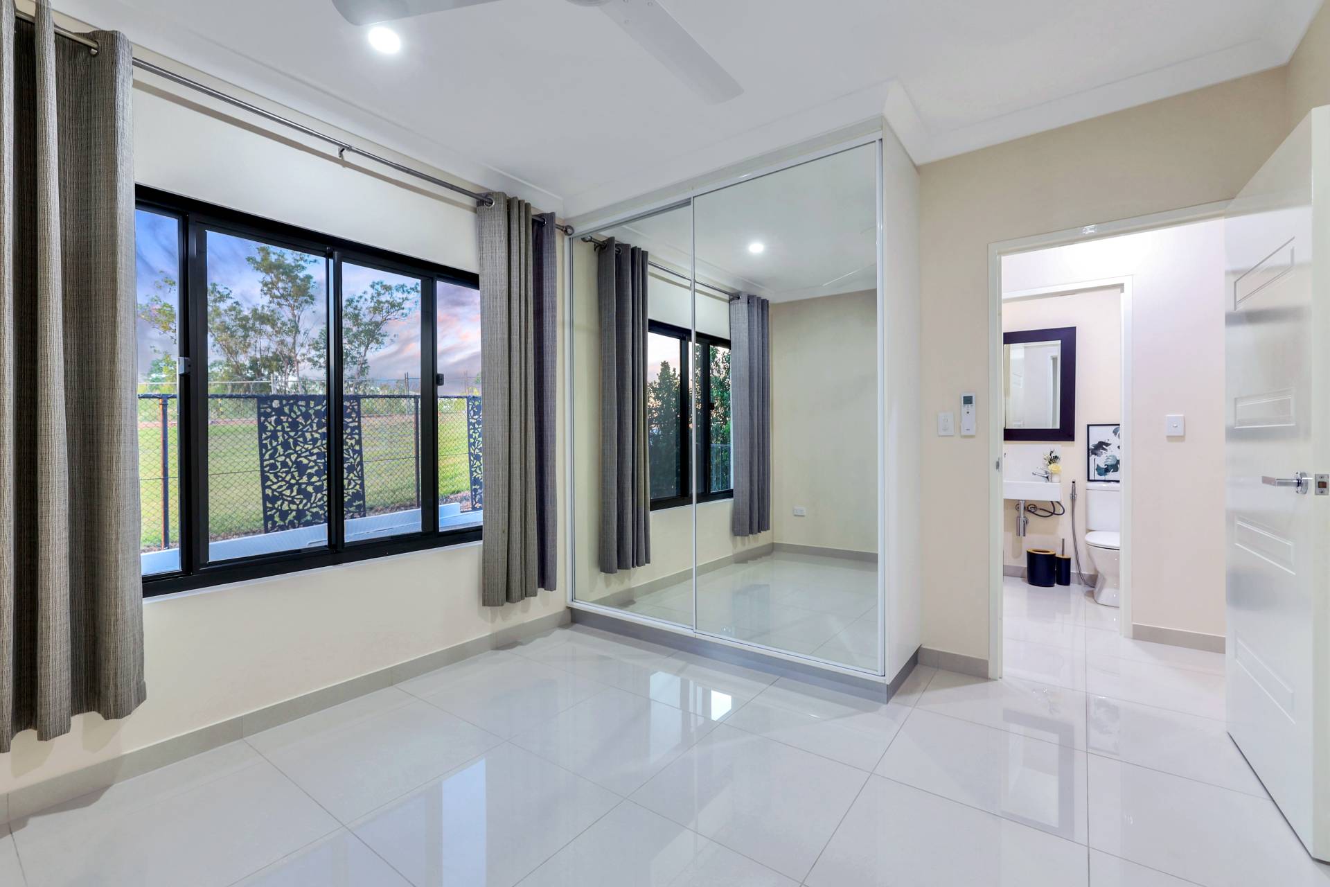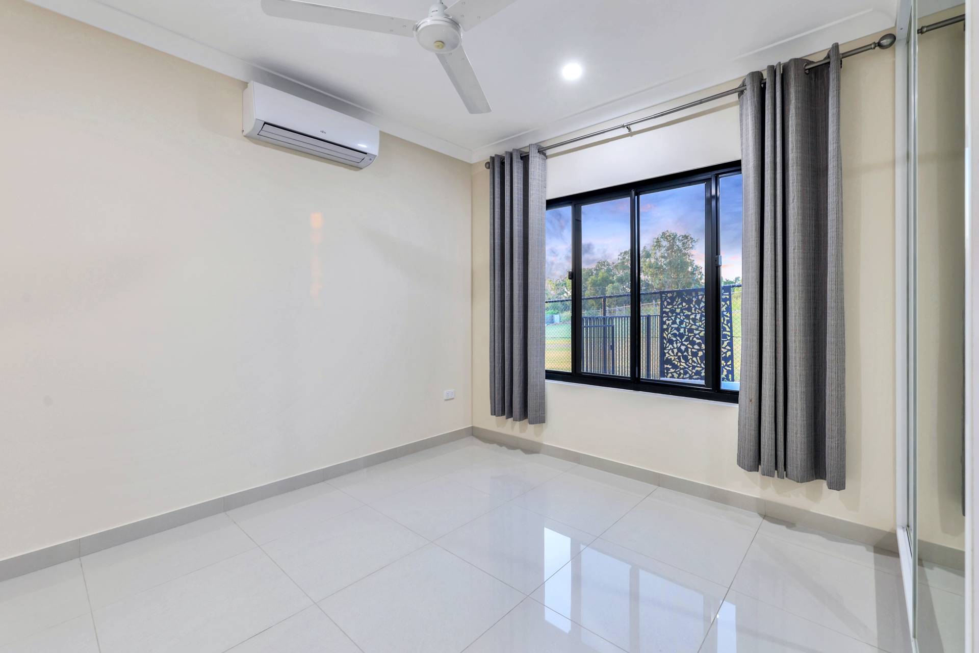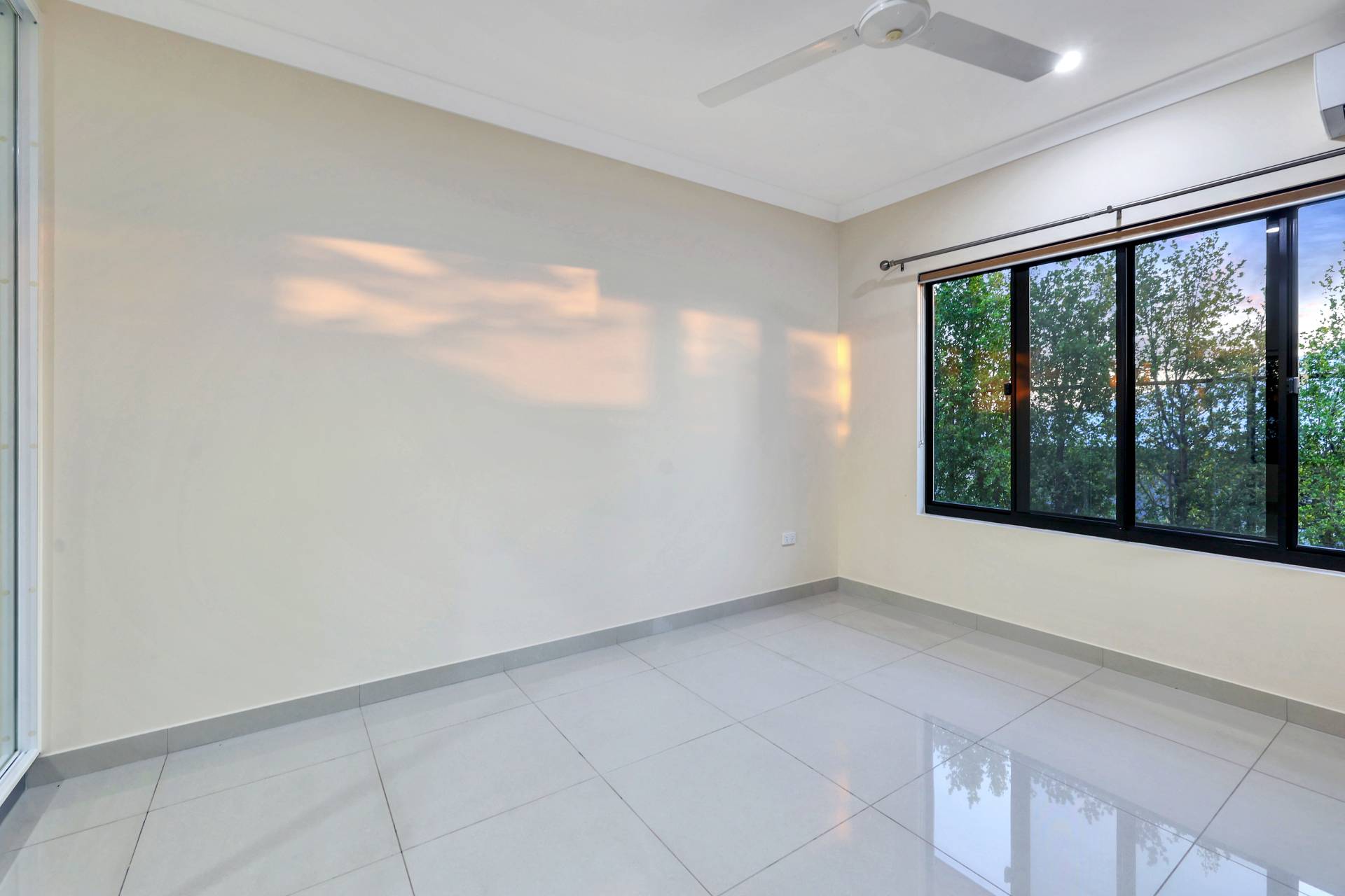 The master bedroom is elegantly appointed with an ensuite bathroom and built in robes while all 4 bedrooms include a built in robe, tiled flooring and A/C as standard. The mina bathroom is sleek and gorgeous with a relaxing bath tub / shower combo, vanity with storage and a full sep W/C.